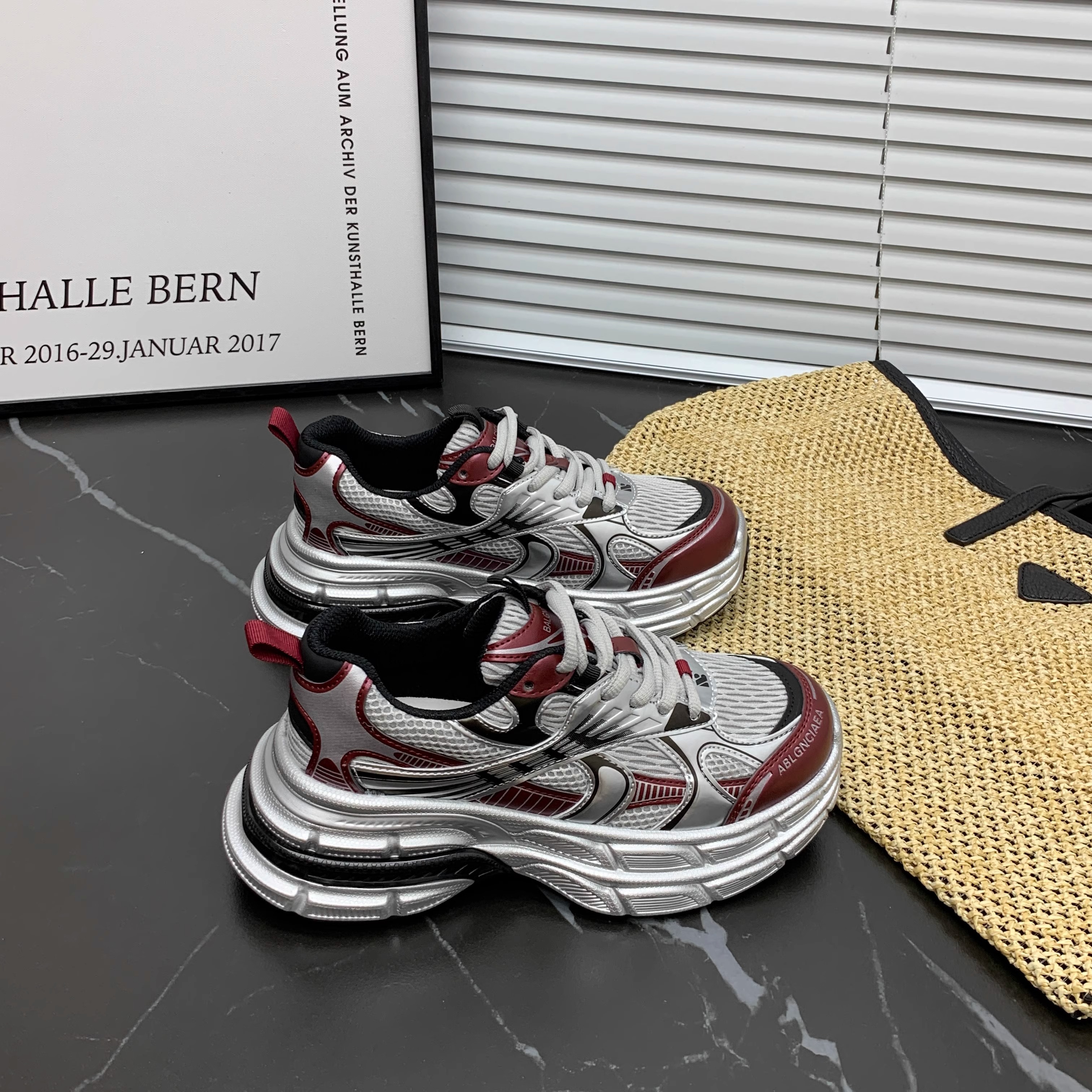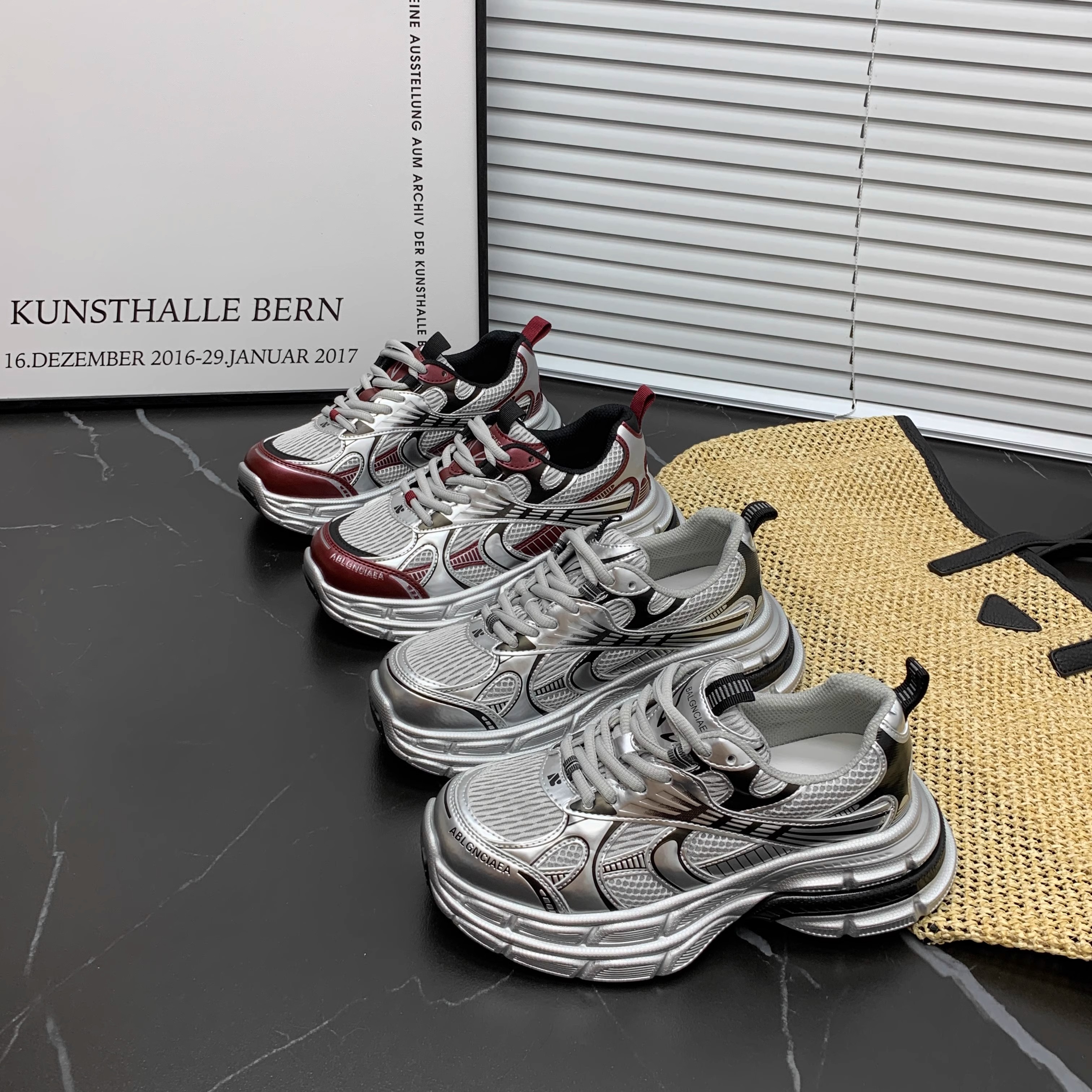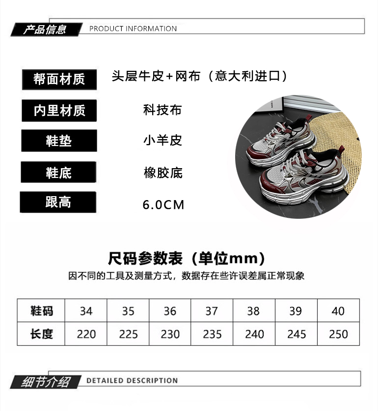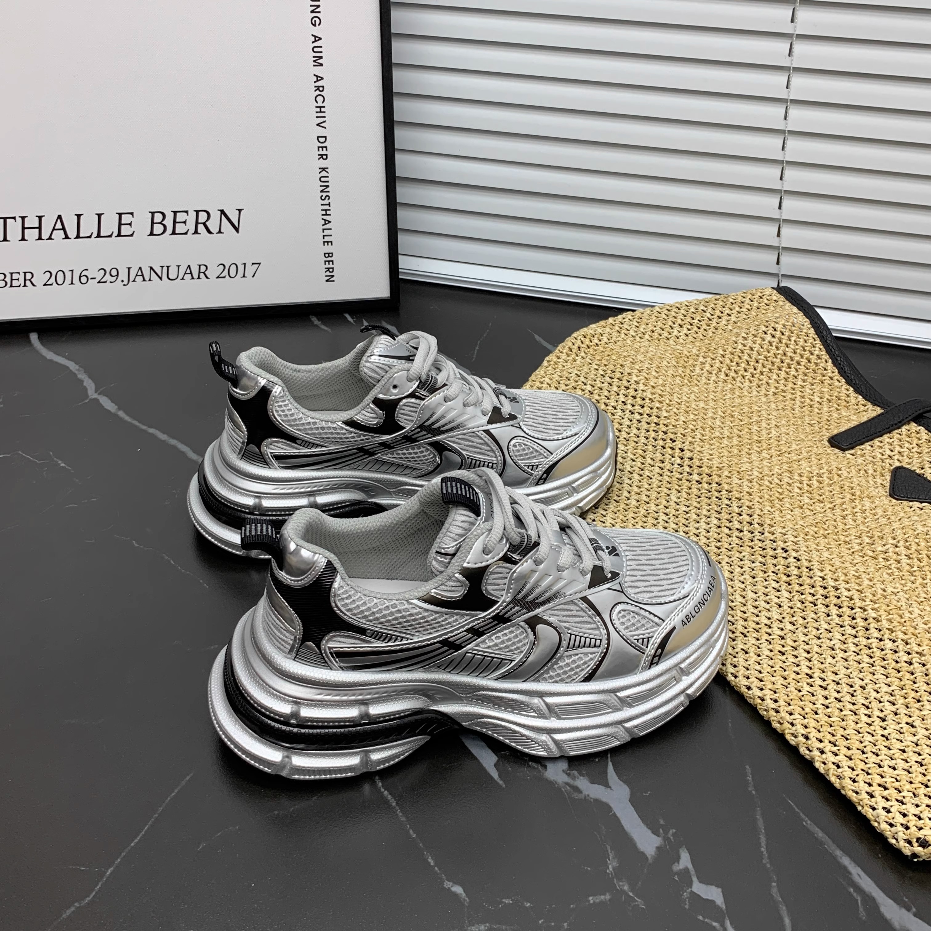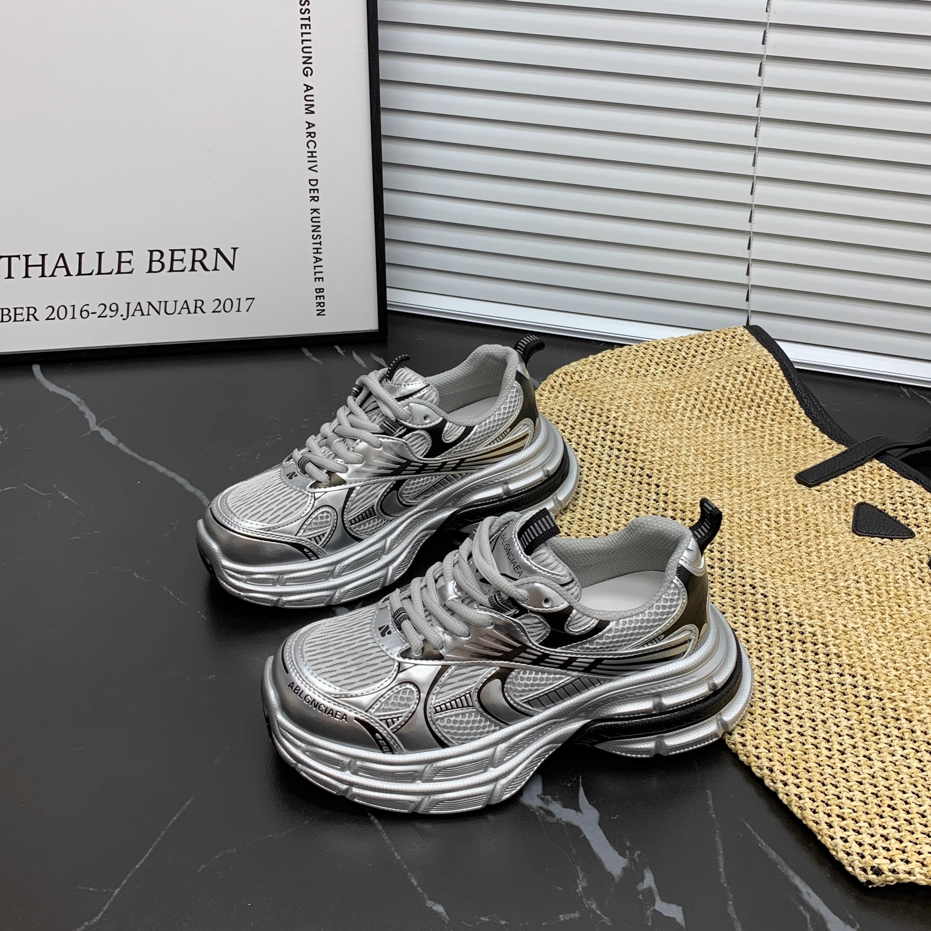 Sanli Small-Sized Round-Toe Thick-Soled Dad Shoes for Women 2025 New Fashion Versatile Genuine Leather Mesh Breathable Sneakers