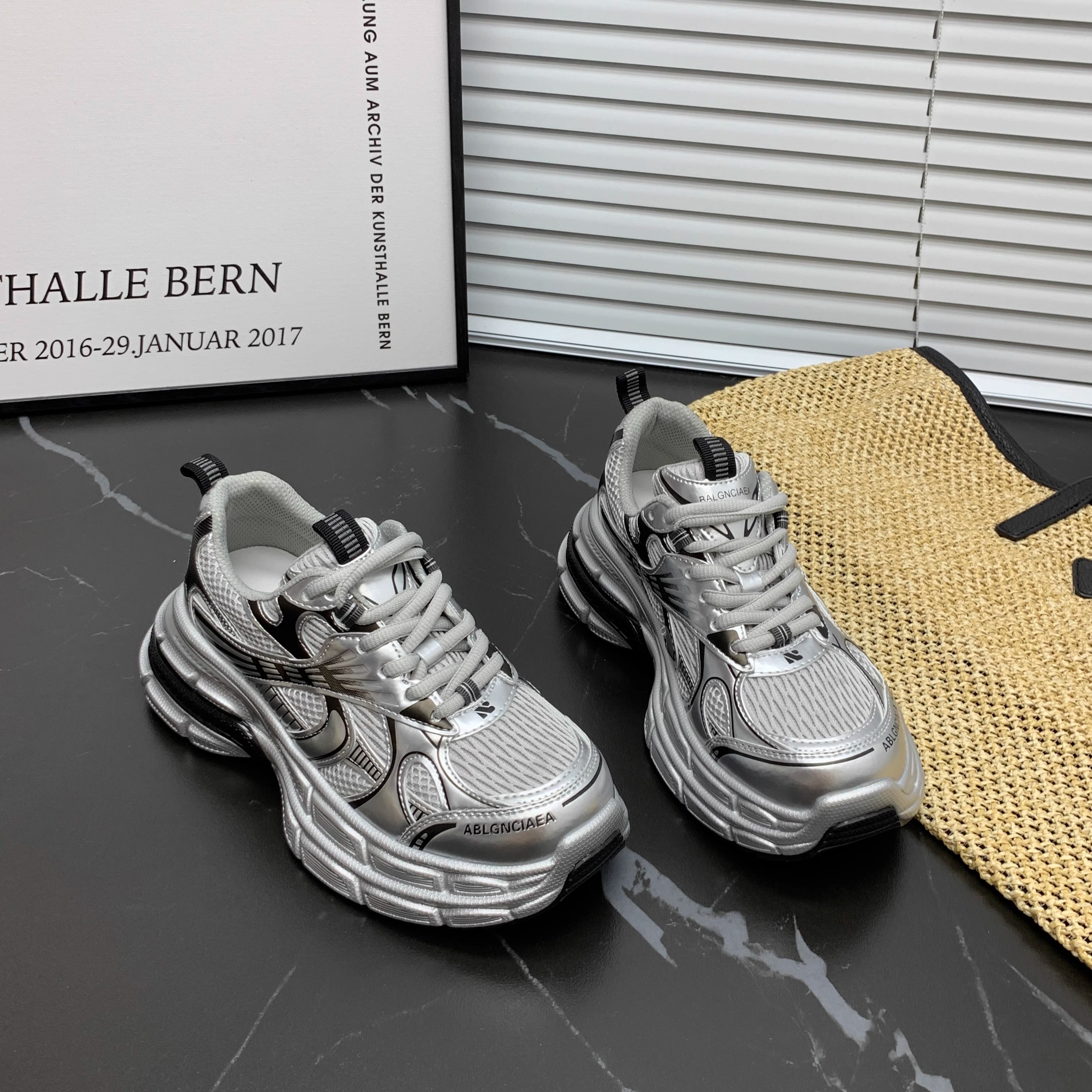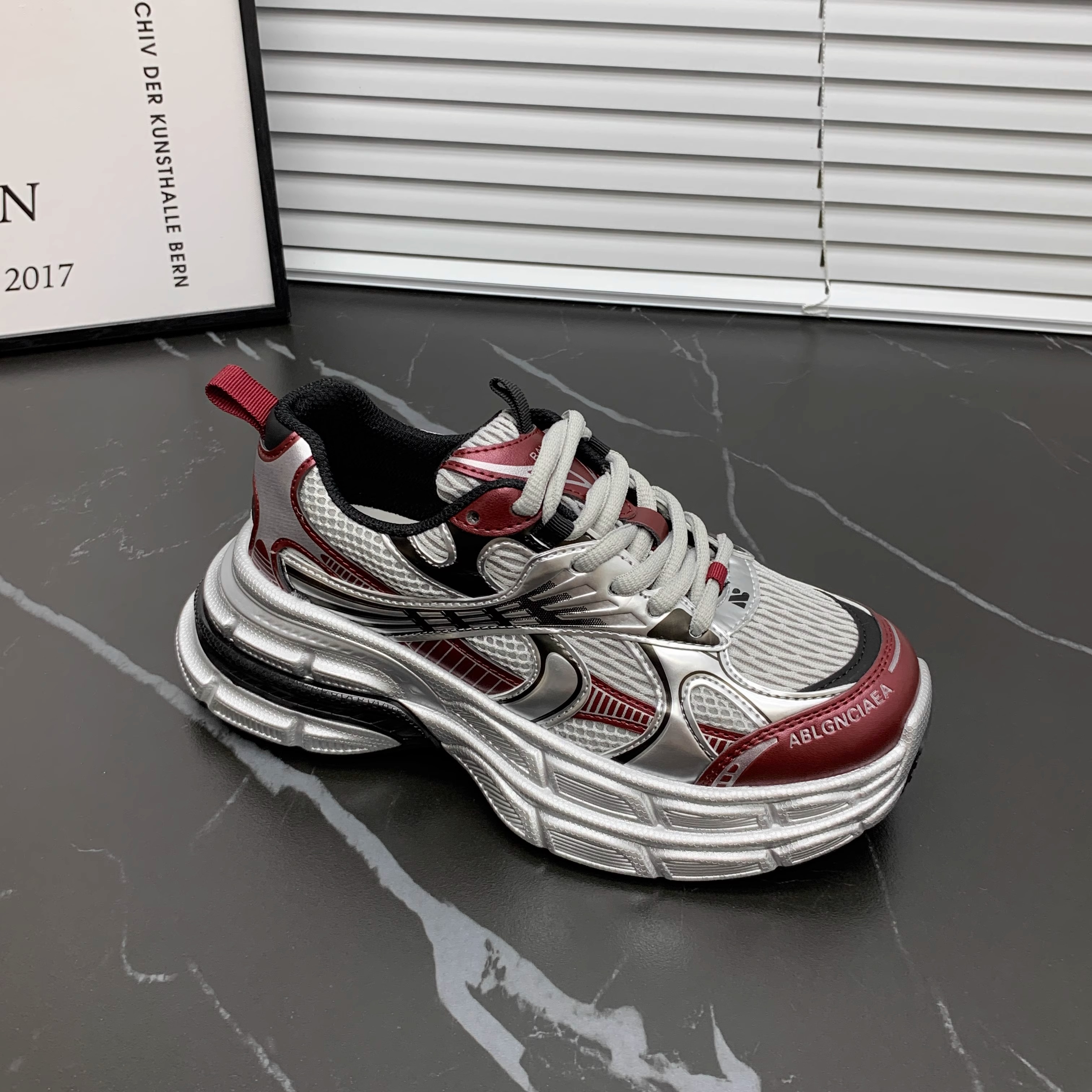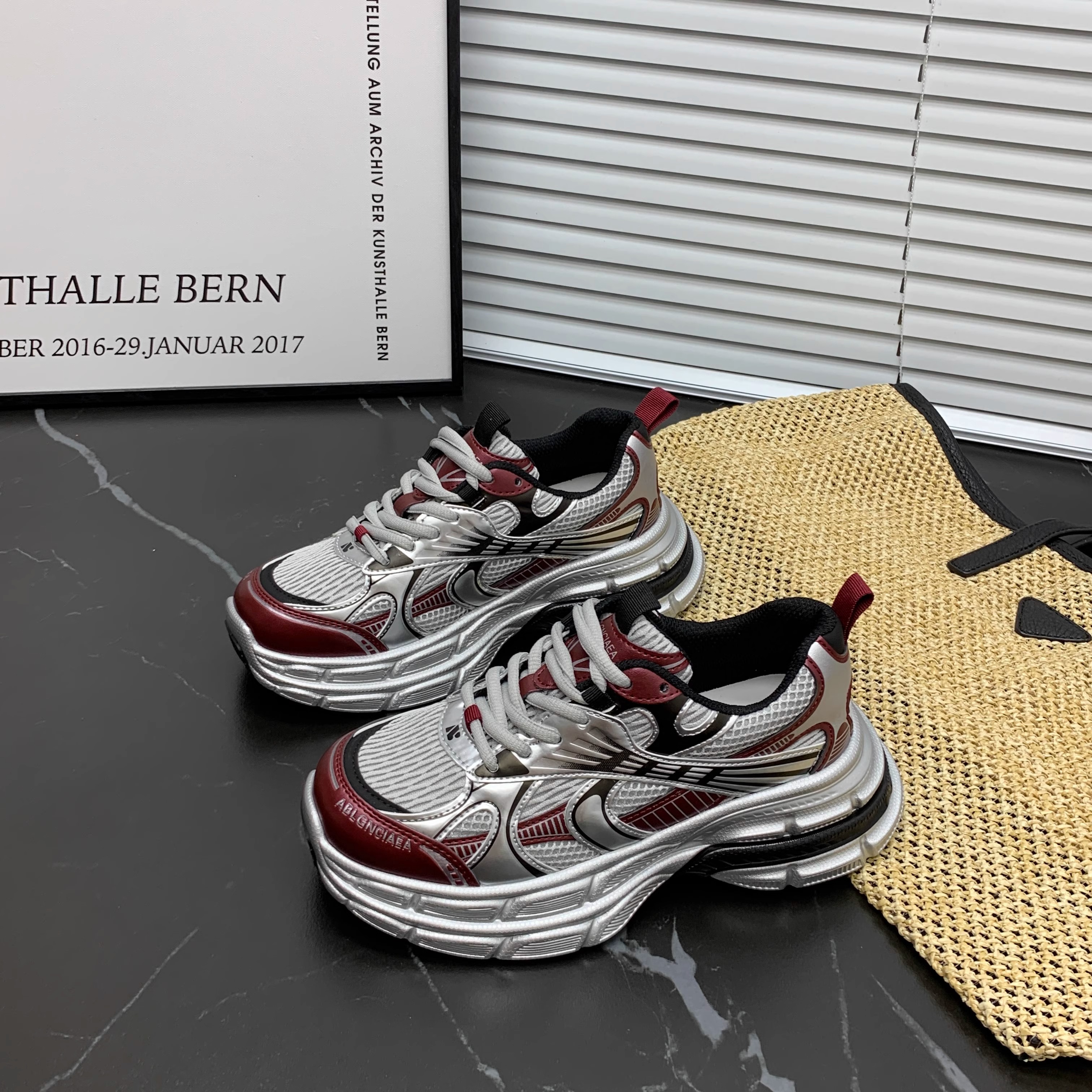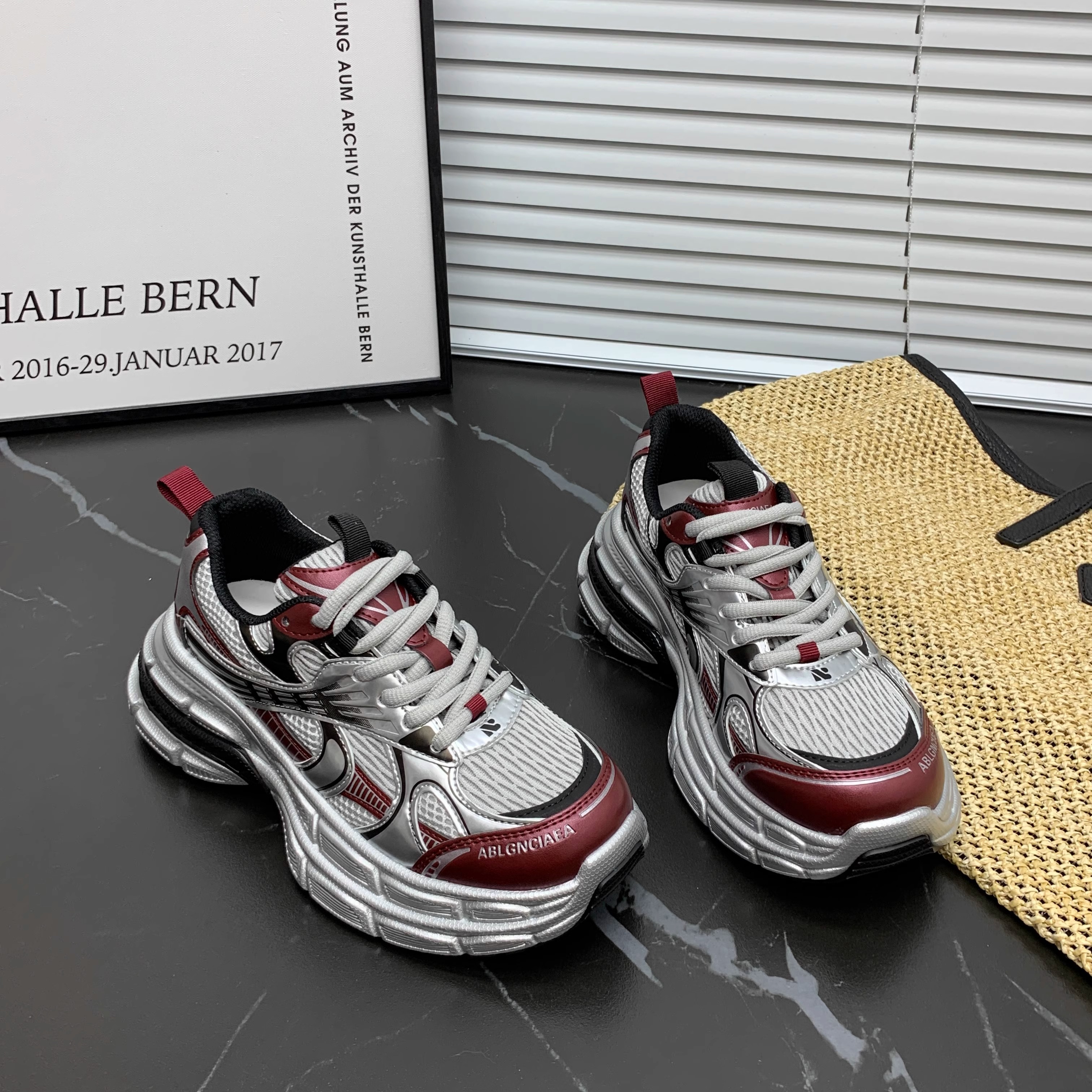Sanli Small-Sized Round-Toe Thick-Soled Dad Shoes for Women 2025 New Fashion Versatile Genuine Leather Mesh Breathable Sneakers