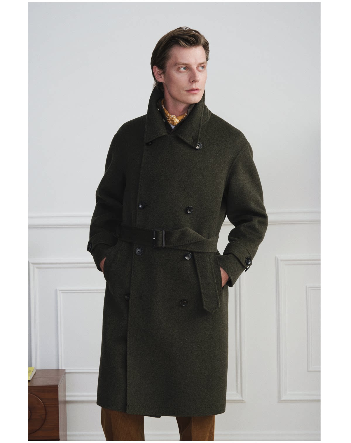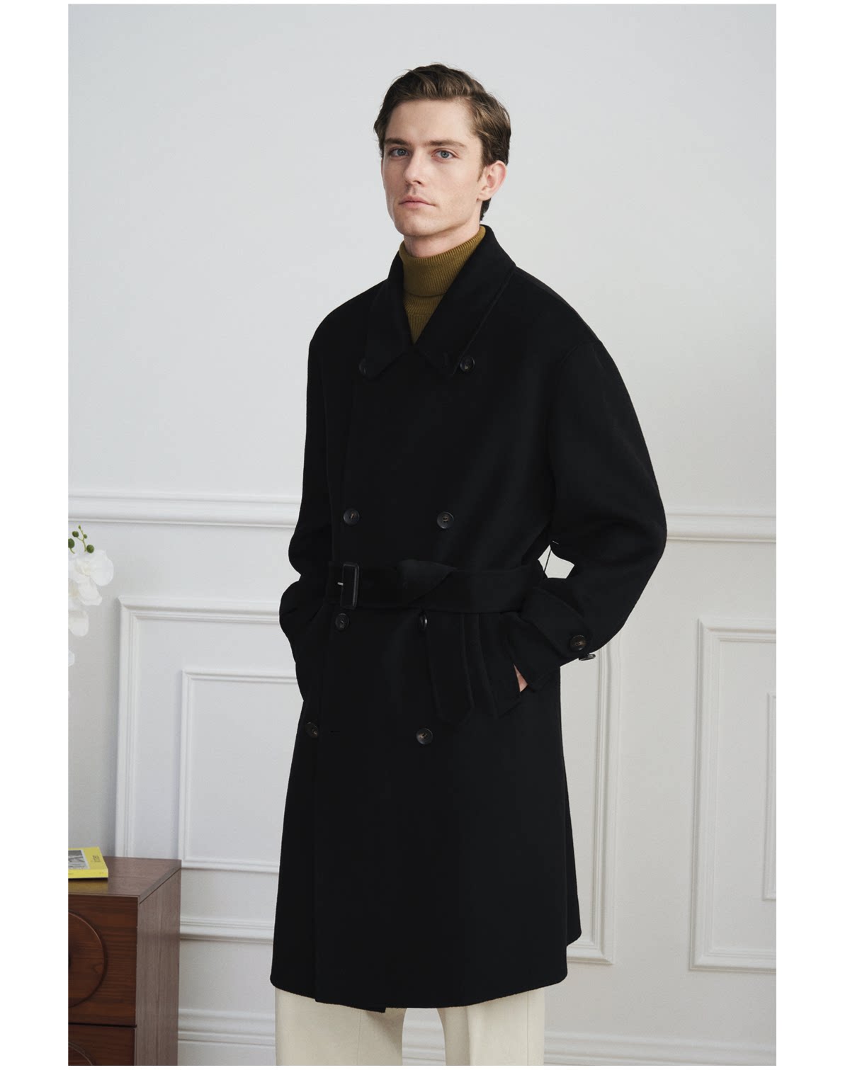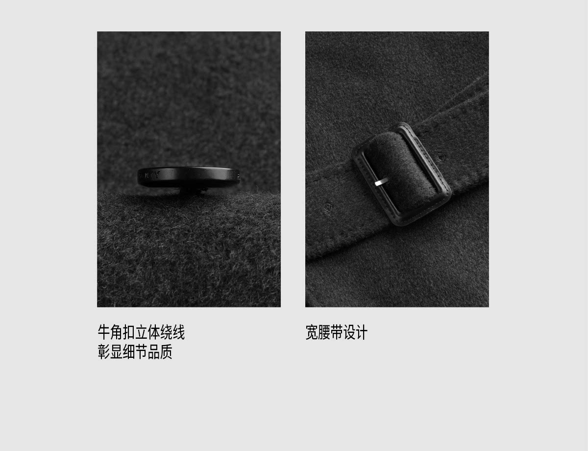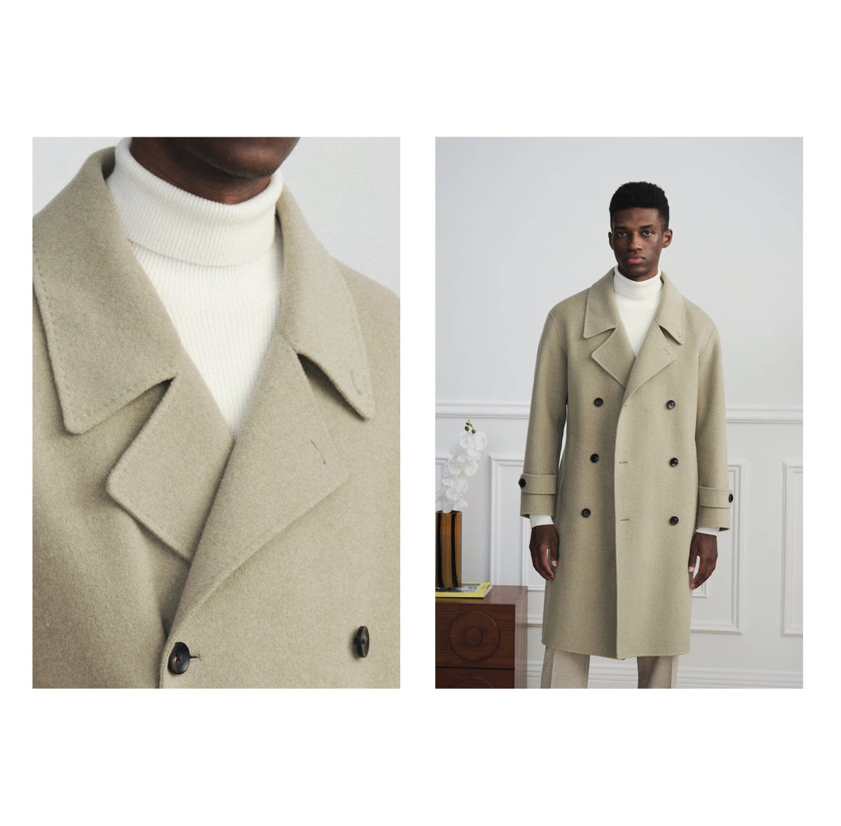 【Trench Coat Double-Sided Wool】Men's Khaki Business Casual Woolen Coat Double-Breasted Wool Jacket for Autumn and Winter