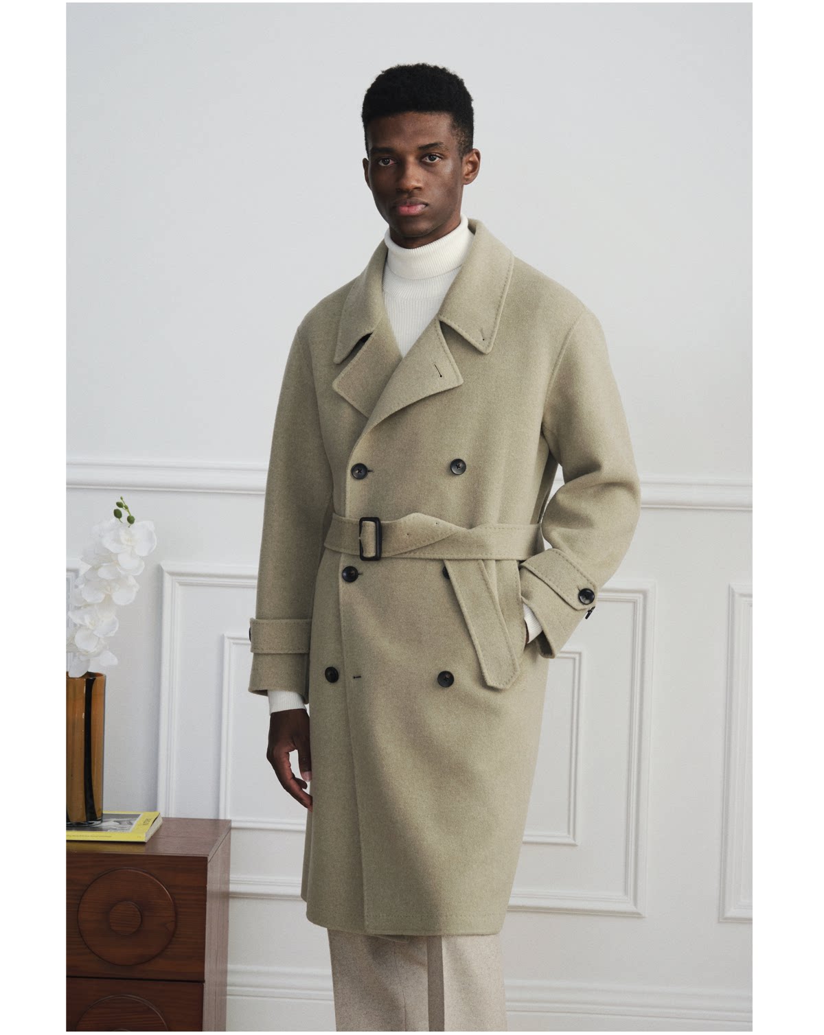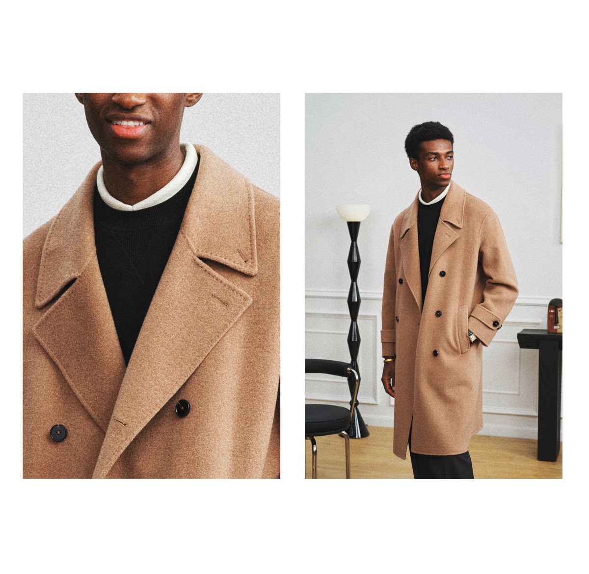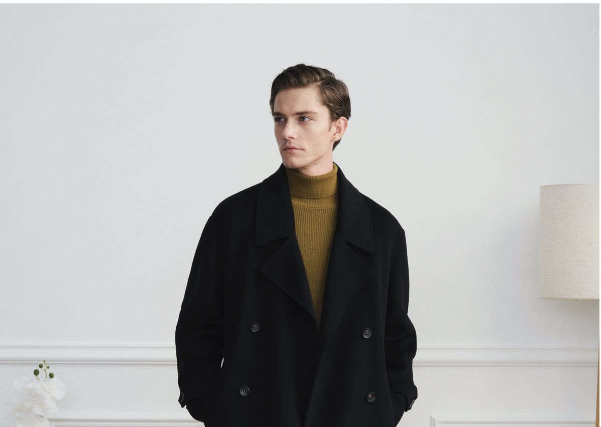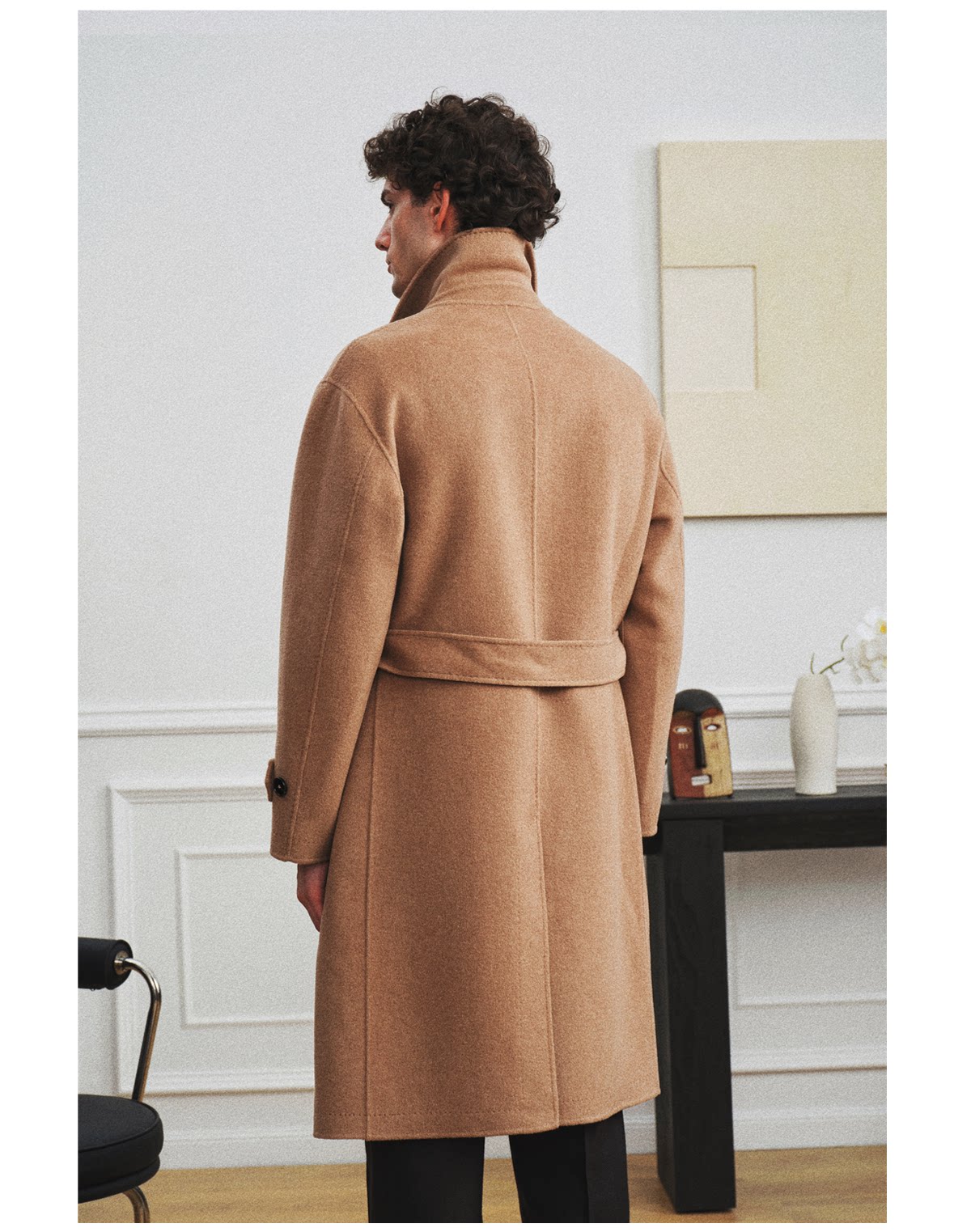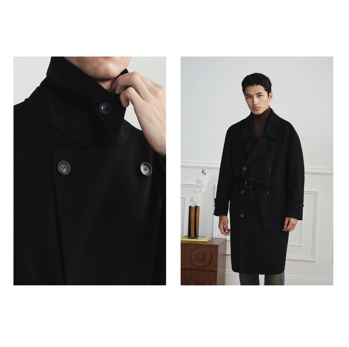 【Trench Coat Double-Sided Wool】Men's Khaki Business Casual Woolen Coat Double-Breasted Wool Jacket for Autumn and Winter