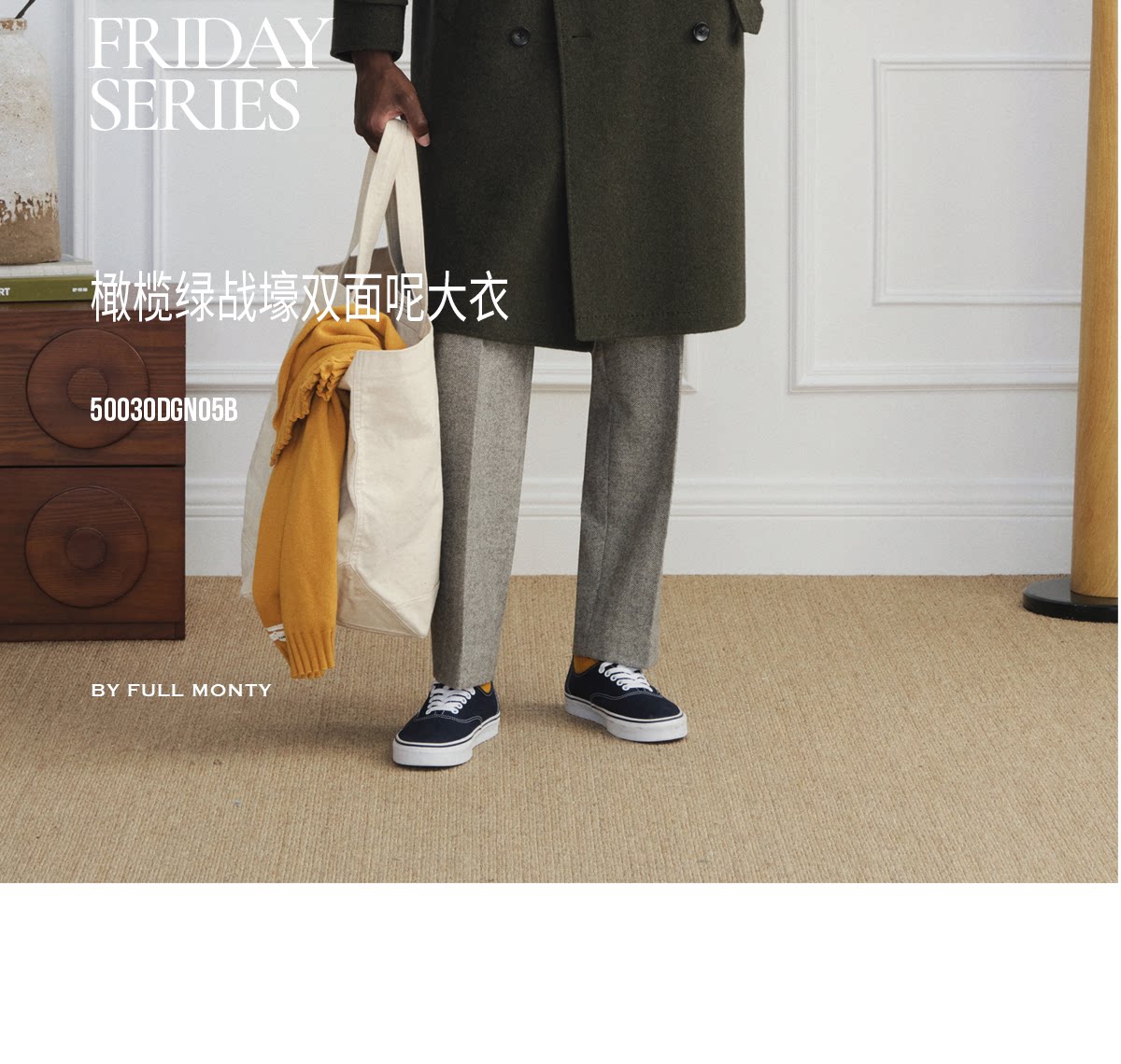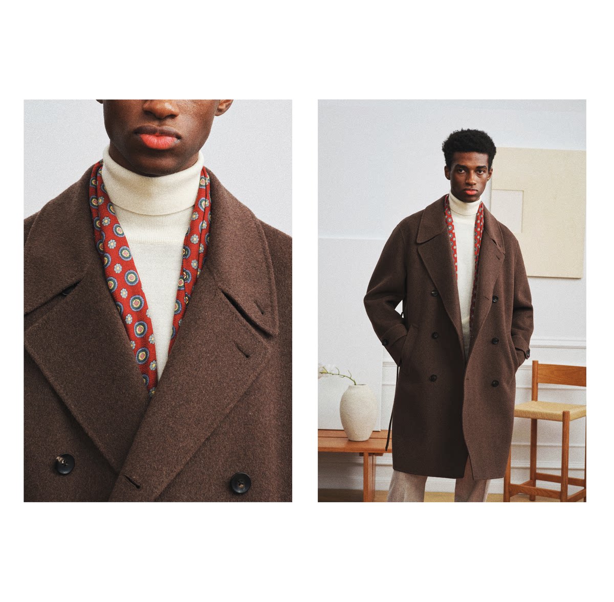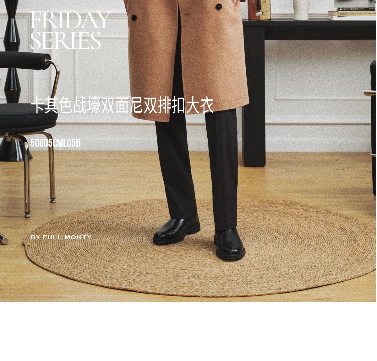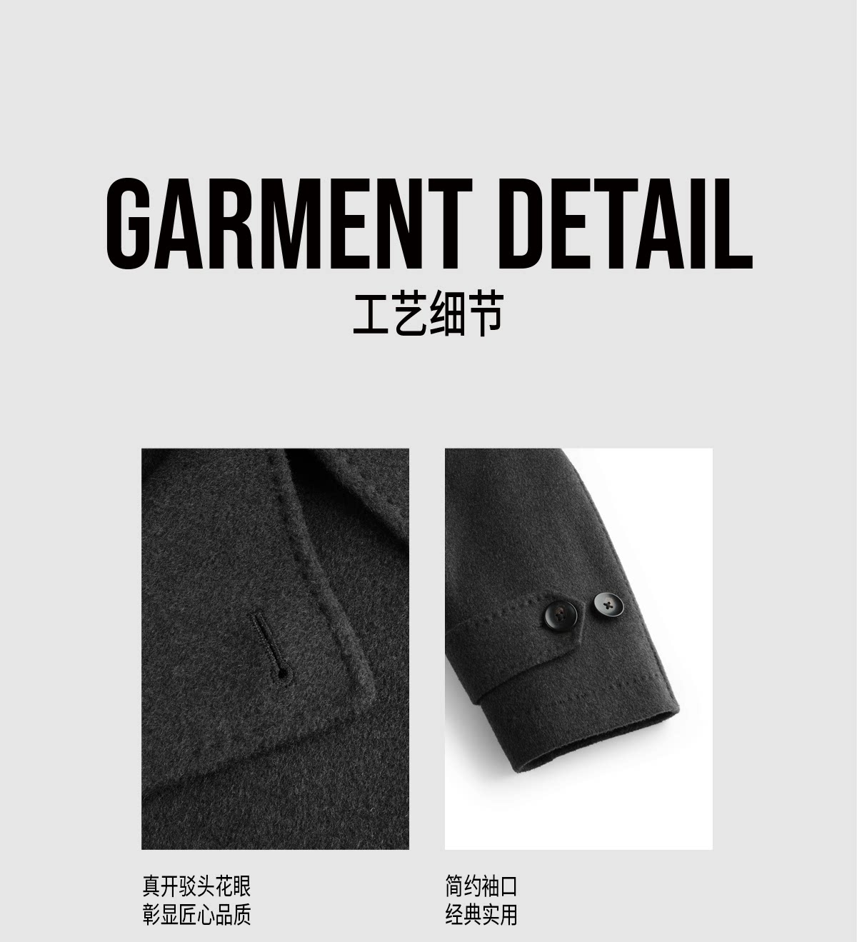 【Trench Coat Double-Sided Wool】Men's Khaki Business Casual Woolen Coat Double-Breasted Wool Jacket for Autumn and Winter