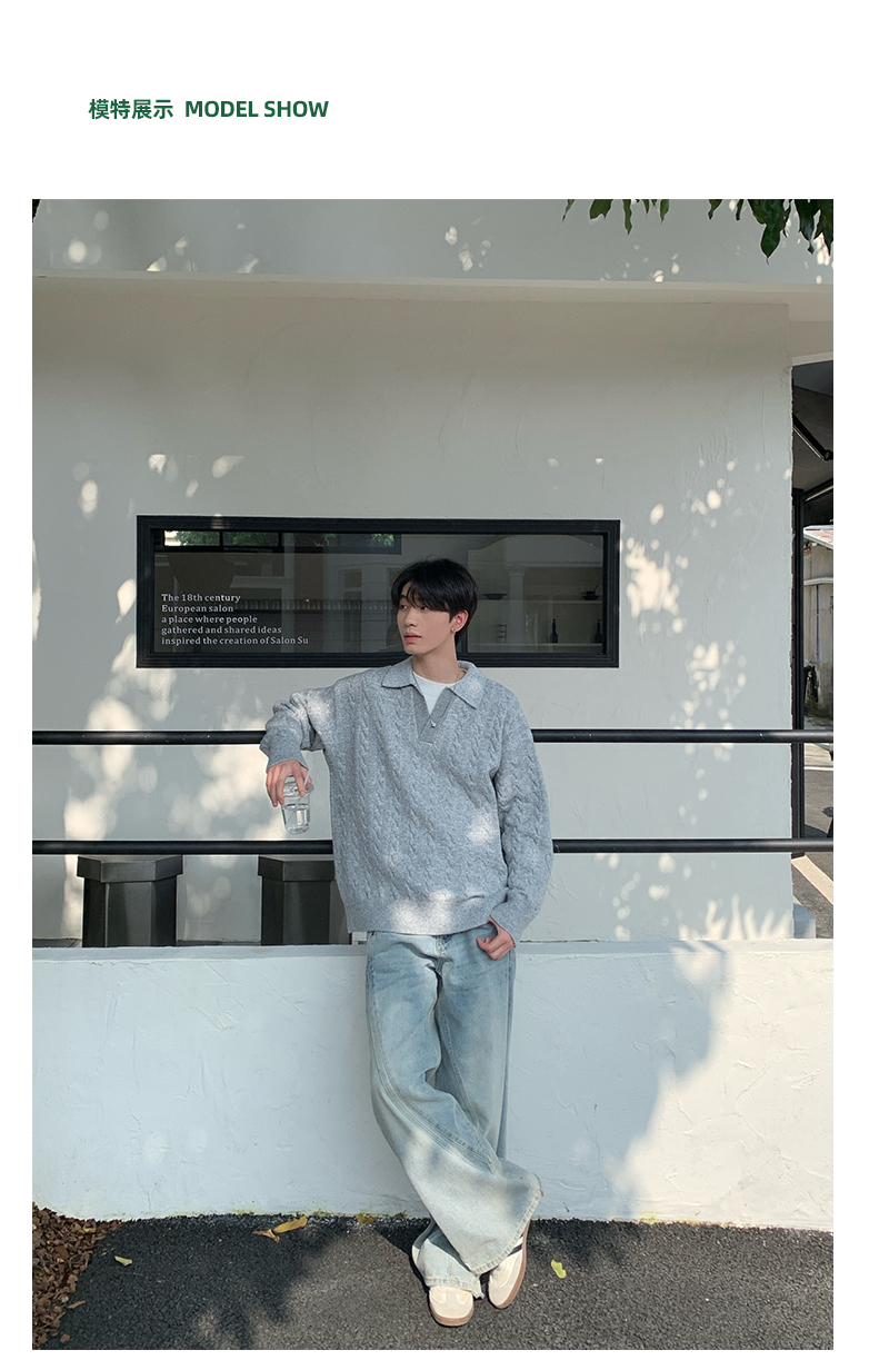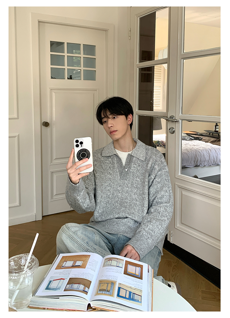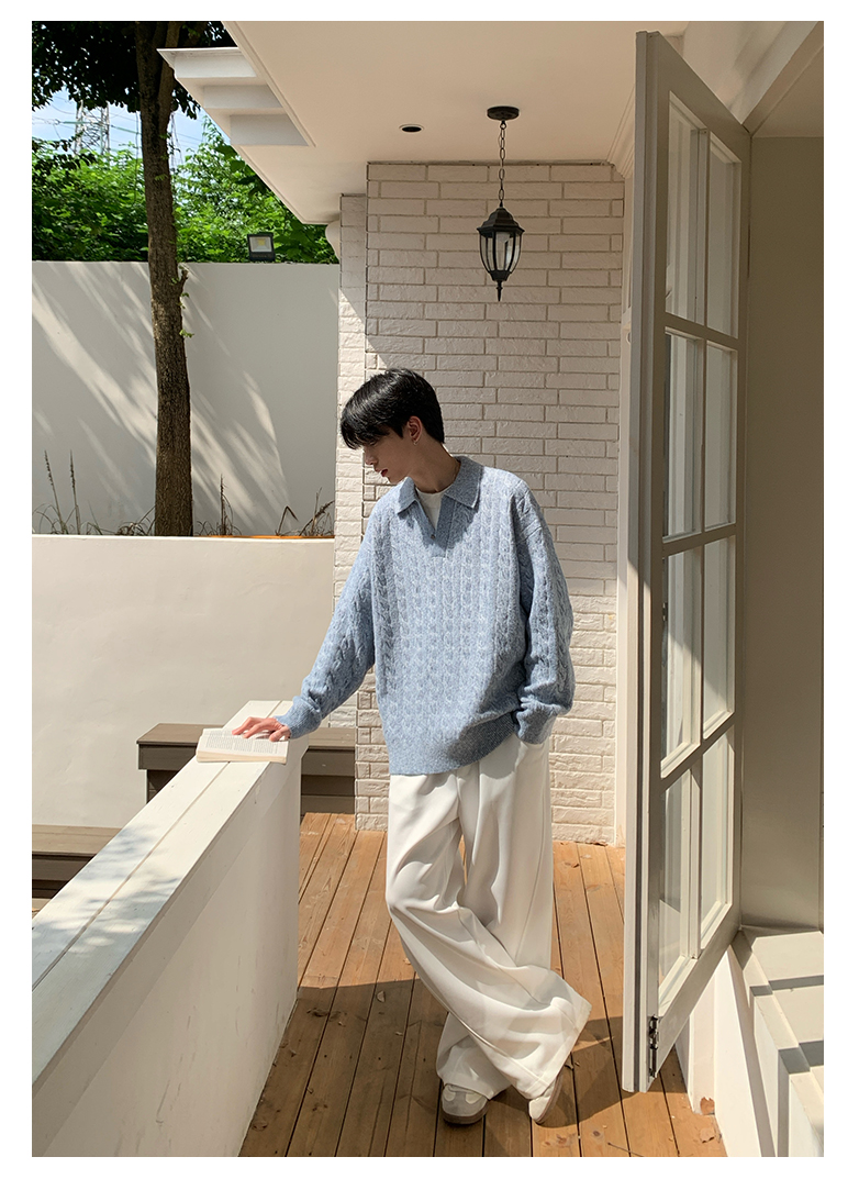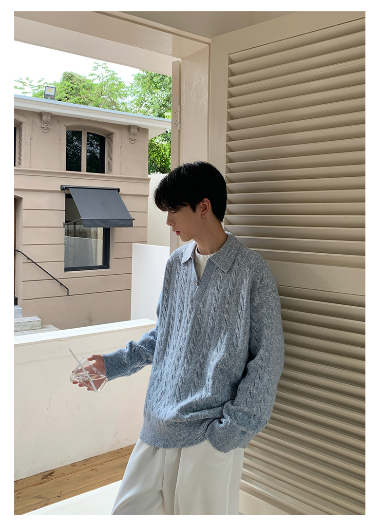 Onelyc1Ns Korean Style Fake Two-Piece Lapel Pullover Knitwear Long-Sleeved Men's Autum Loose Pure Color Casual Knitwear