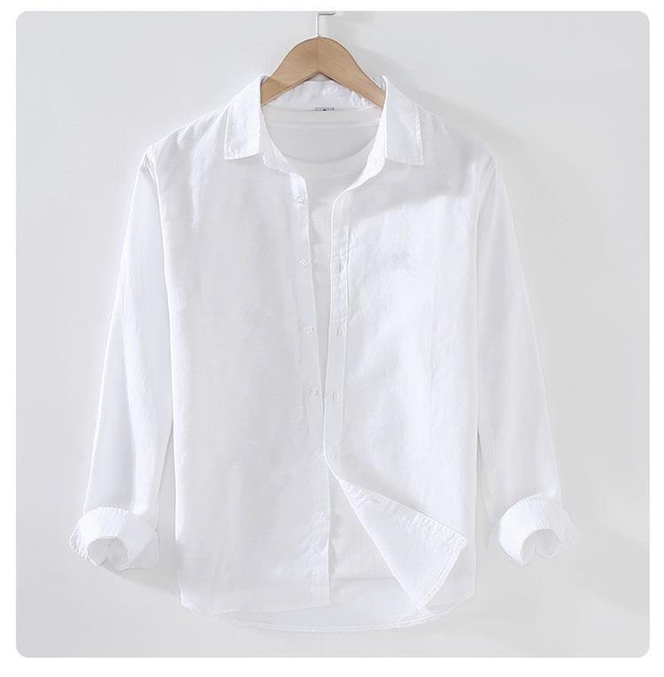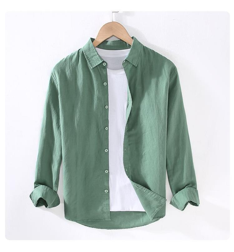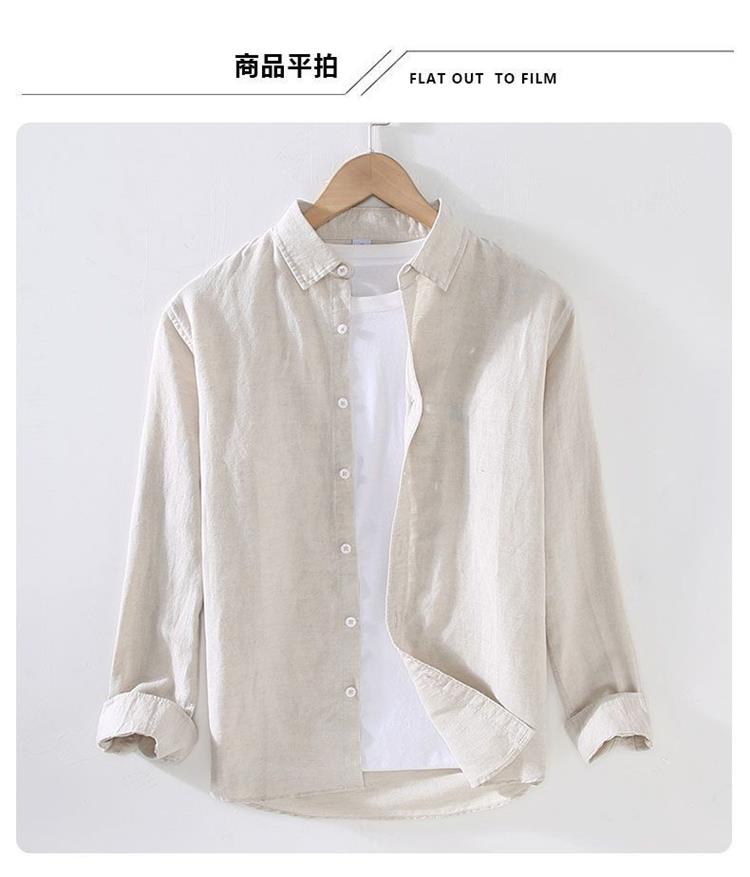 Men's Linen Long-Sleeved Shirt Linen Men's Clothing Japanese Casual Loose Cotton and Linen Shirt Spring and Summer Wear