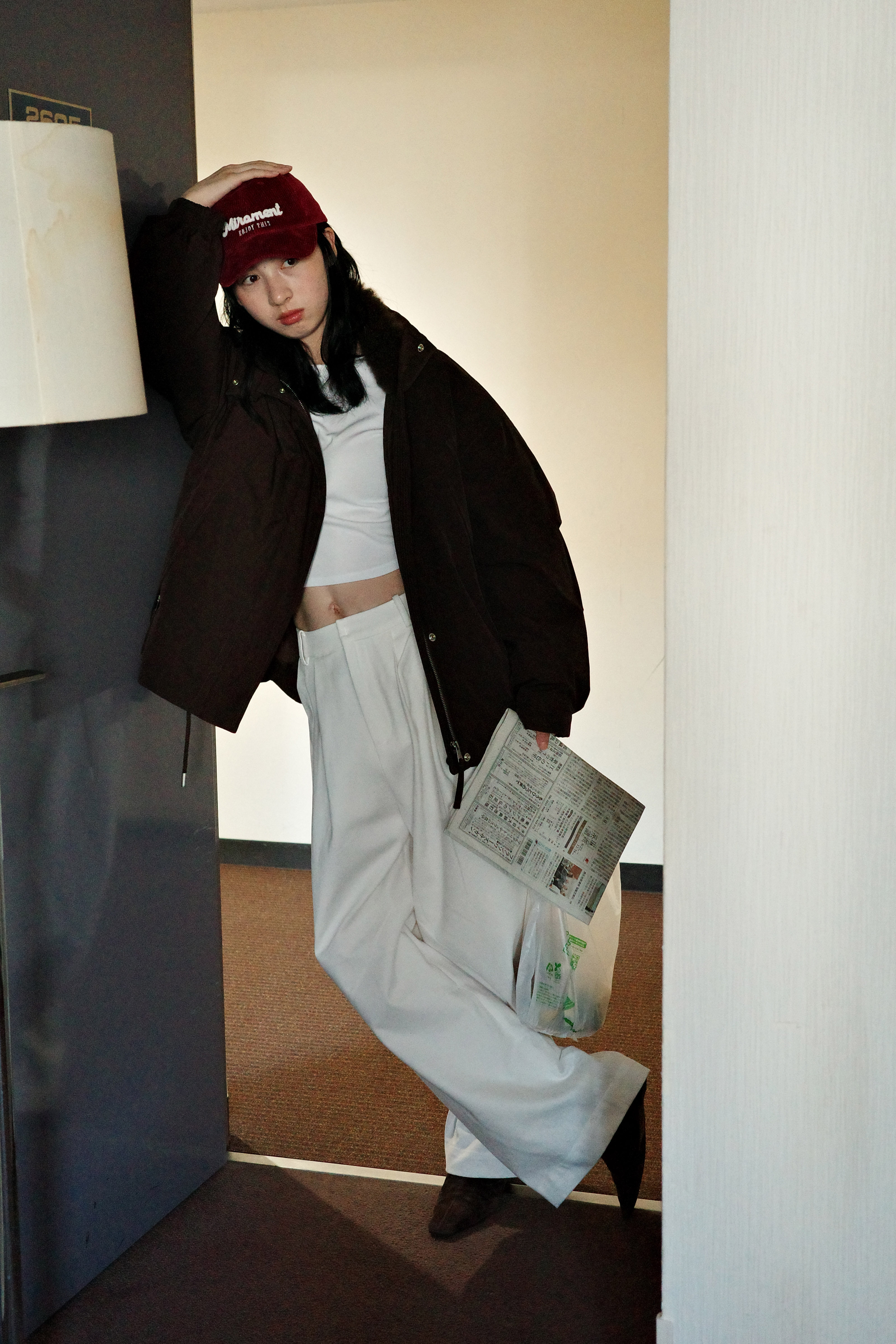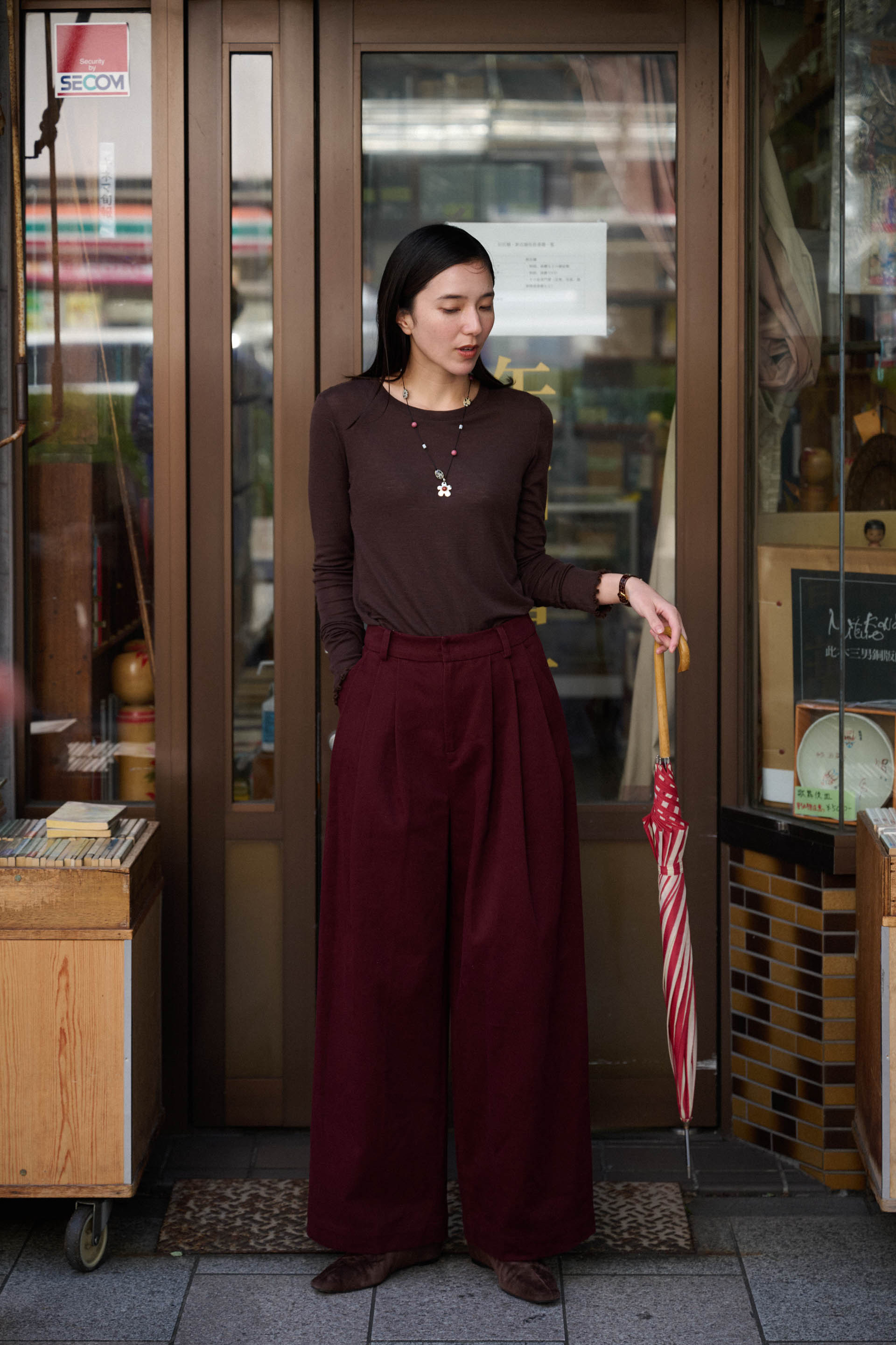 Miroment Pear-Shaped Tiancai Pants Angora Red/White Pure Cotton Thick Twill High-Waisted Wide-Leg Pants for All Seasons