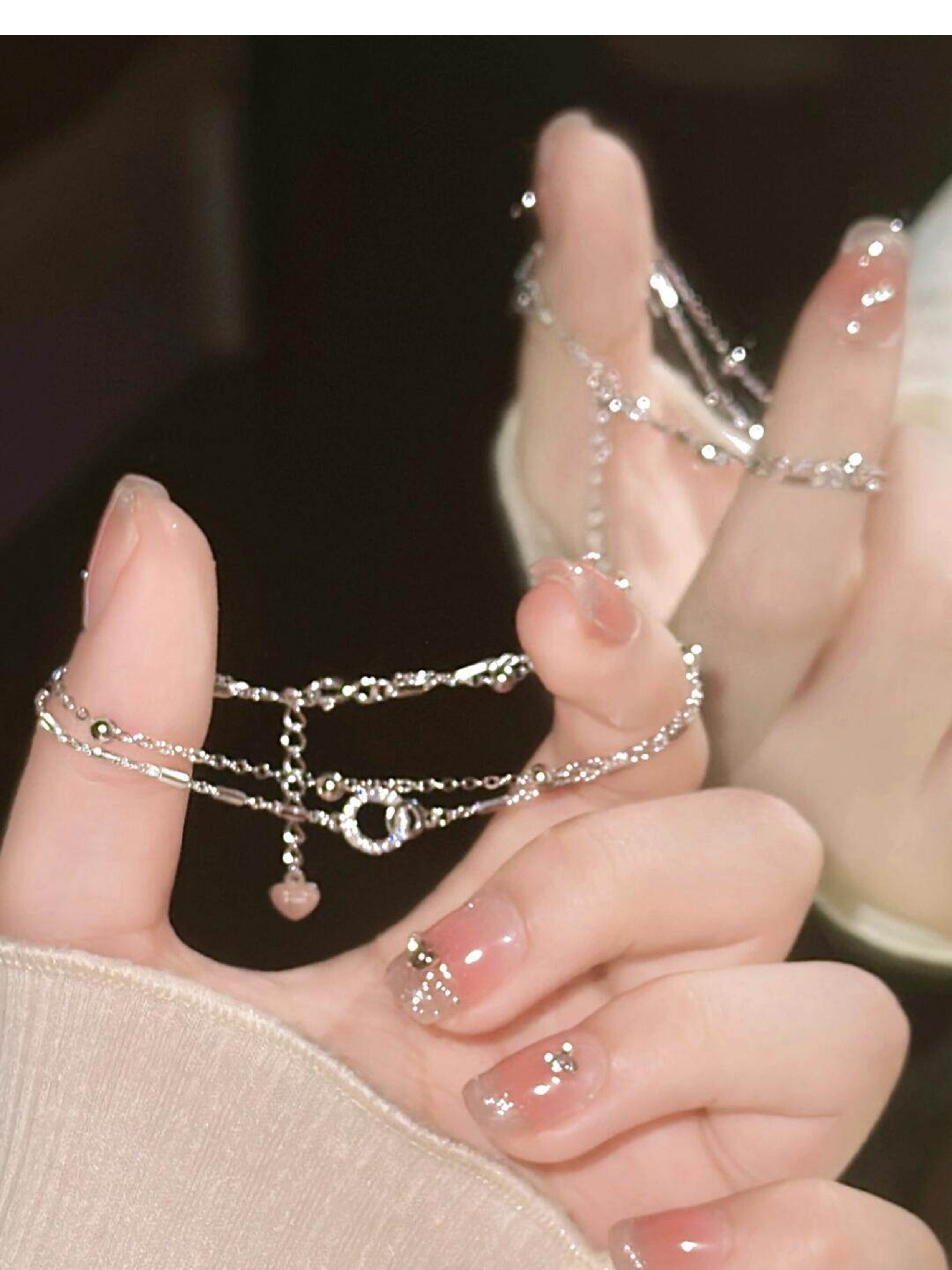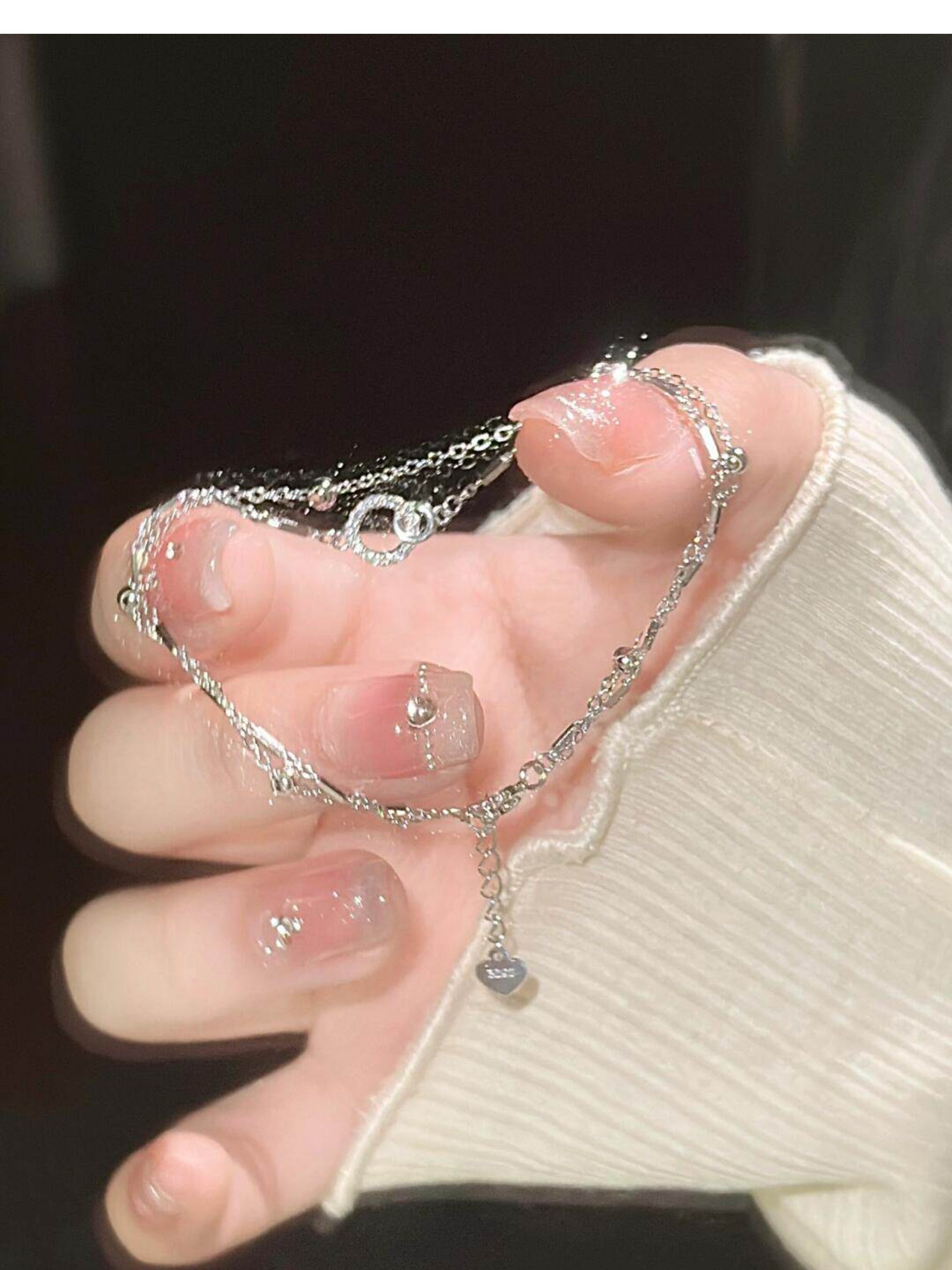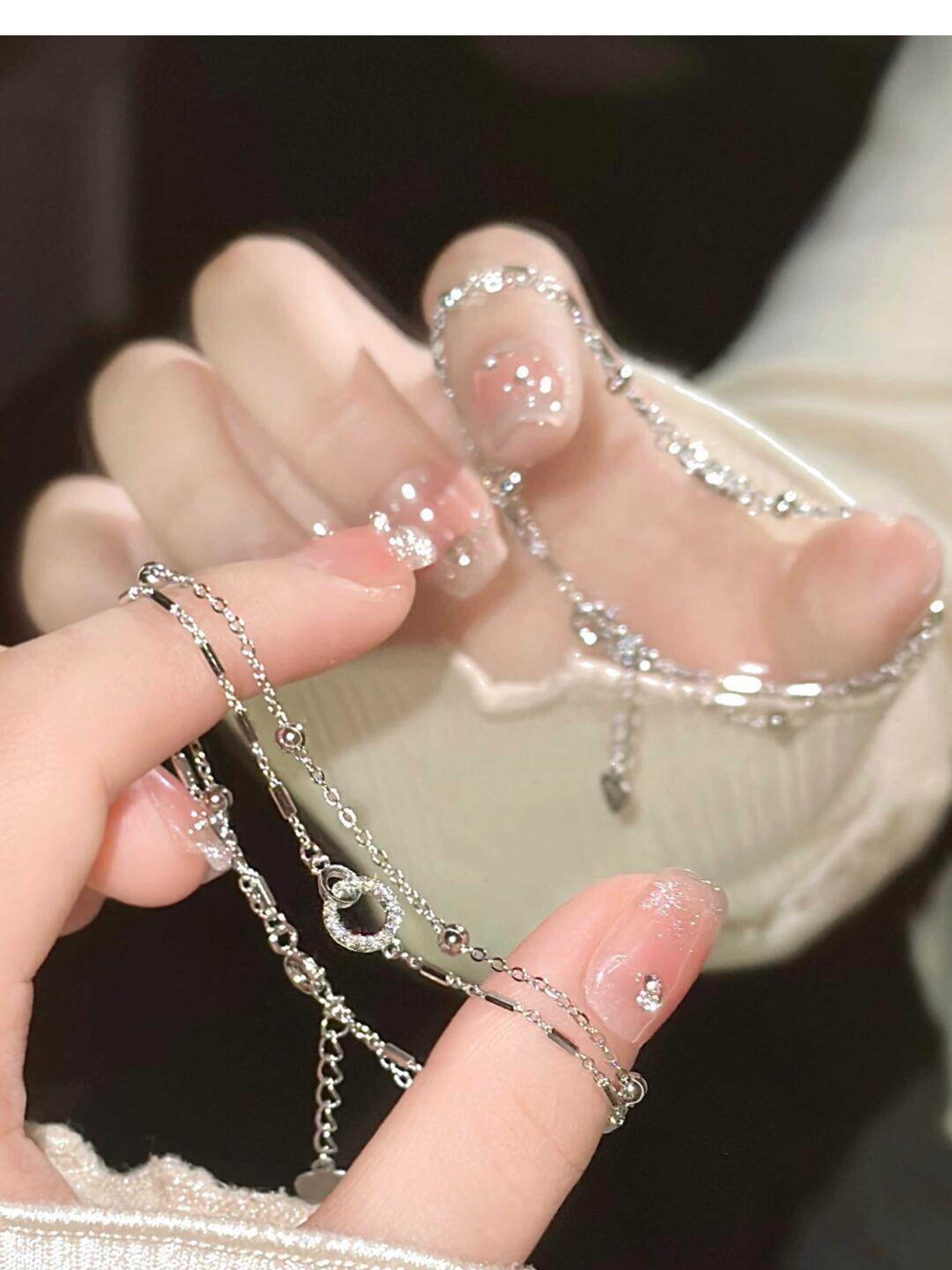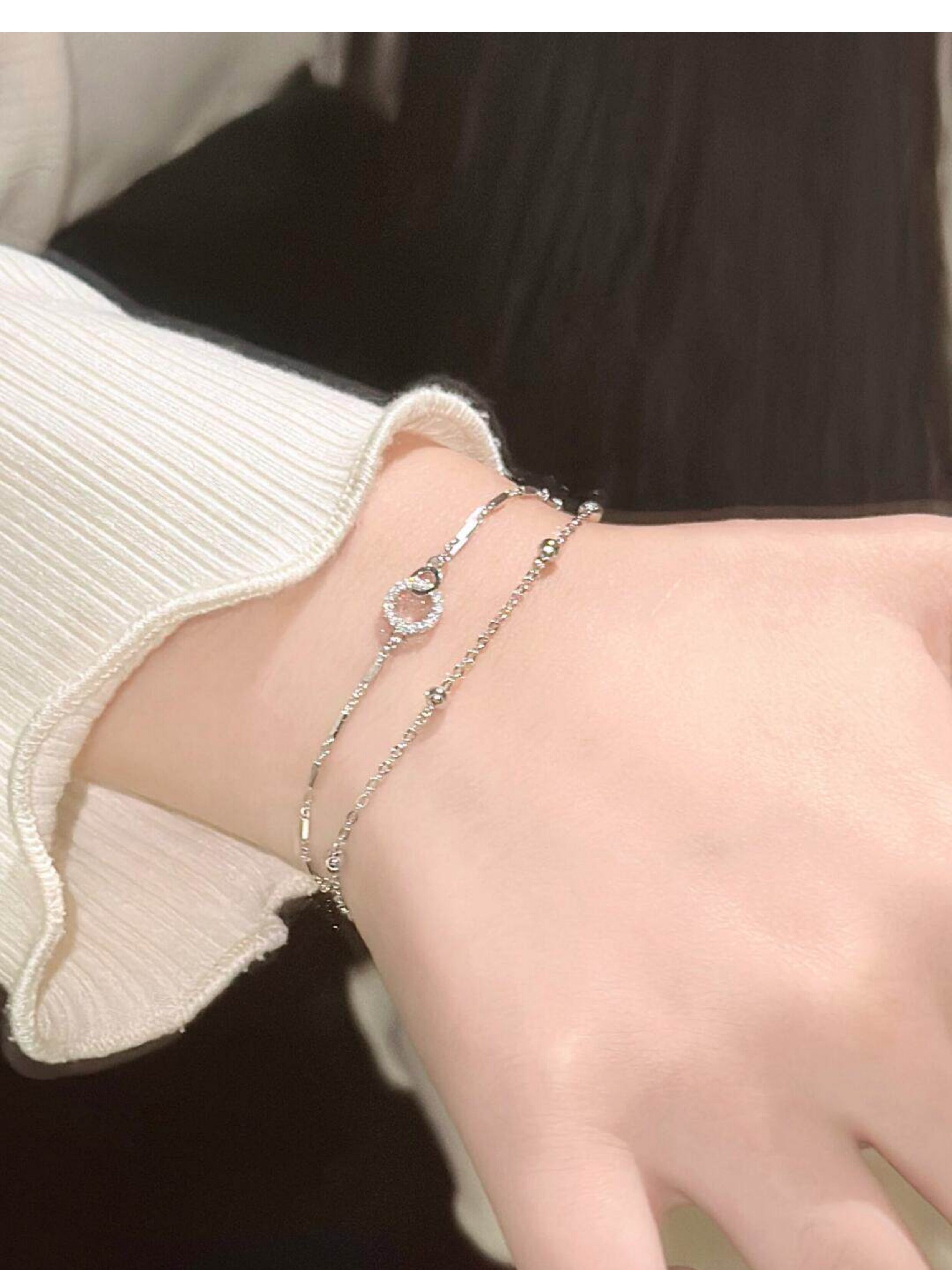 All-Over S999 Pure Silver! Interlocking Bracelet for Women, Light Luxury, Niche, Double-Layered, Stackable, Gift for Girlfriend or Best Friend