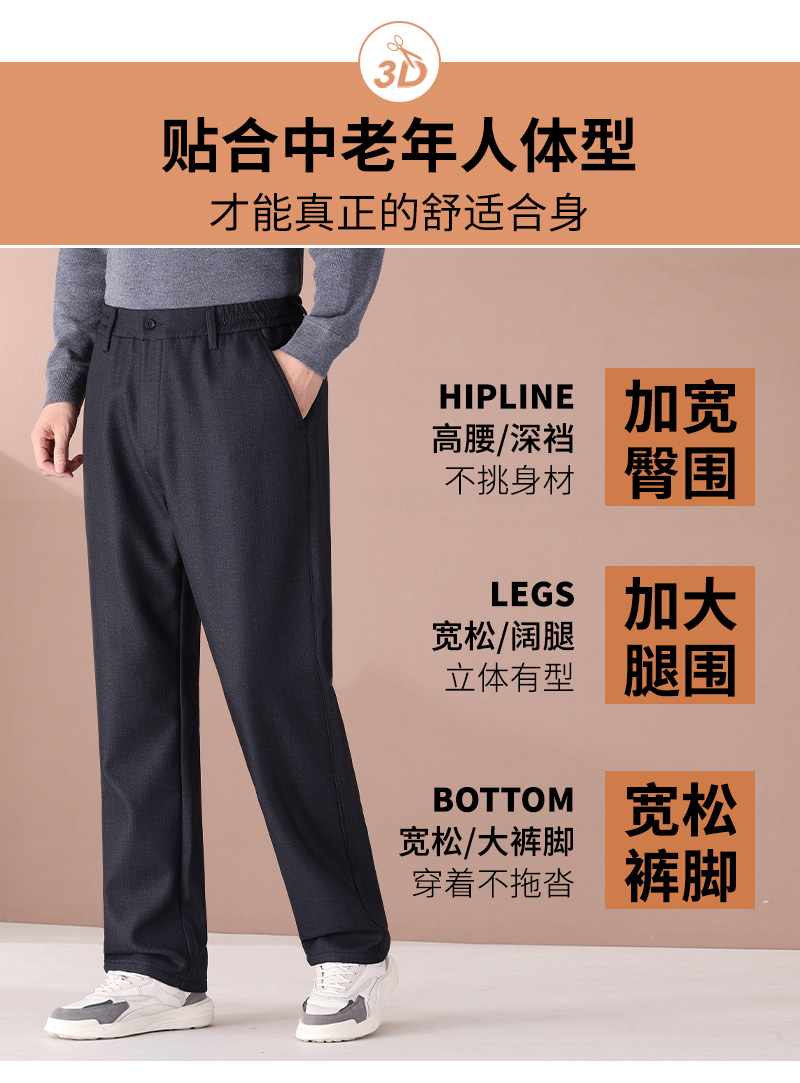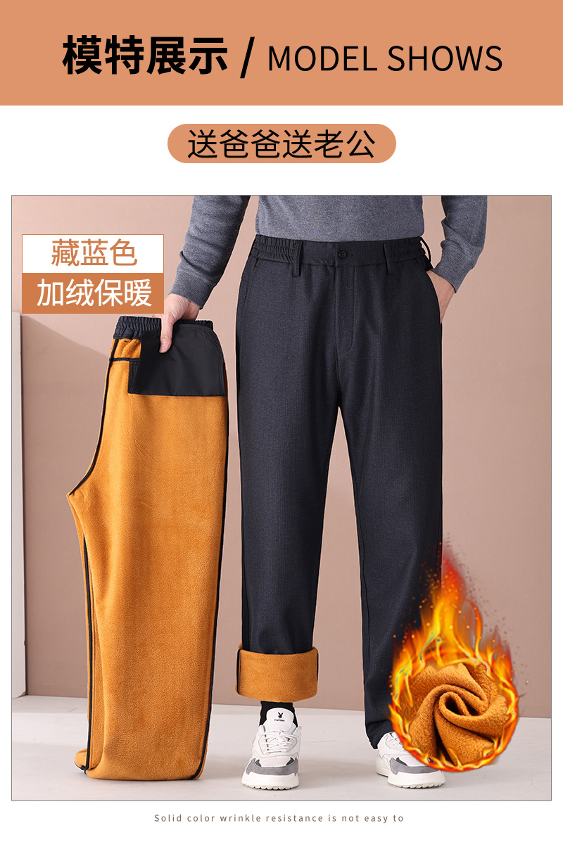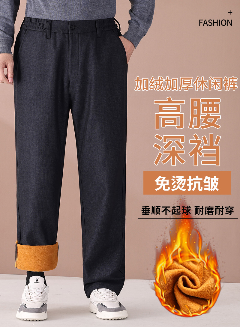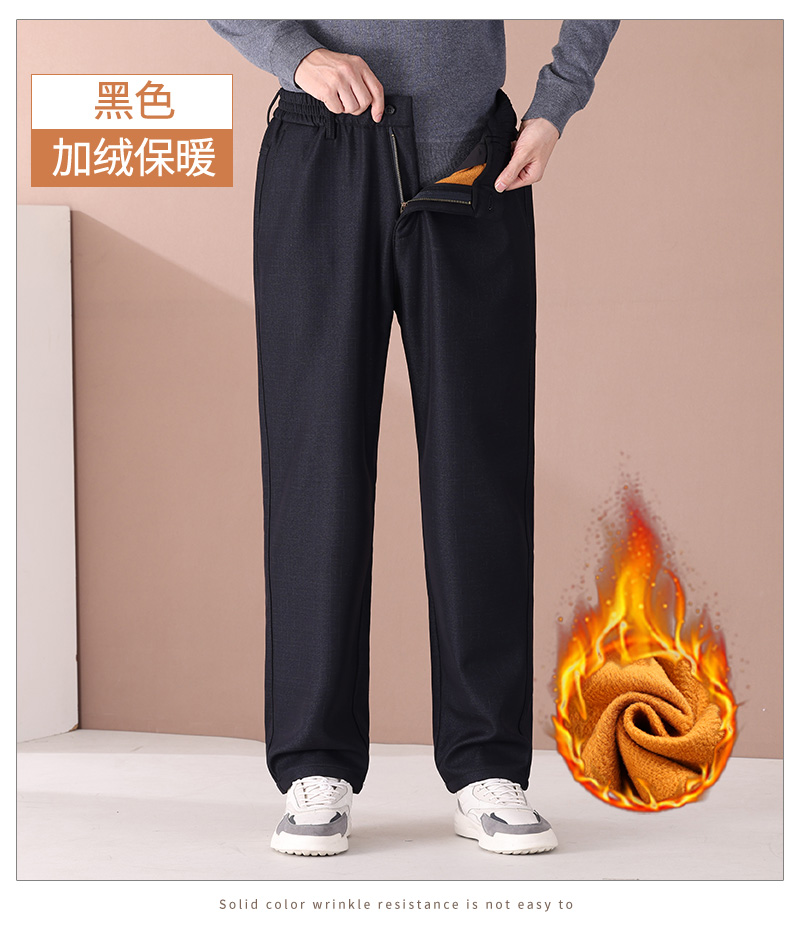 Dad's Pants Men's Winter High-Waisted Deep-Crotch Middle-Aged Men's Casual Pants Fleece-Lined Thickened Loose-Fitting Middle-Aged and Elderly Men's Pants