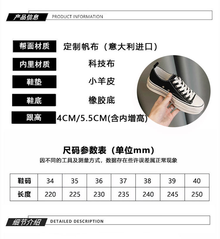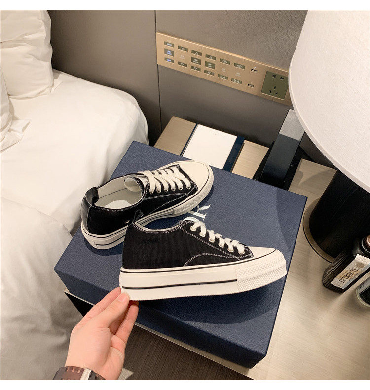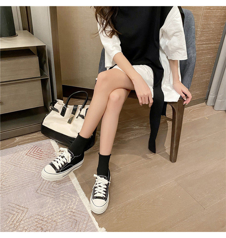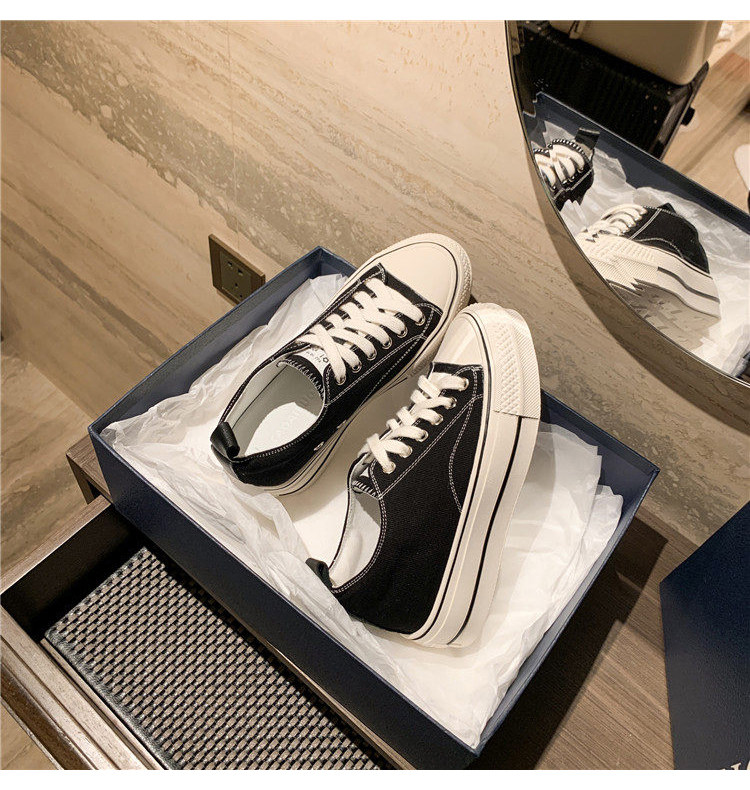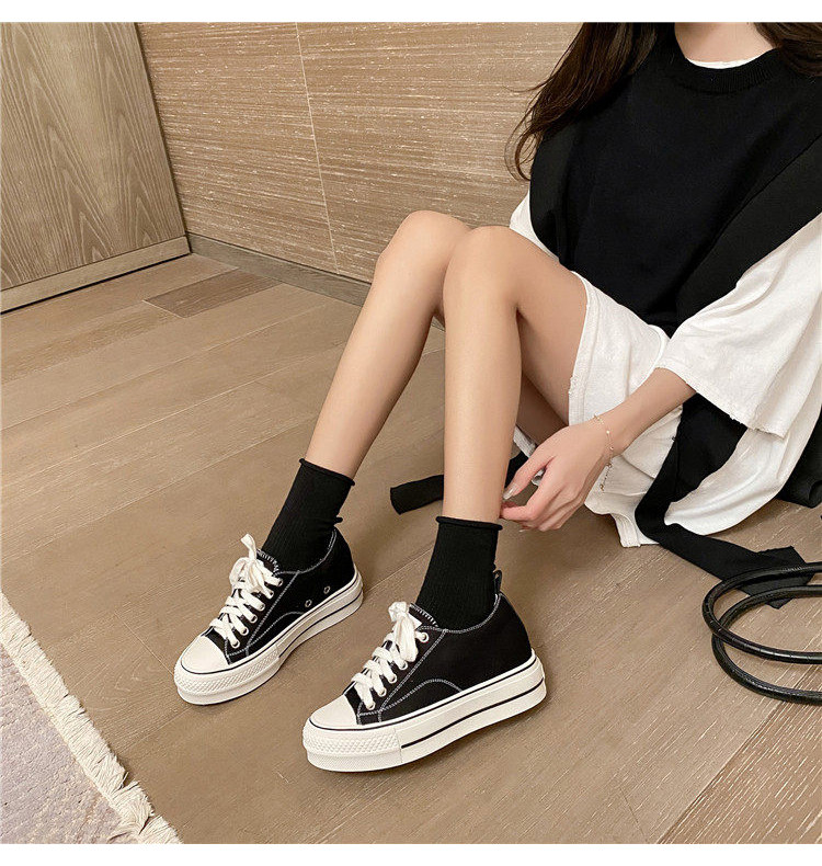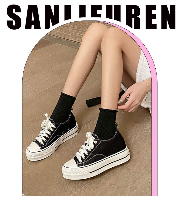 Italy Sanli~ Casual Chunky Sneakers for Women, New Dirty White Shoes, Versatile Black Thick-Soled Canvas Shoes, Trendy