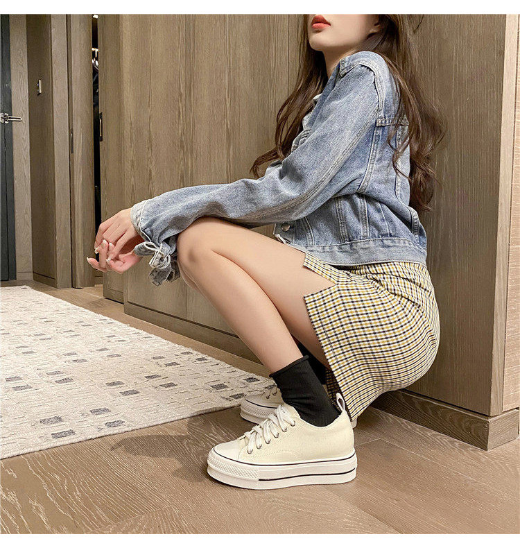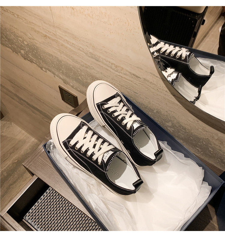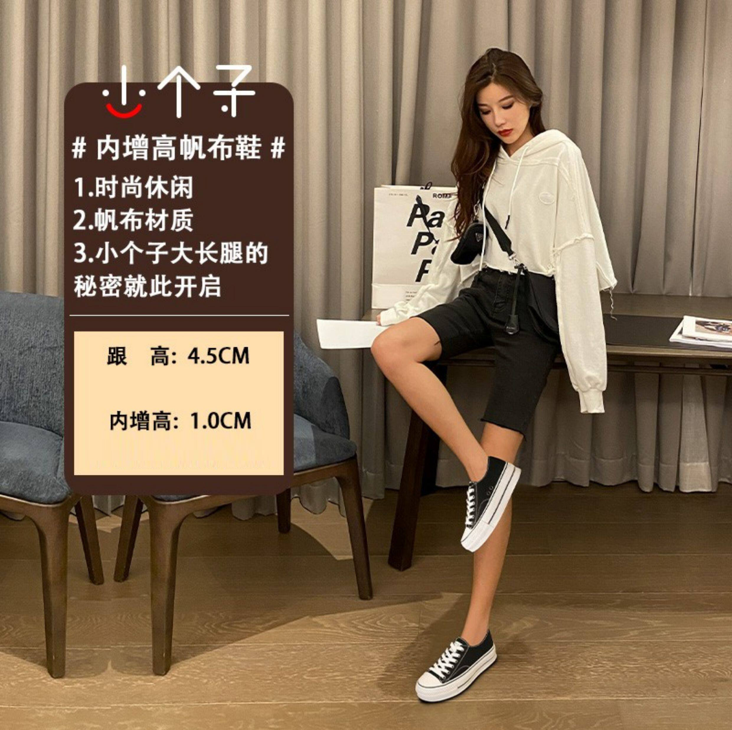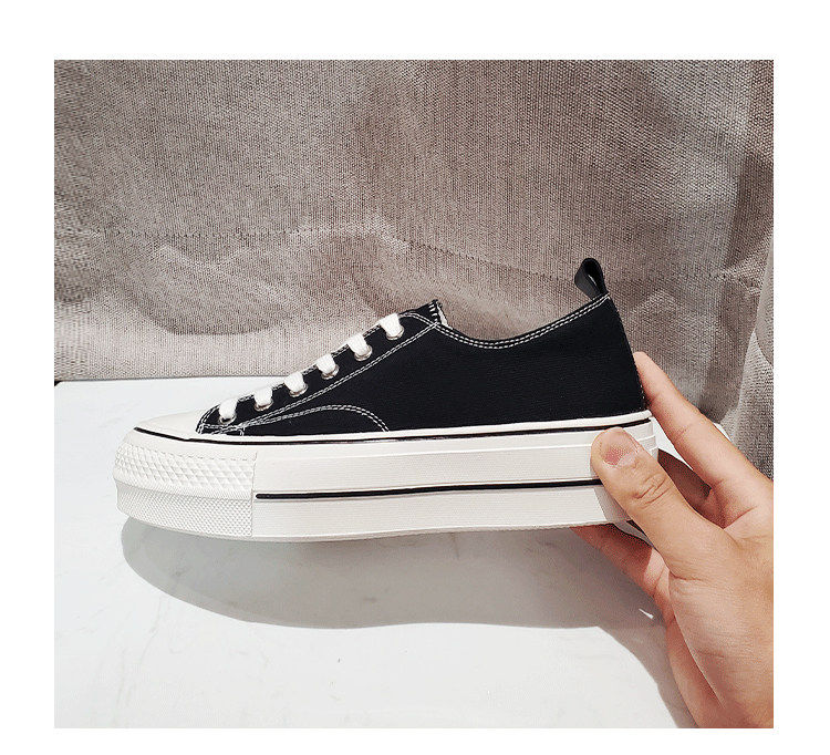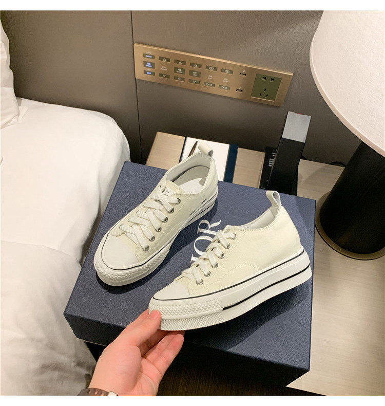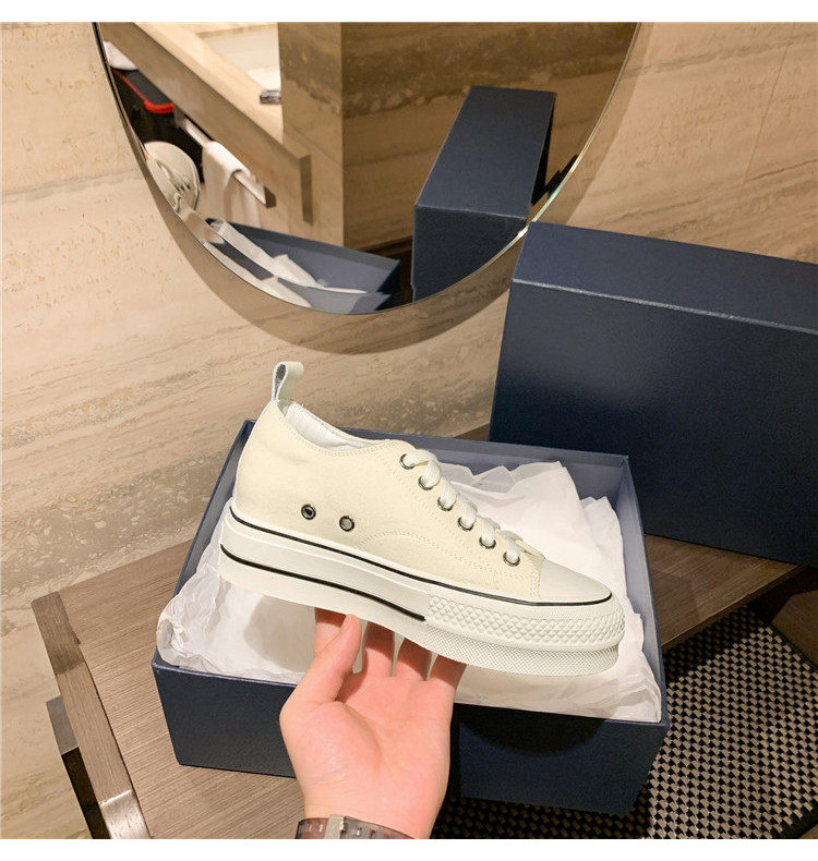 Italy Sanli~ Casual Chunky Sneakers for Women, New Dirty White Shoes, Versatile Black Thick-Soled Canvas Shoes, Trendy