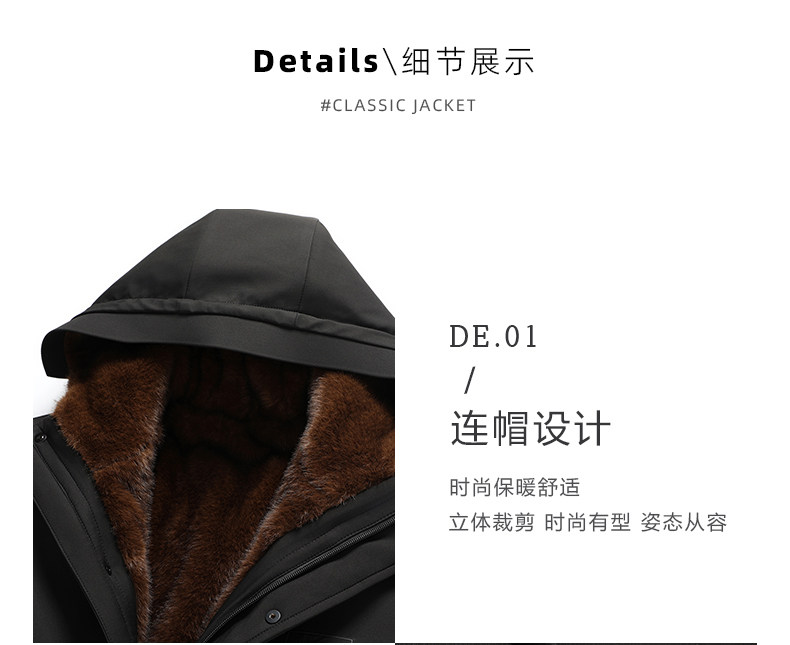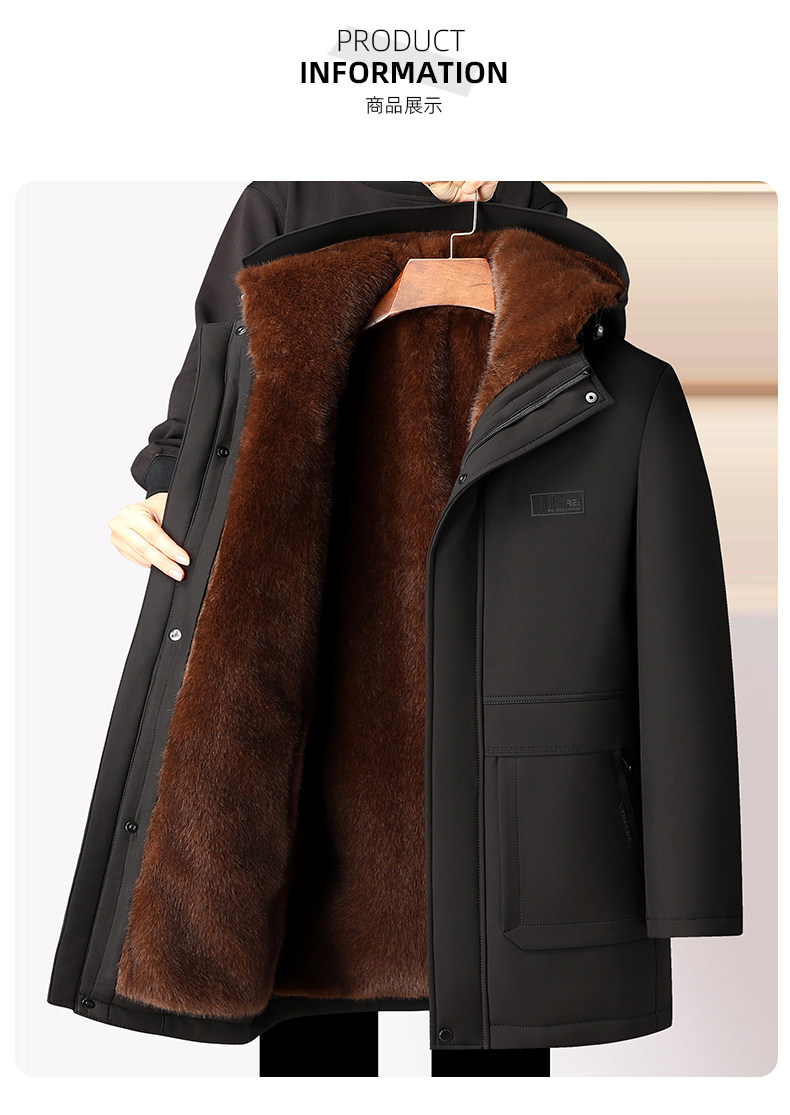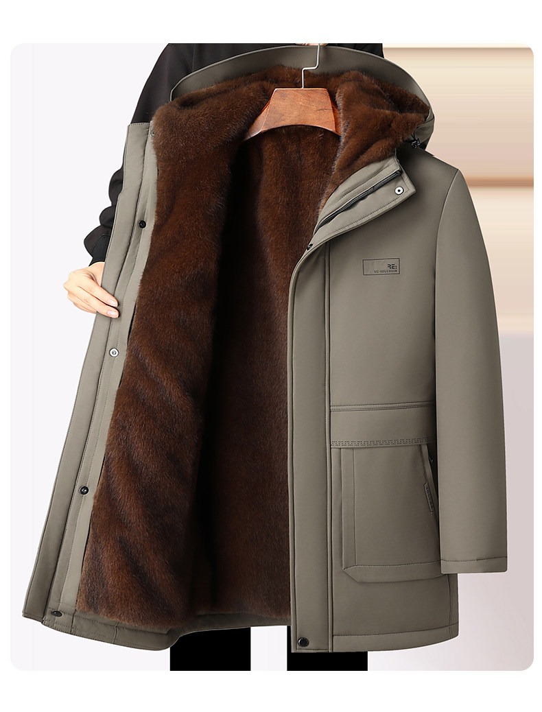 Woodpecker Winter Mink Fur Coat for Middle-Aged and Elderly Men with Removable Liner, Dad's Cold-Proof Clothing for Minus 60 Degrees