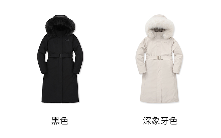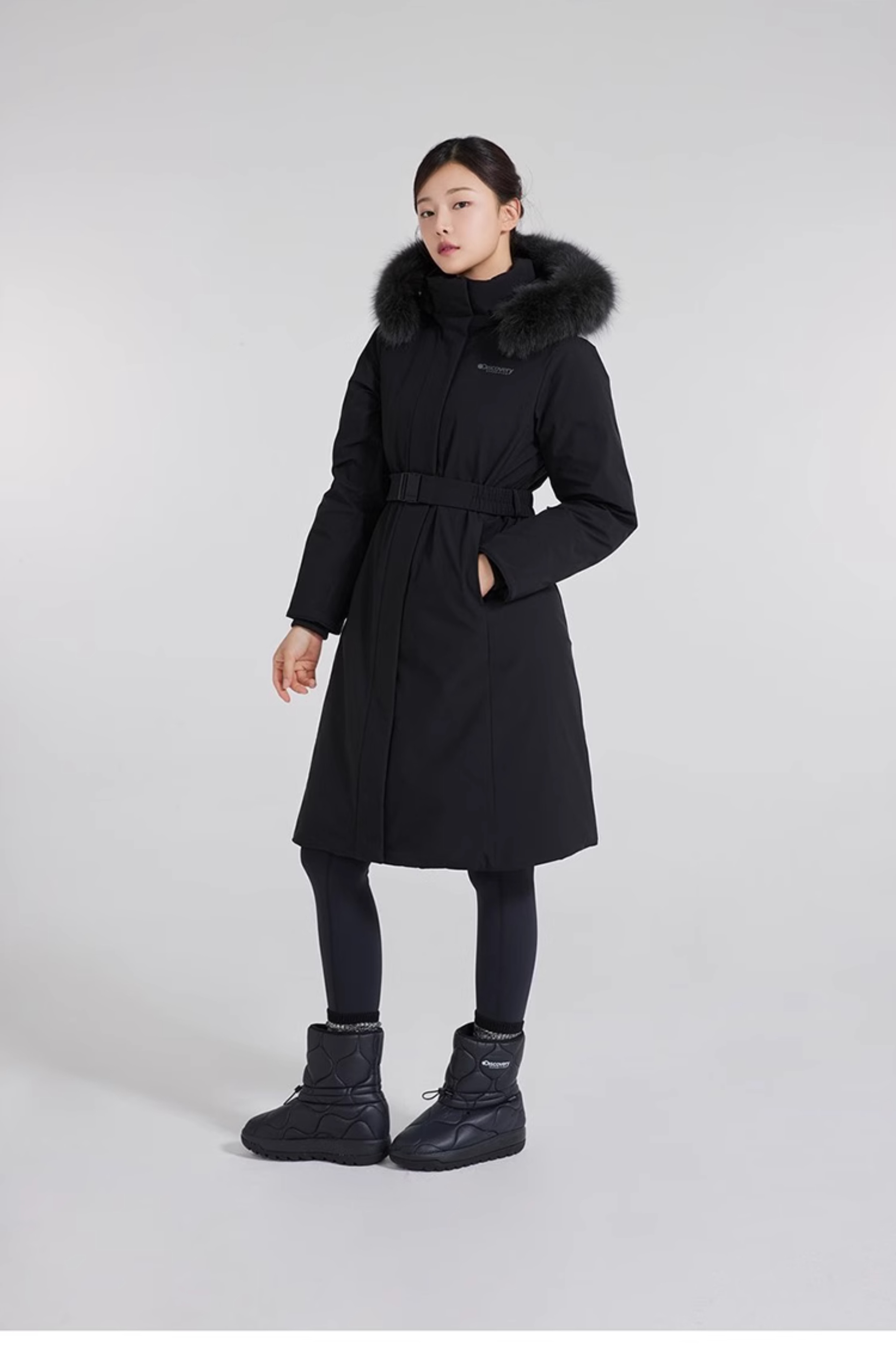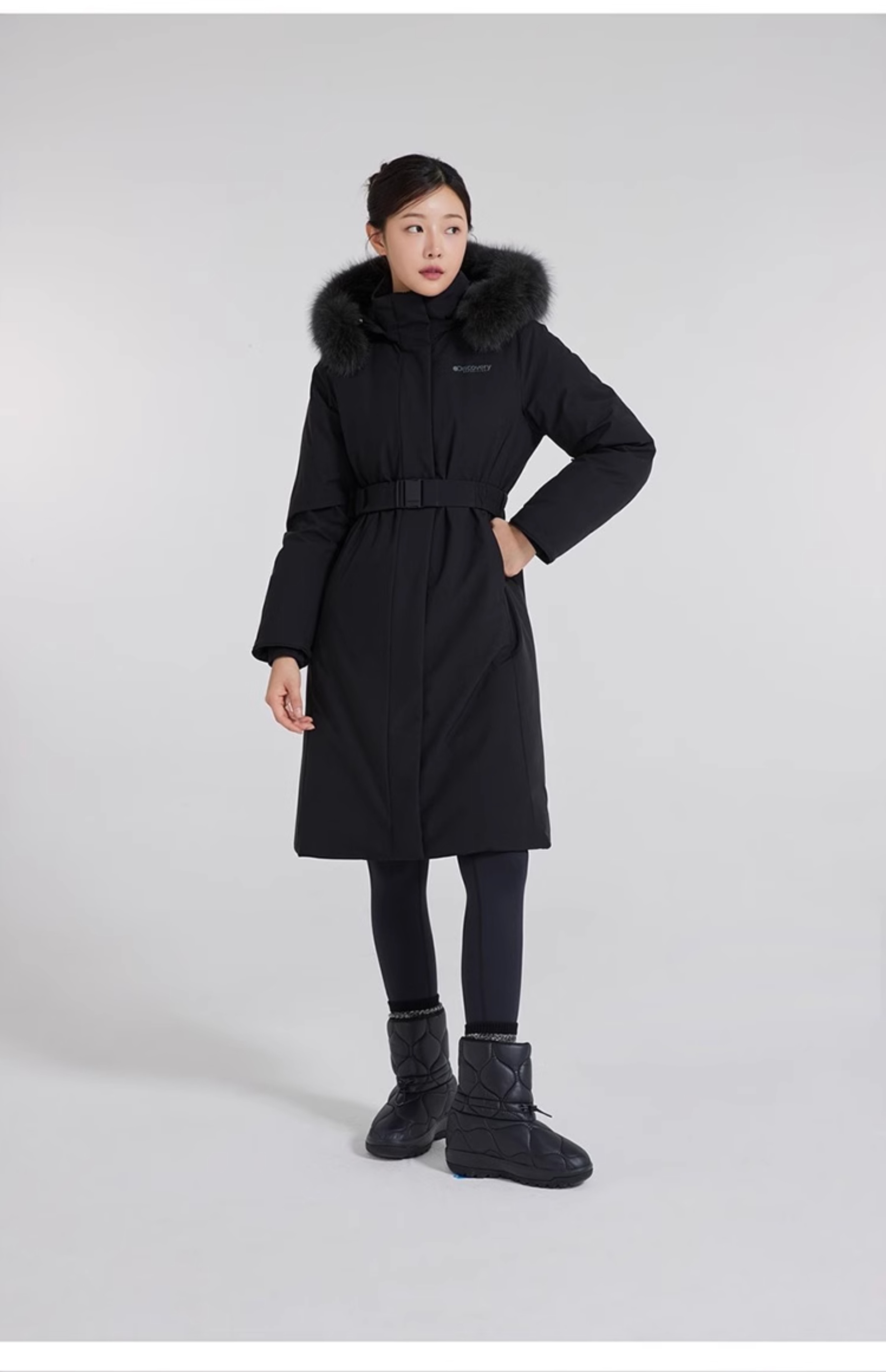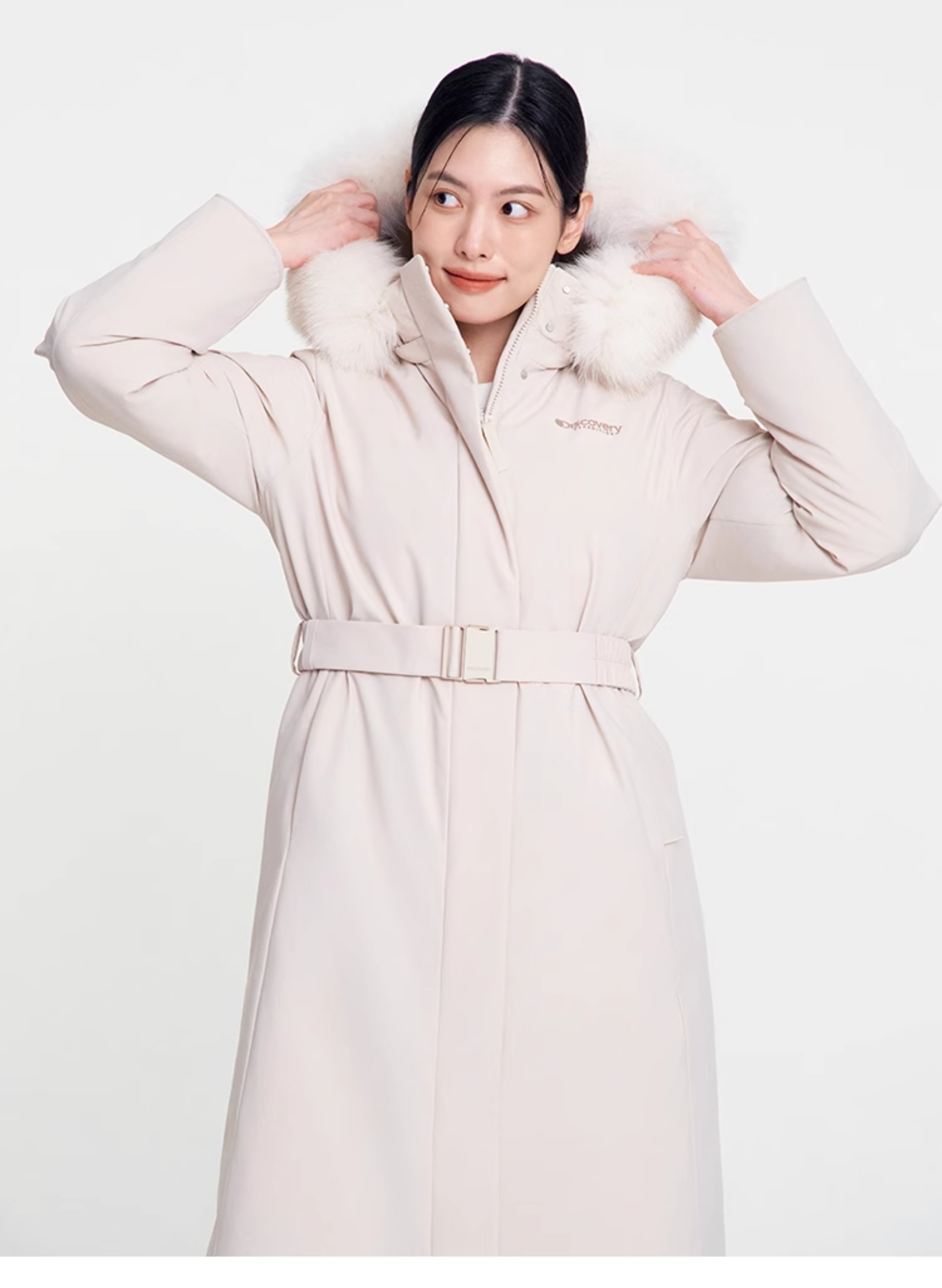 Discovery Winter Outdoor Long down Jacket 90% Goose down 700 Fill Power Waist-Cinching Fur Collar Hooded Warm down Jacket for Women