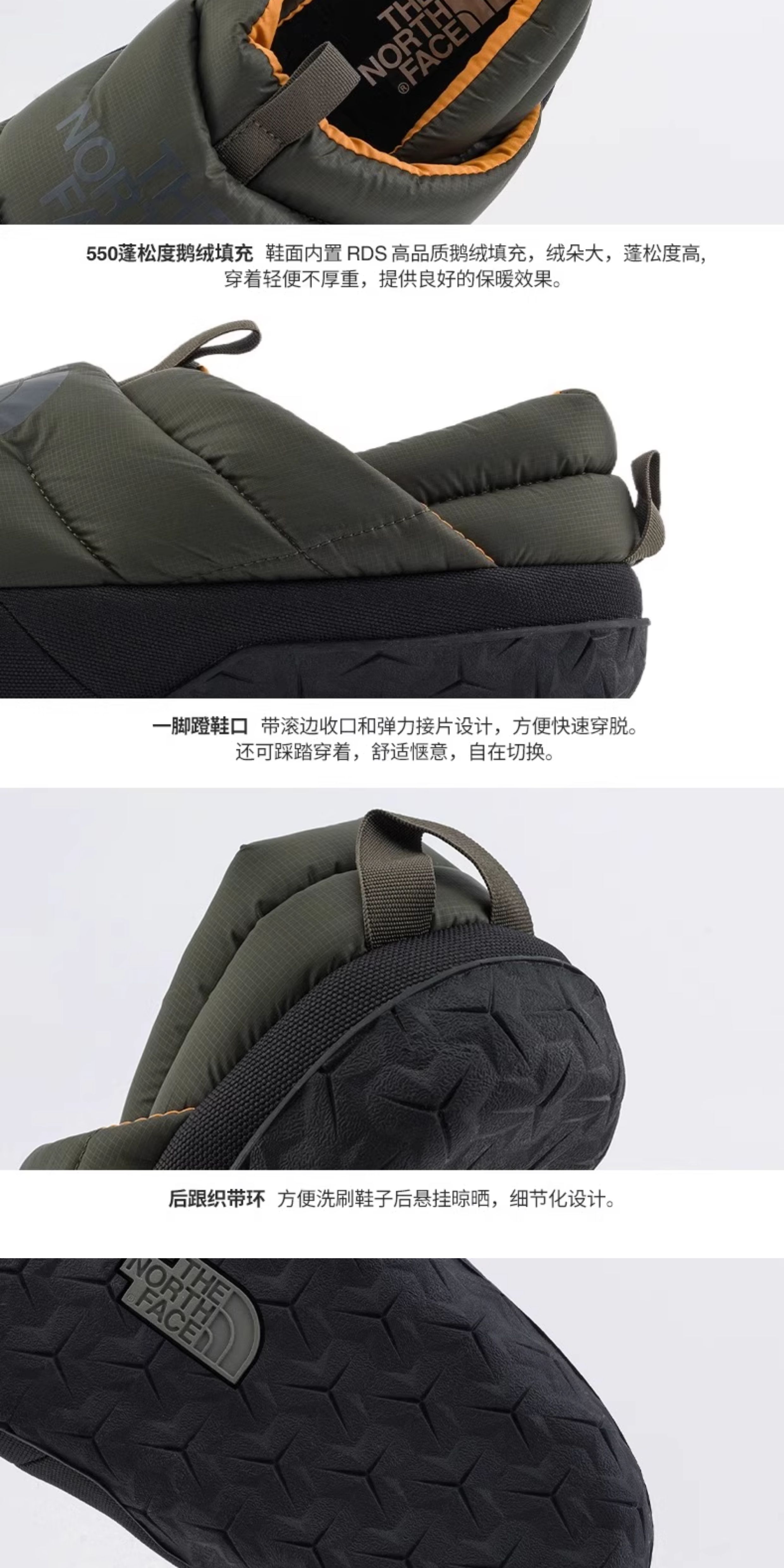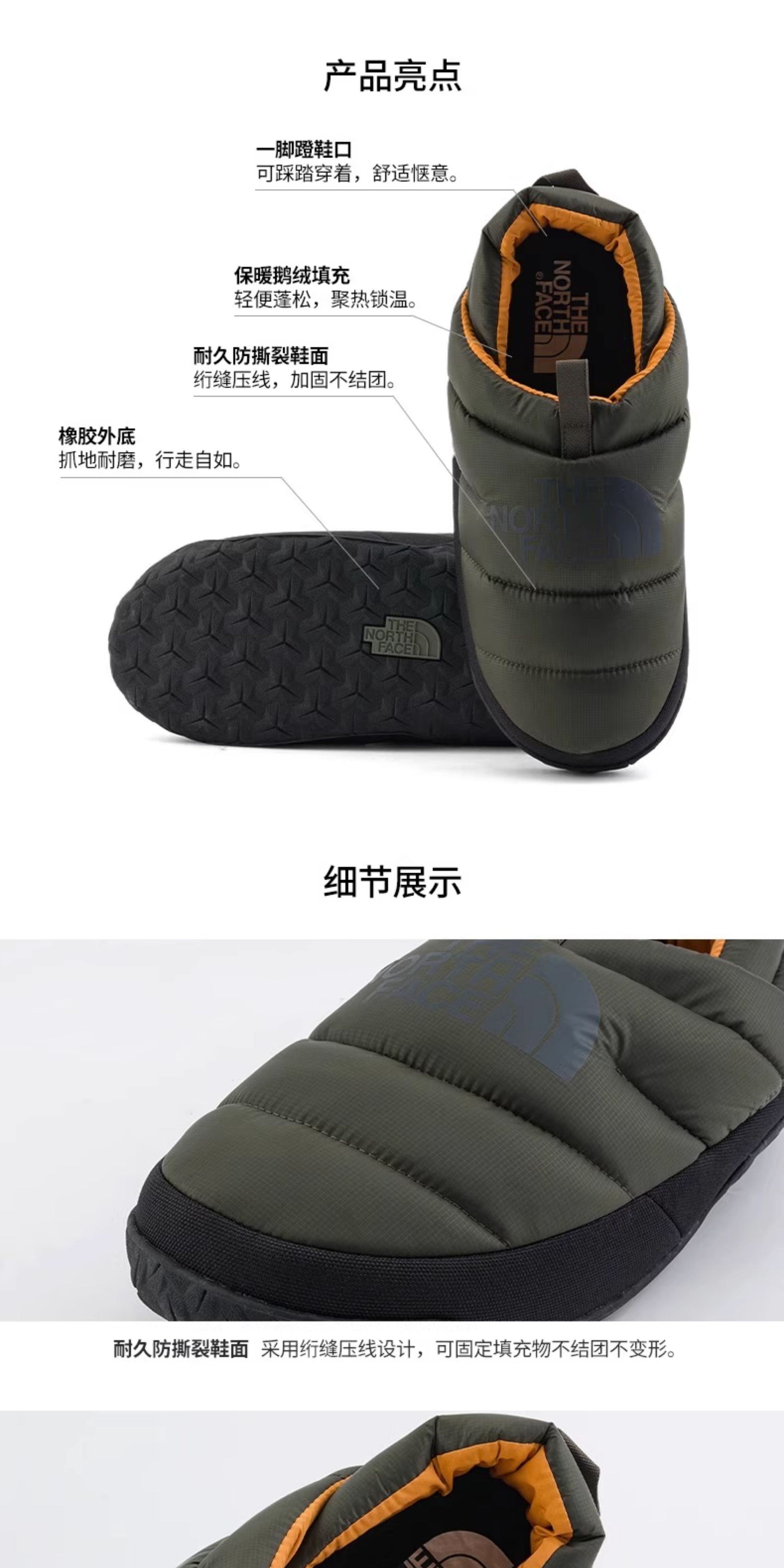 Thenorthface North Face Camp Shoes Men's Autumn and Winter Outdoor Goose down Slip-On Warm Non-Slip Loafers 5G2F