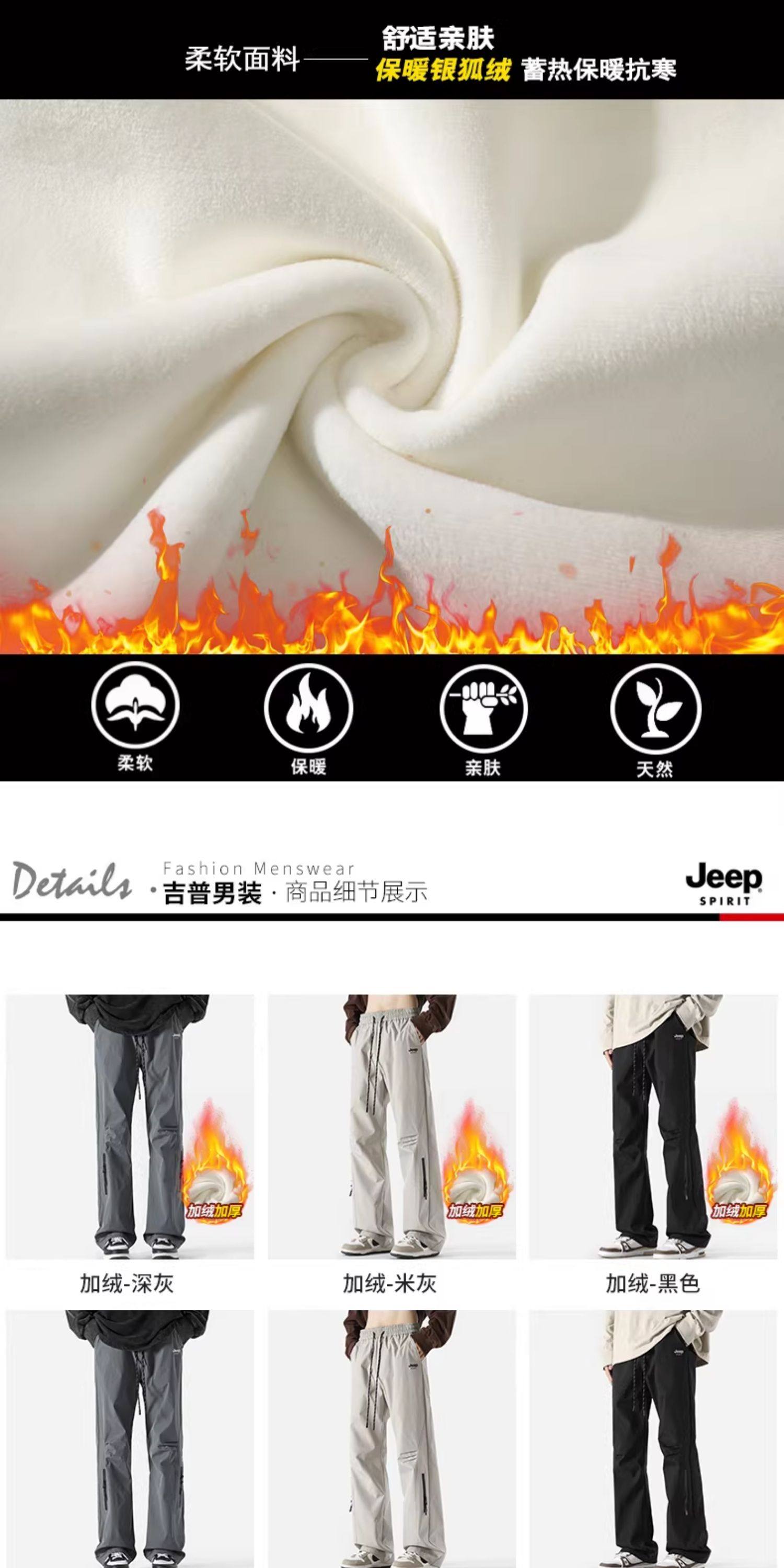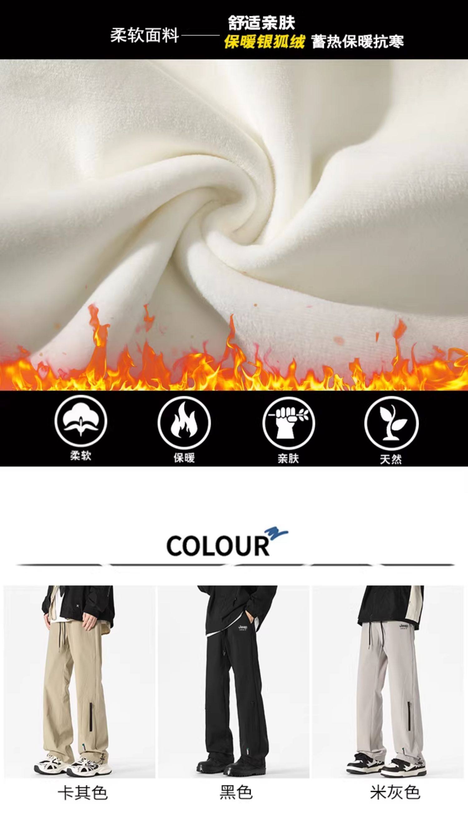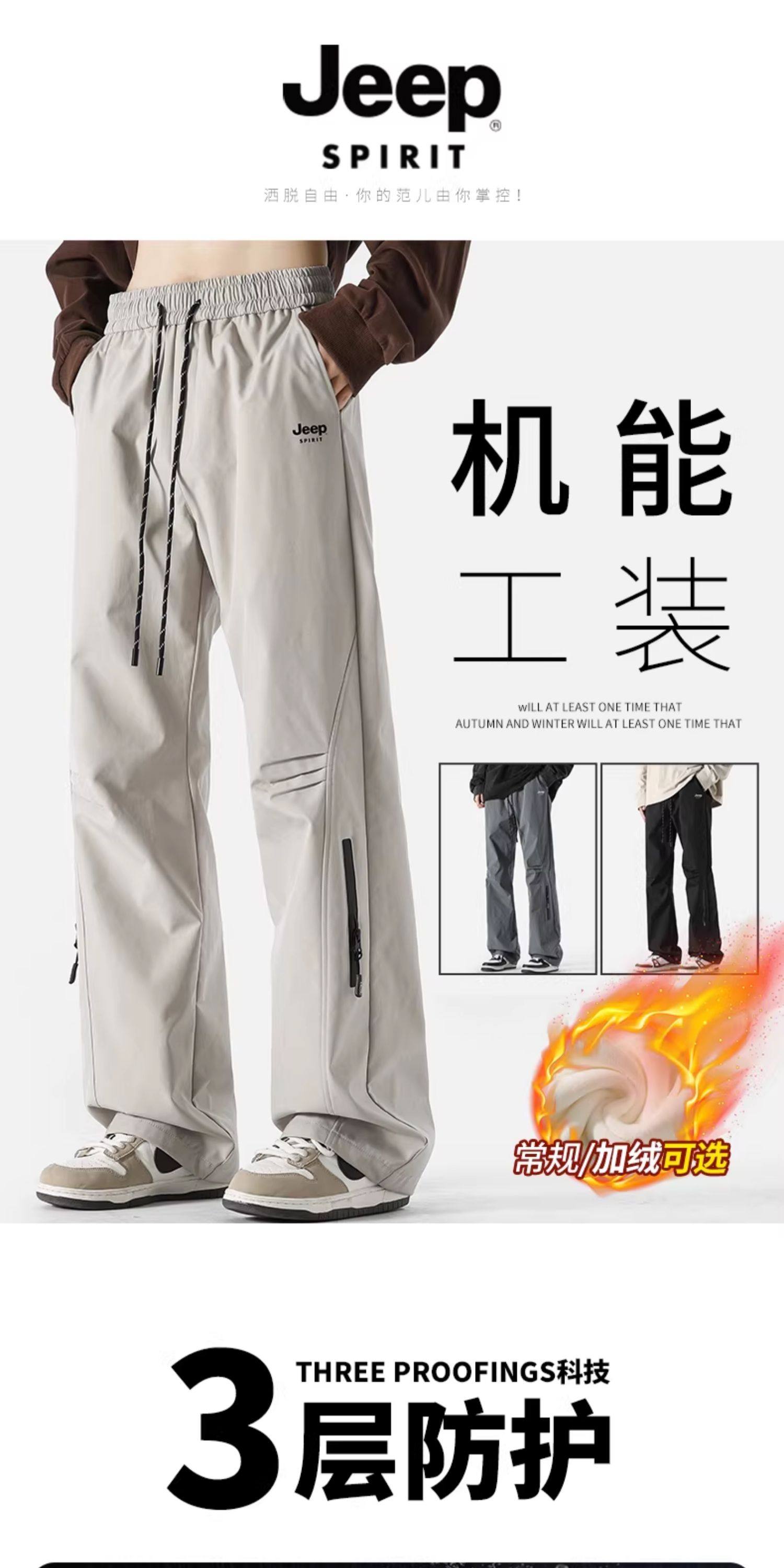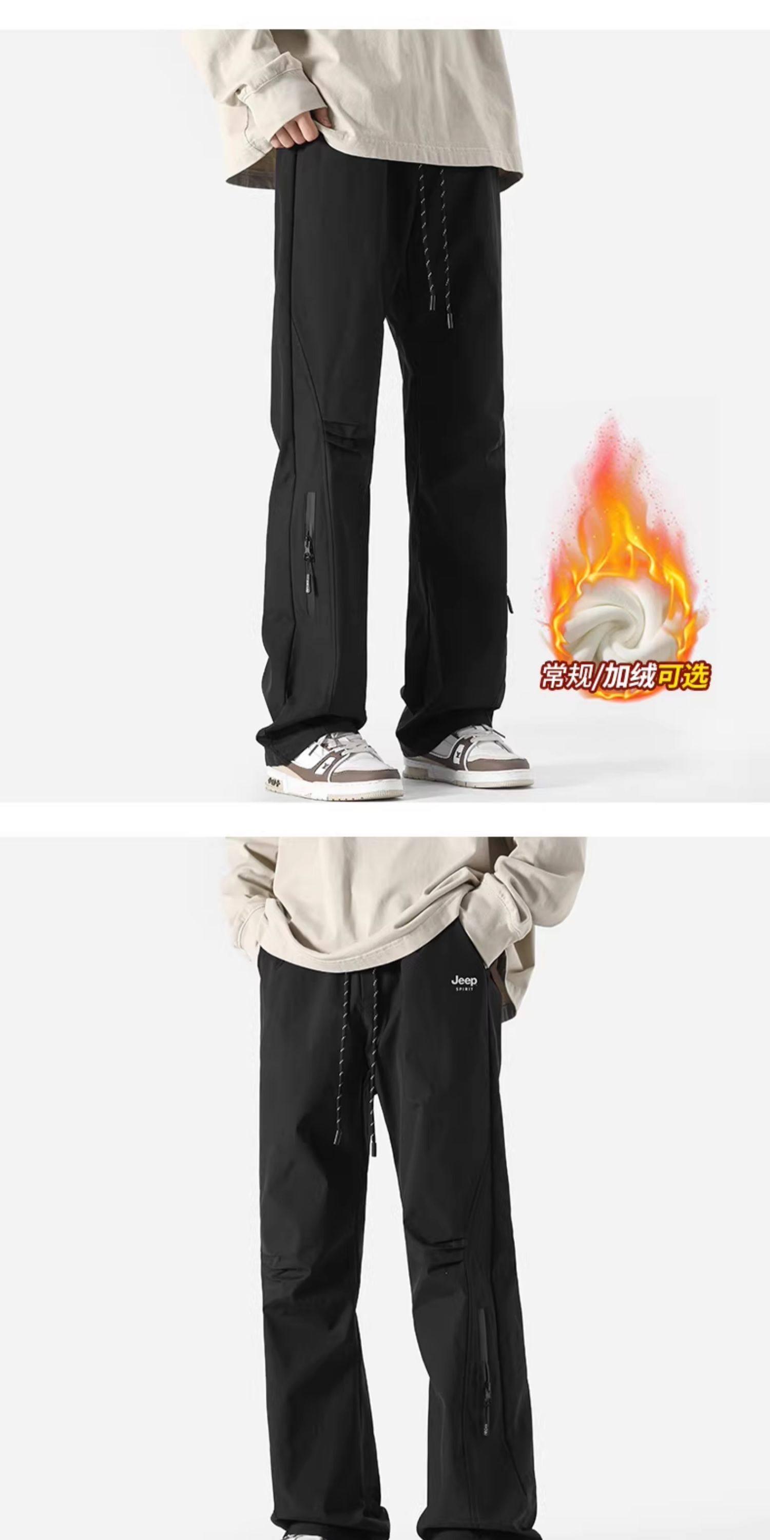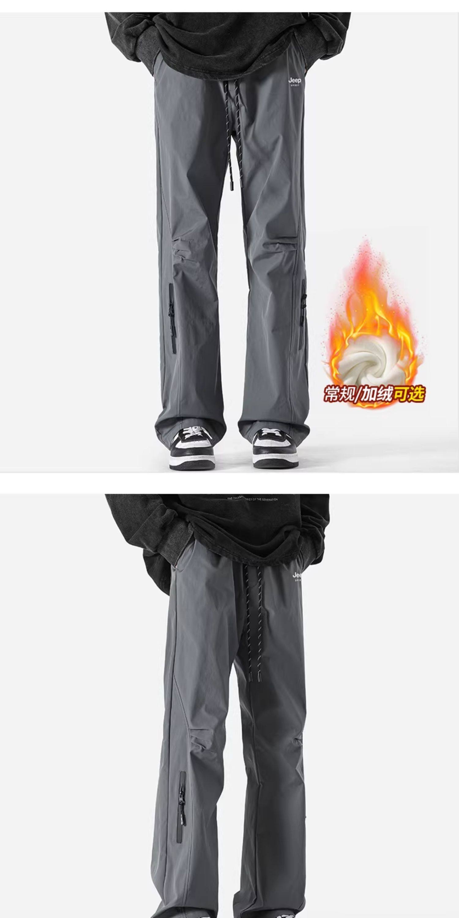 Jeep Tactical Pants for Men, Winter Fleece-Lined New Style Work Pants, Thickened Windproof Men's Pants, Straight-Leg Men's Clothing