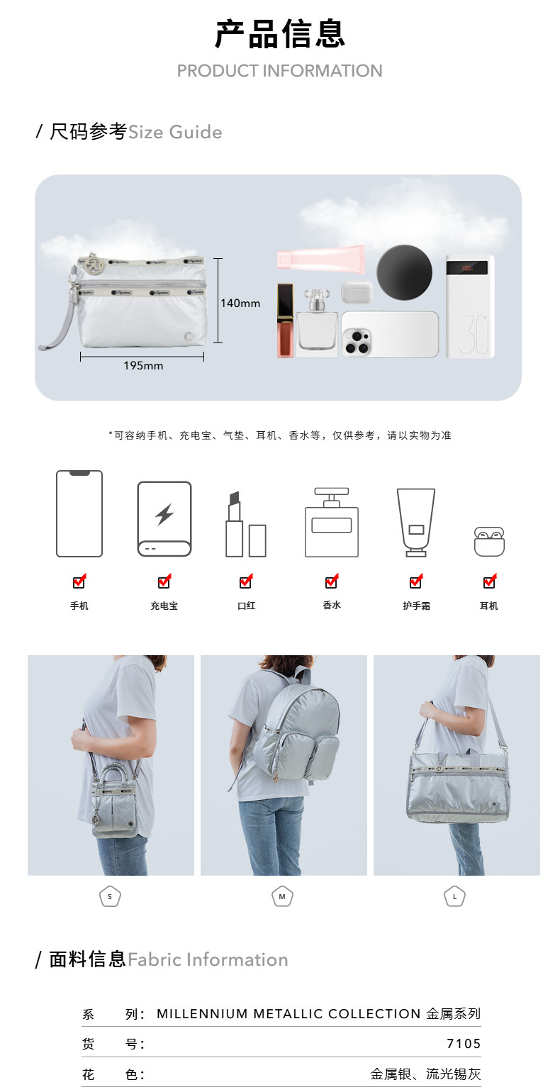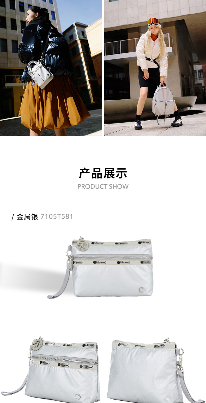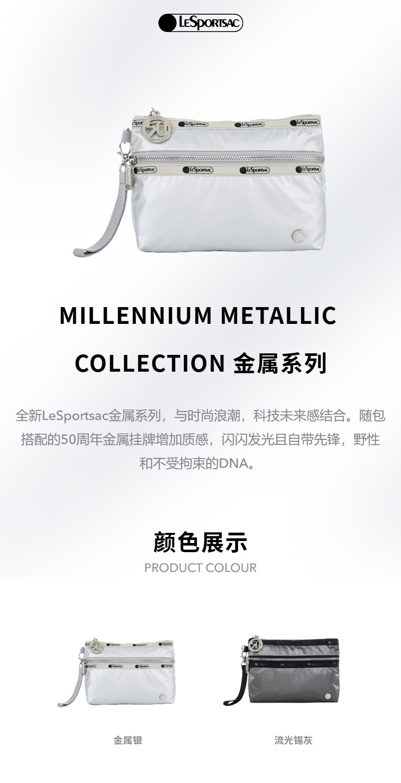 Lesportsac New Metal Series Fashionable High-End Modern Handbag Envelope Bag Clutch Bag for Women