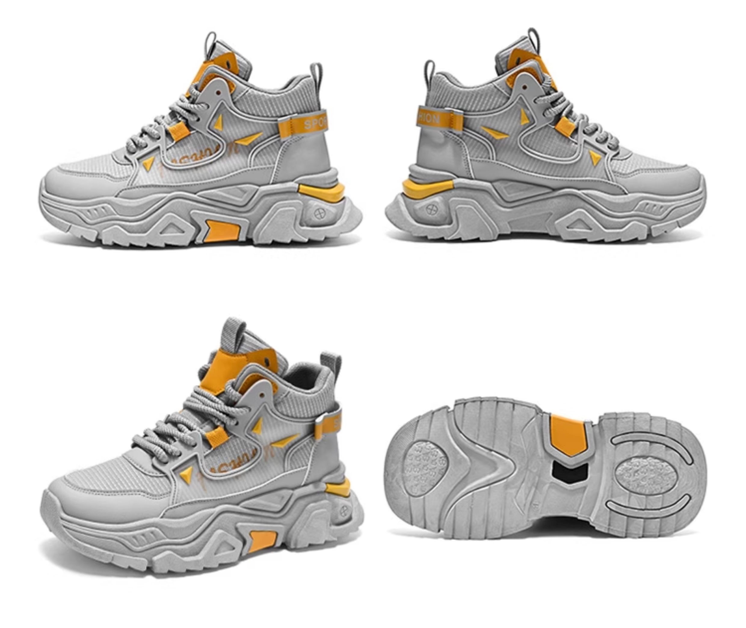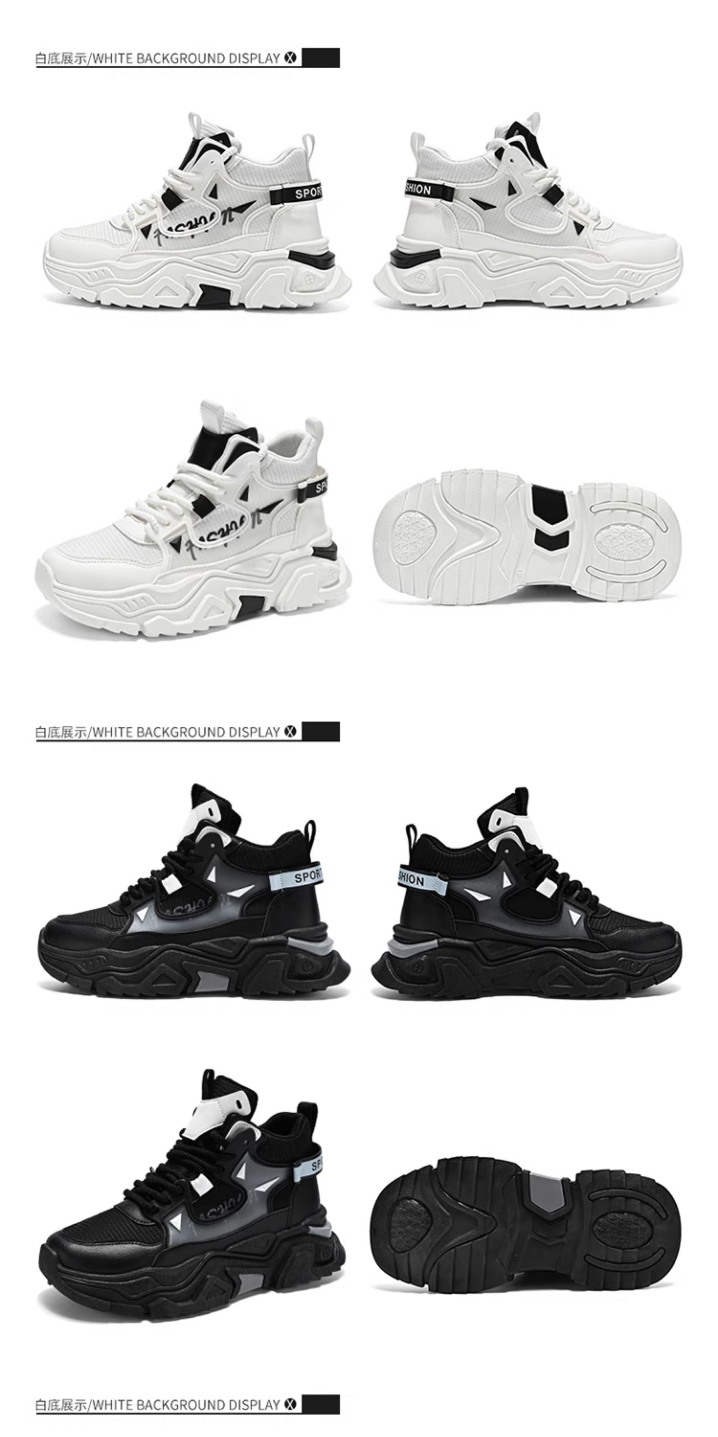 2025 Spring New Thick-Soled Height-Increasing Dad Shoes for Men, 12cm Mesh Breathable Inner Height-Increasing Shoes, High-Top White Sneakers
