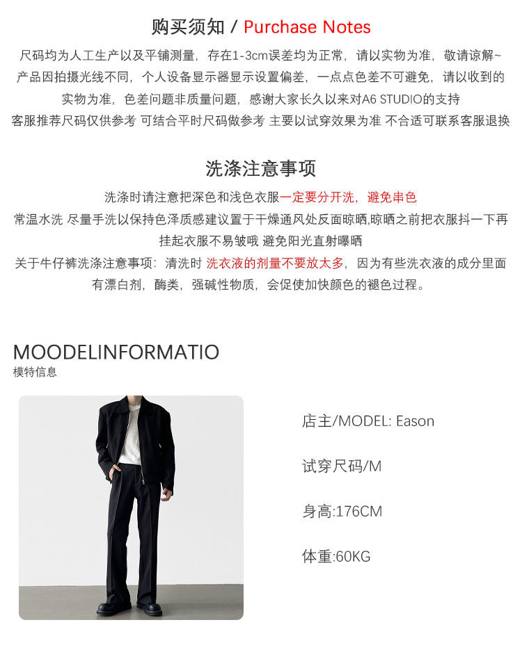 A6 Studio Autumn and Winter Black Straight-Leg Flared Dress Pants for Men with a Draping Feel, High-End Casual Commuting Suit Pants for Men