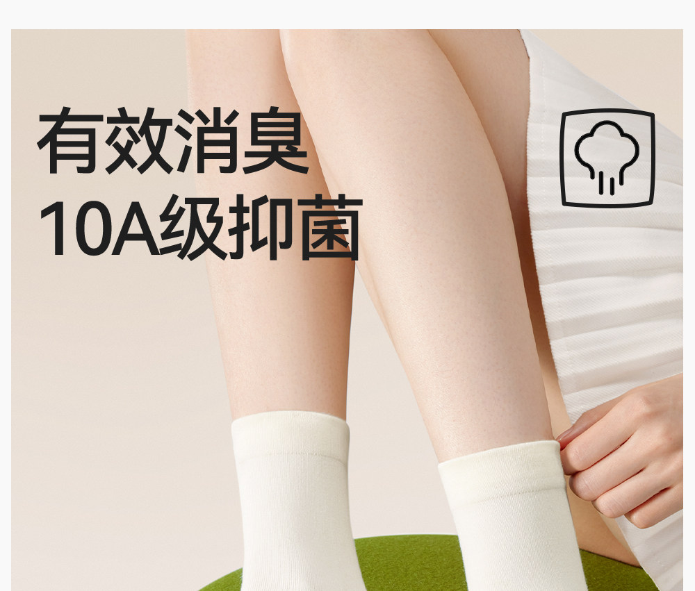 Camellia Deodorant 100% Cotton Socks for Women, Pure Cotton Mid-Calf Socks, Spring Thin Style, Antibacterial and Deodorant, Postpartum Slouch Socks