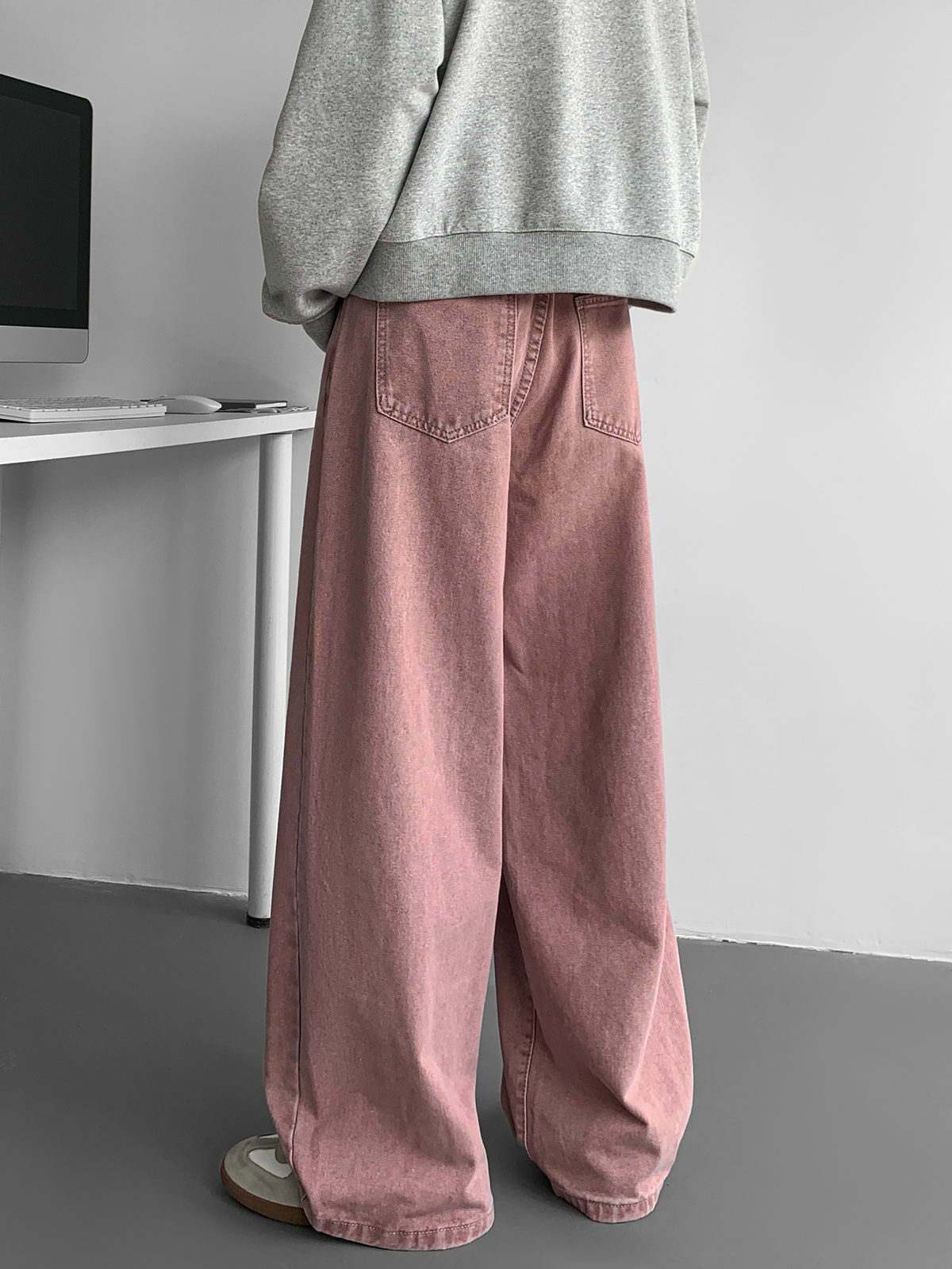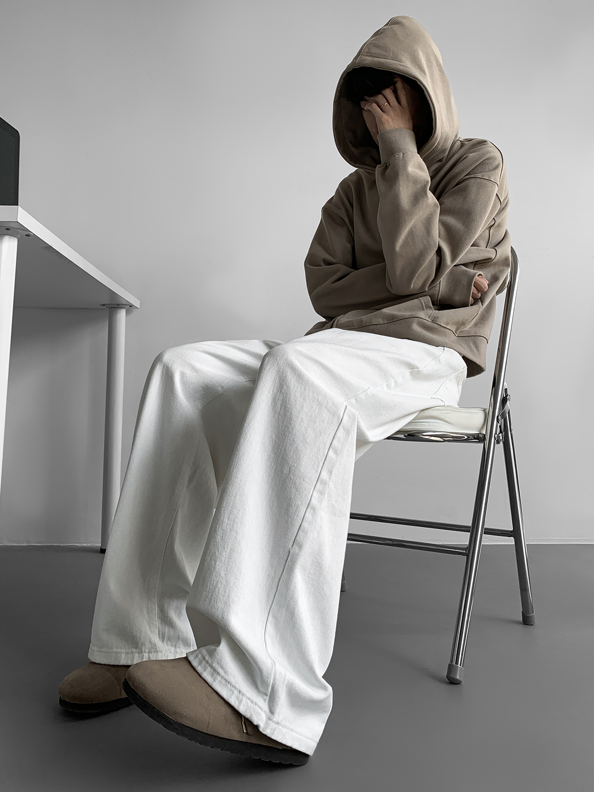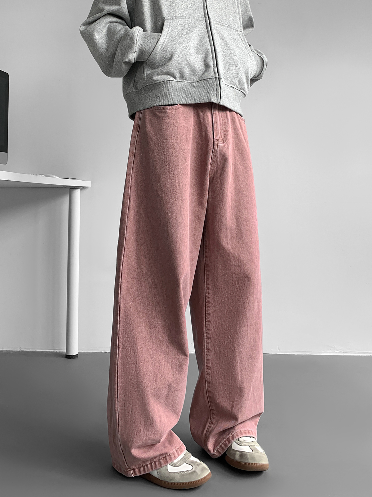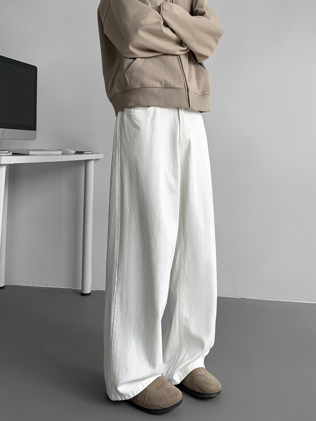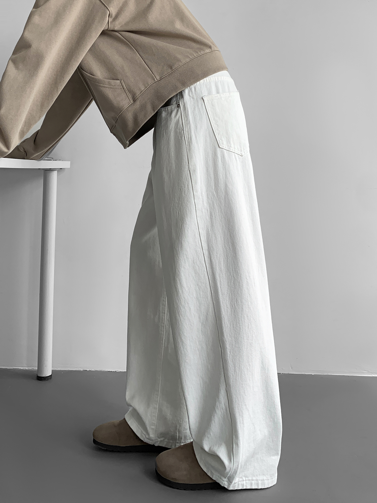 American-Style Heavyweight Jeans for Men, Autumn White Trendy Brand Wide-Leg Pants, Vintage Youth Sports Floor-Length Pants