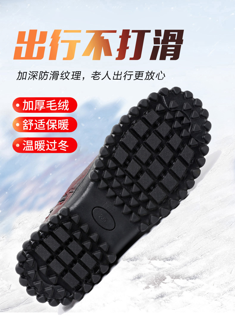 Winter Thickened Warm Pure Wool Mother's Shoes Old Beijing Women's Cotton Shoes Non-Slip Soft Sole Middle-Aged and Elderly Women's Snow Boots