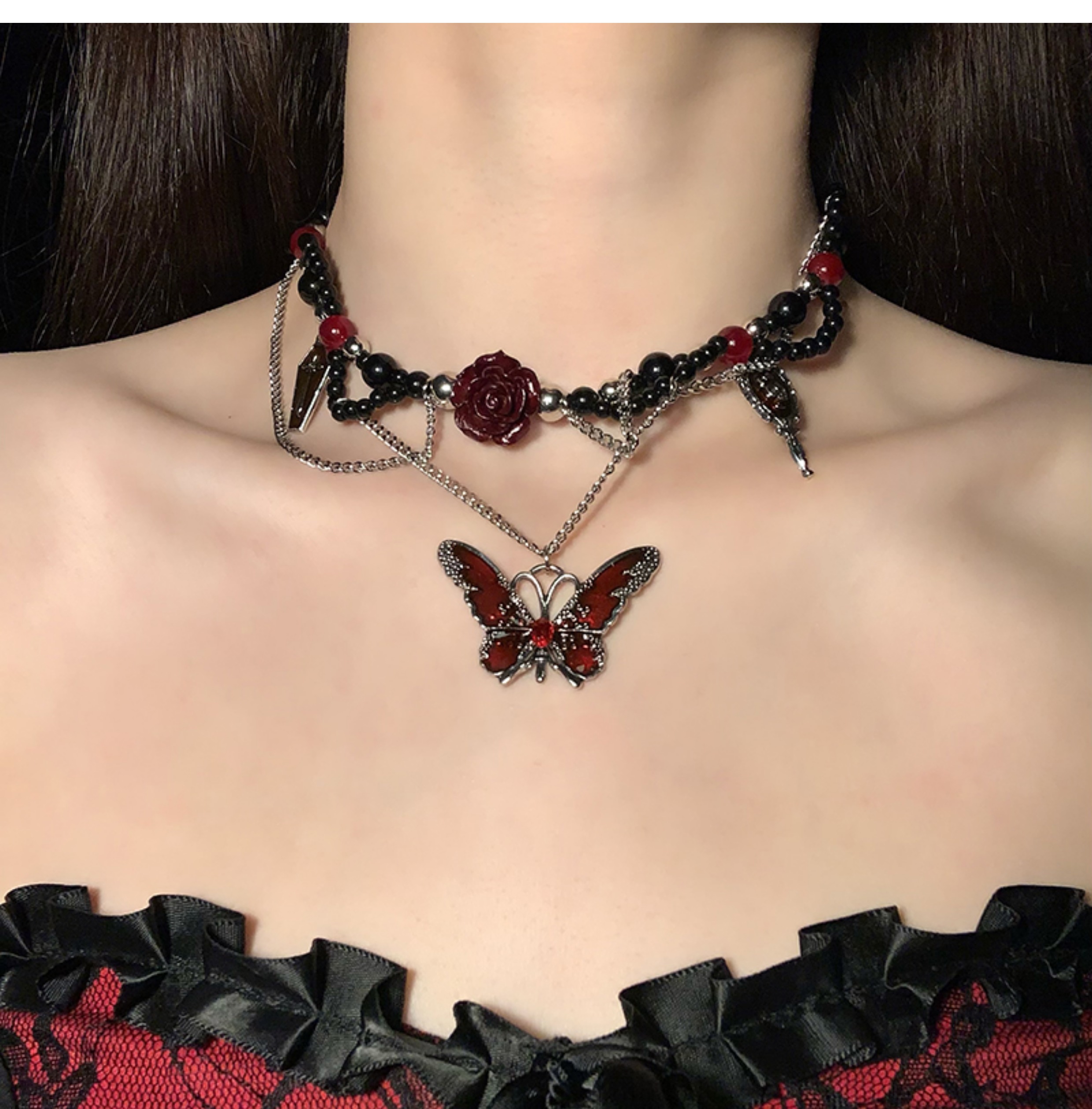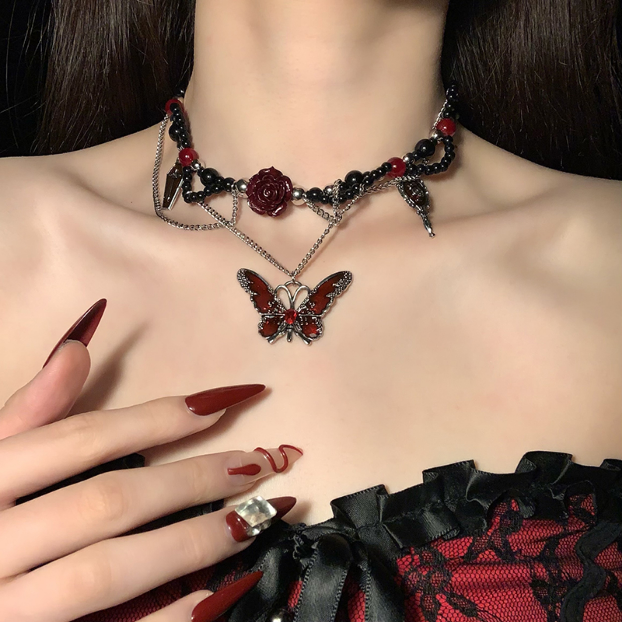 Hey Tao Halloween Dark Style Scarlet Butterfly Choker Necklace Retro Gothic Punk Style Hot Girl Choker