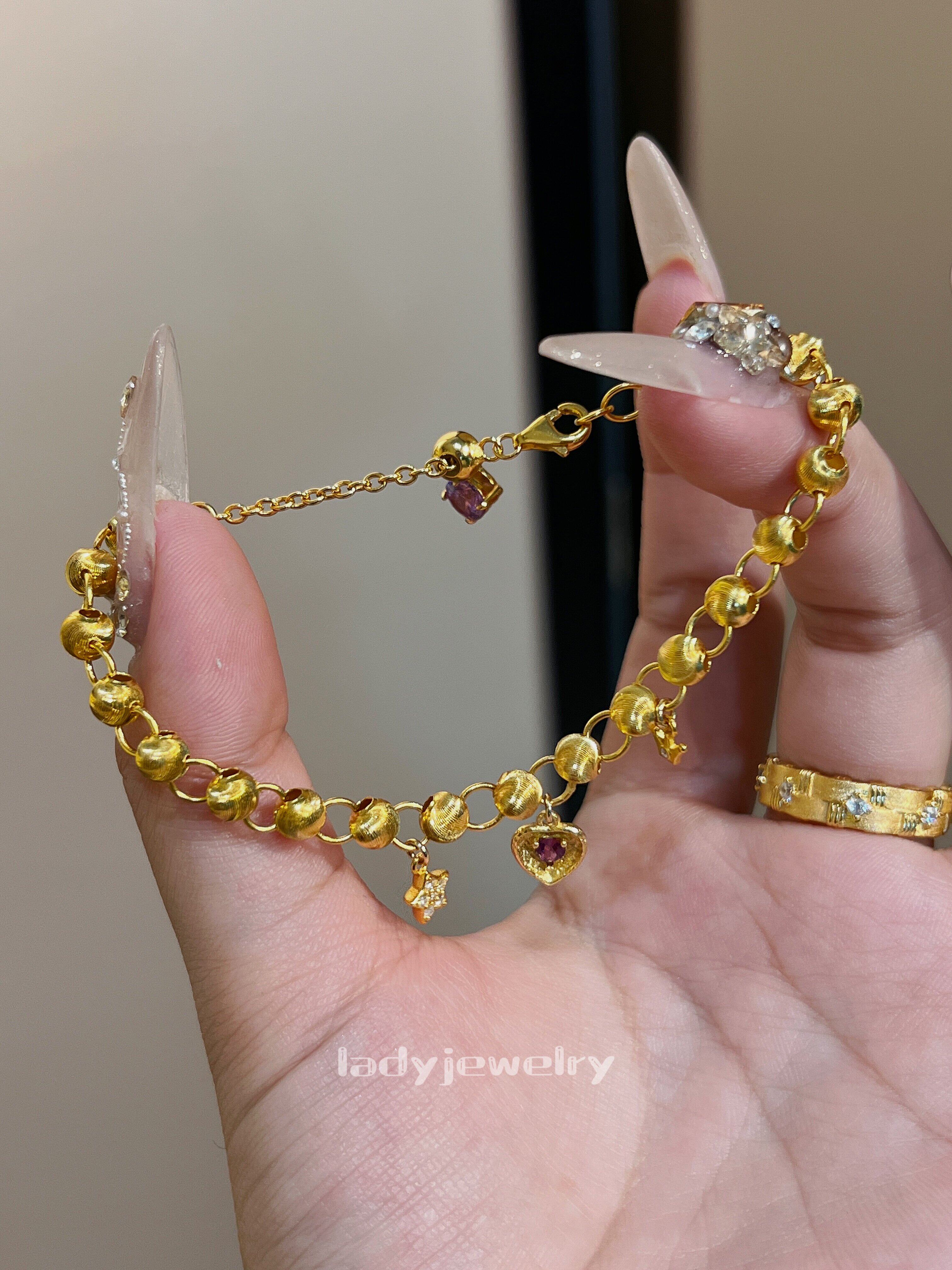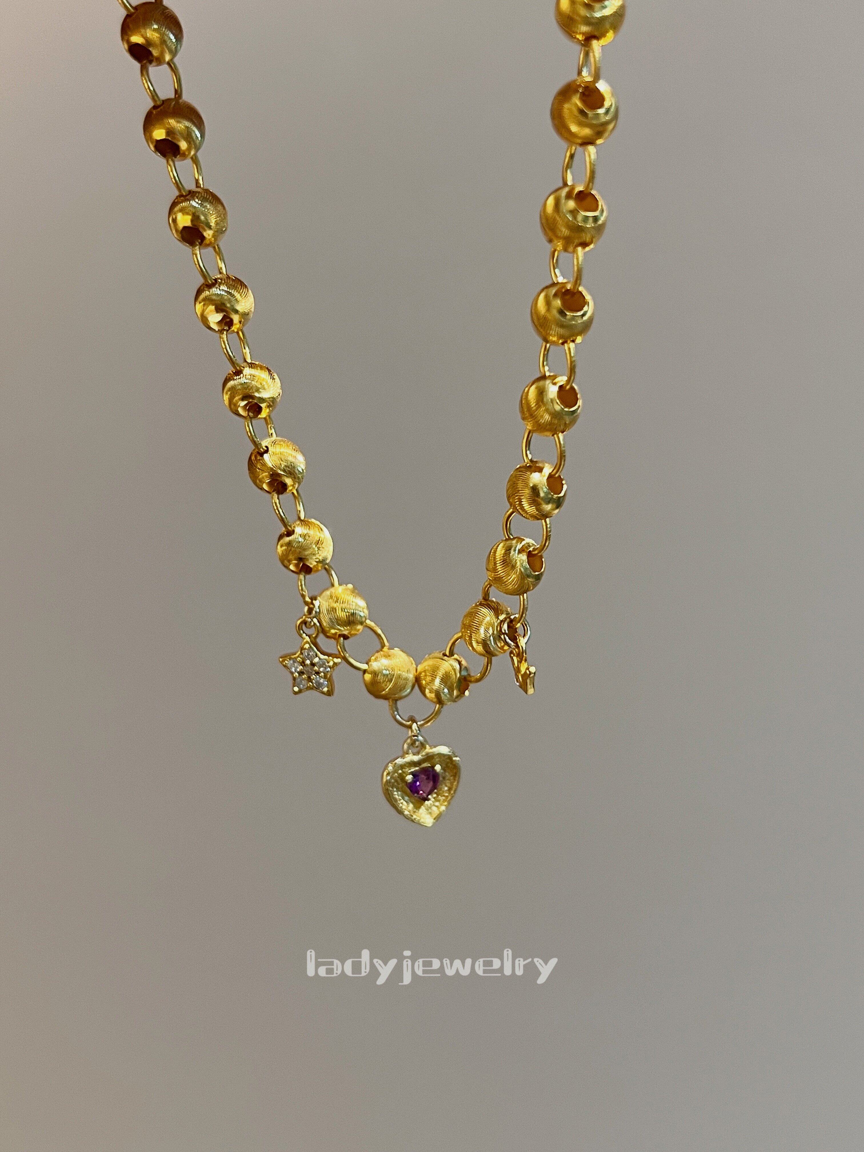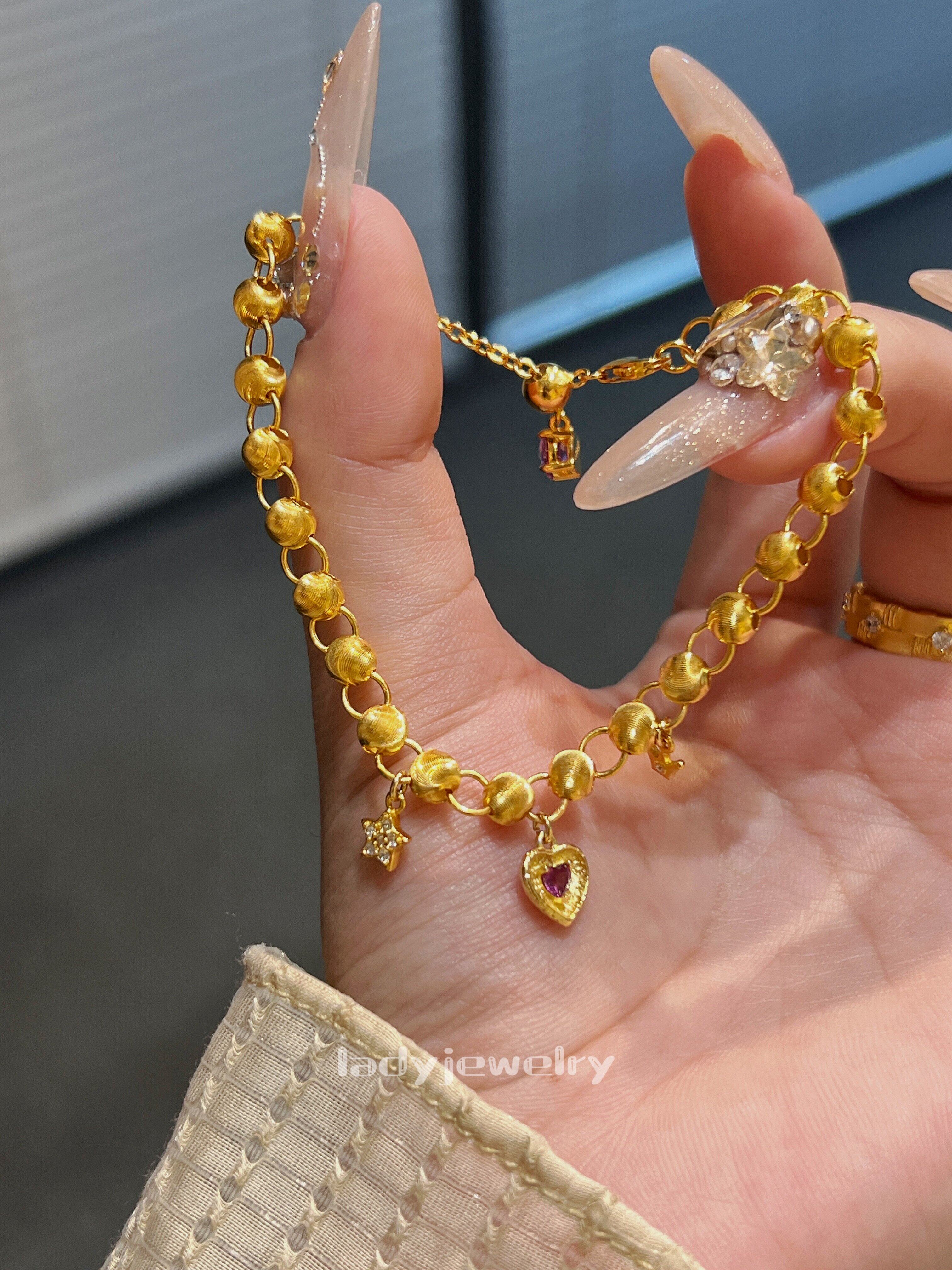 Lady Haute Couture [Star Purple Diamond Heart] Cat's Eye Chain S925 Silver Gold-Plated Bracelet