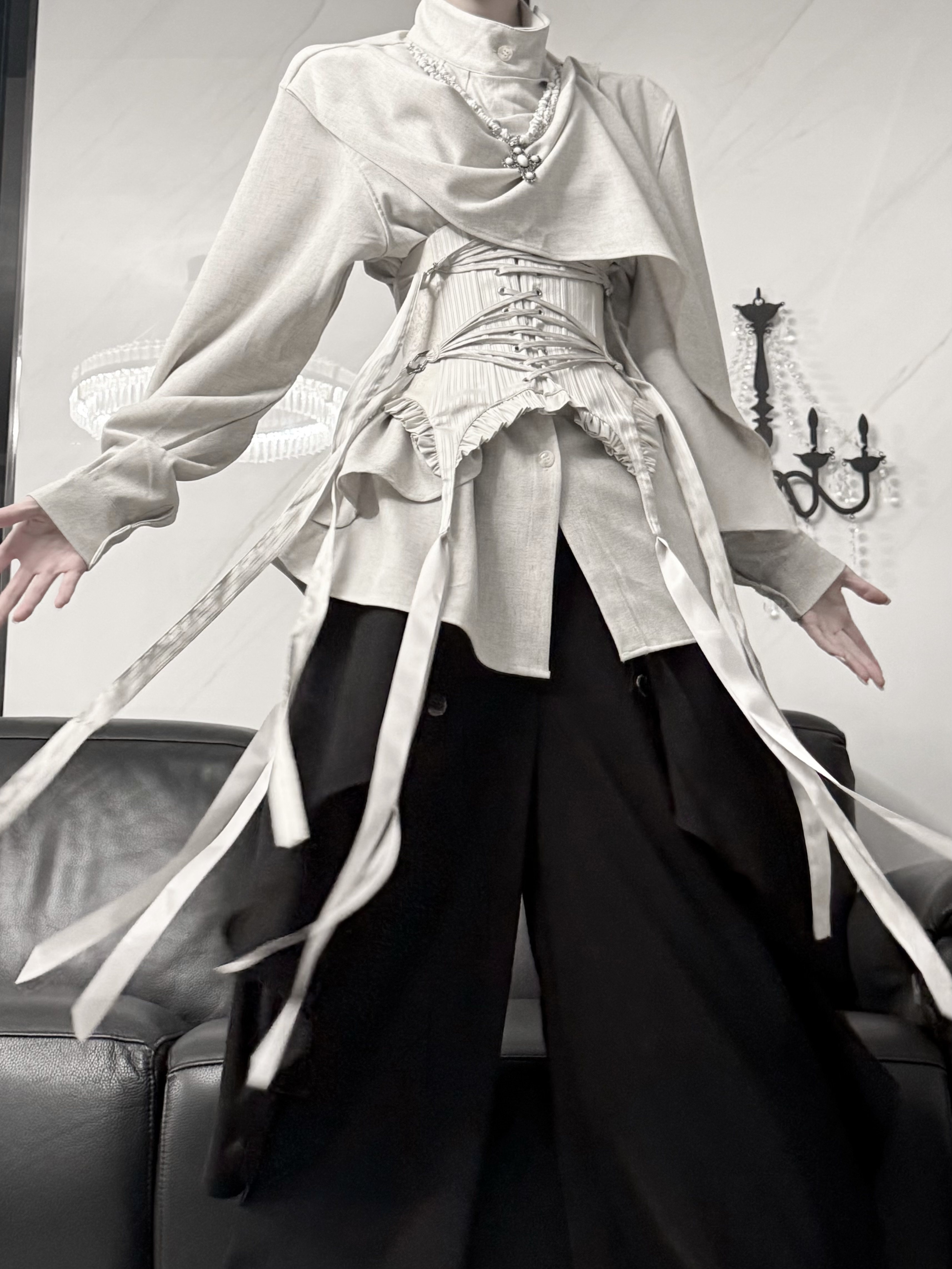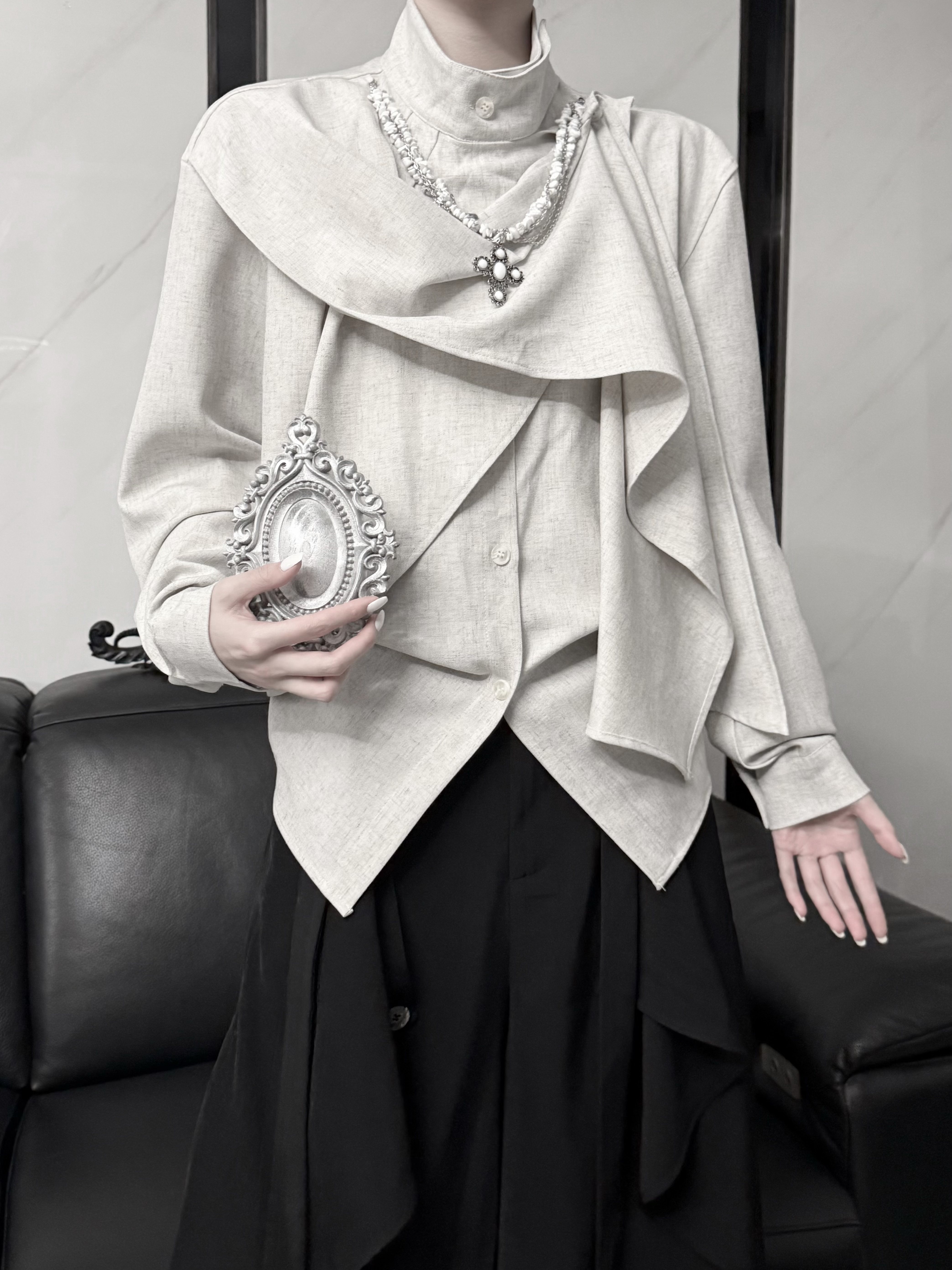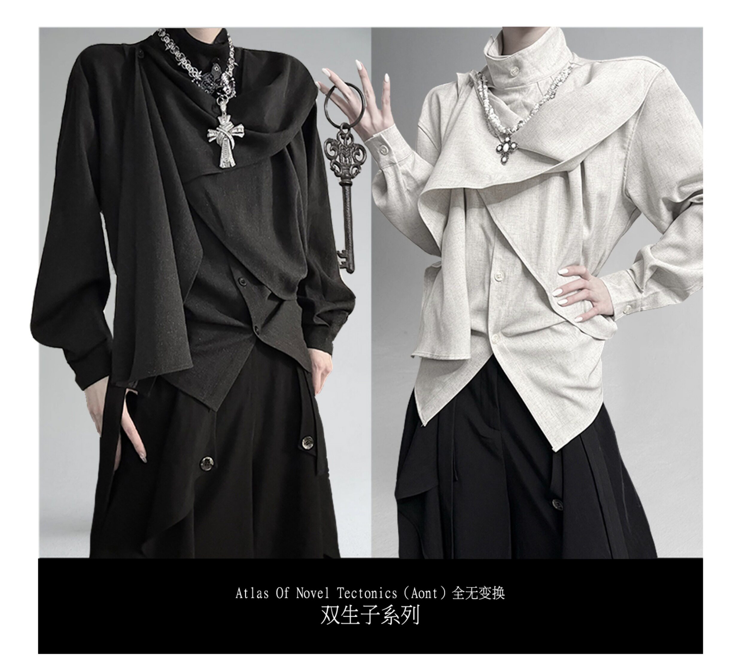 Aont【Twin Series】Original Retro High-End Shirt with Irregular Splicing Design, Niche Shirt