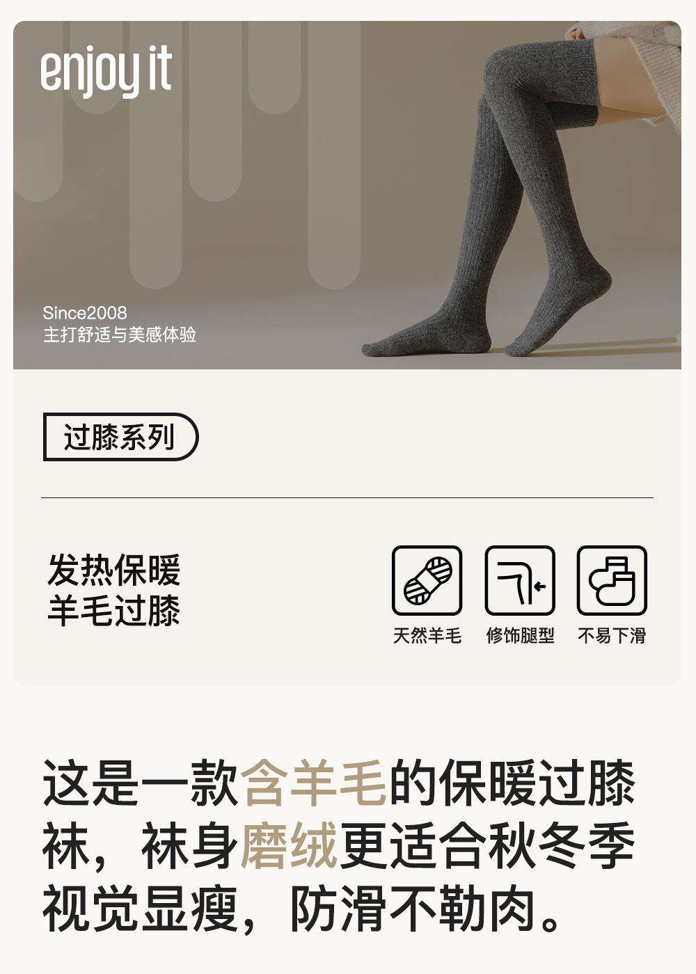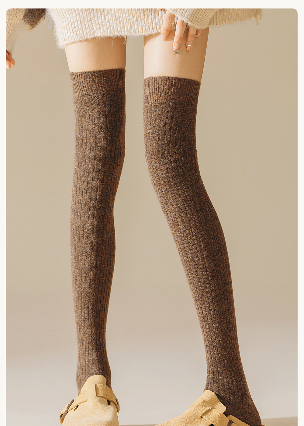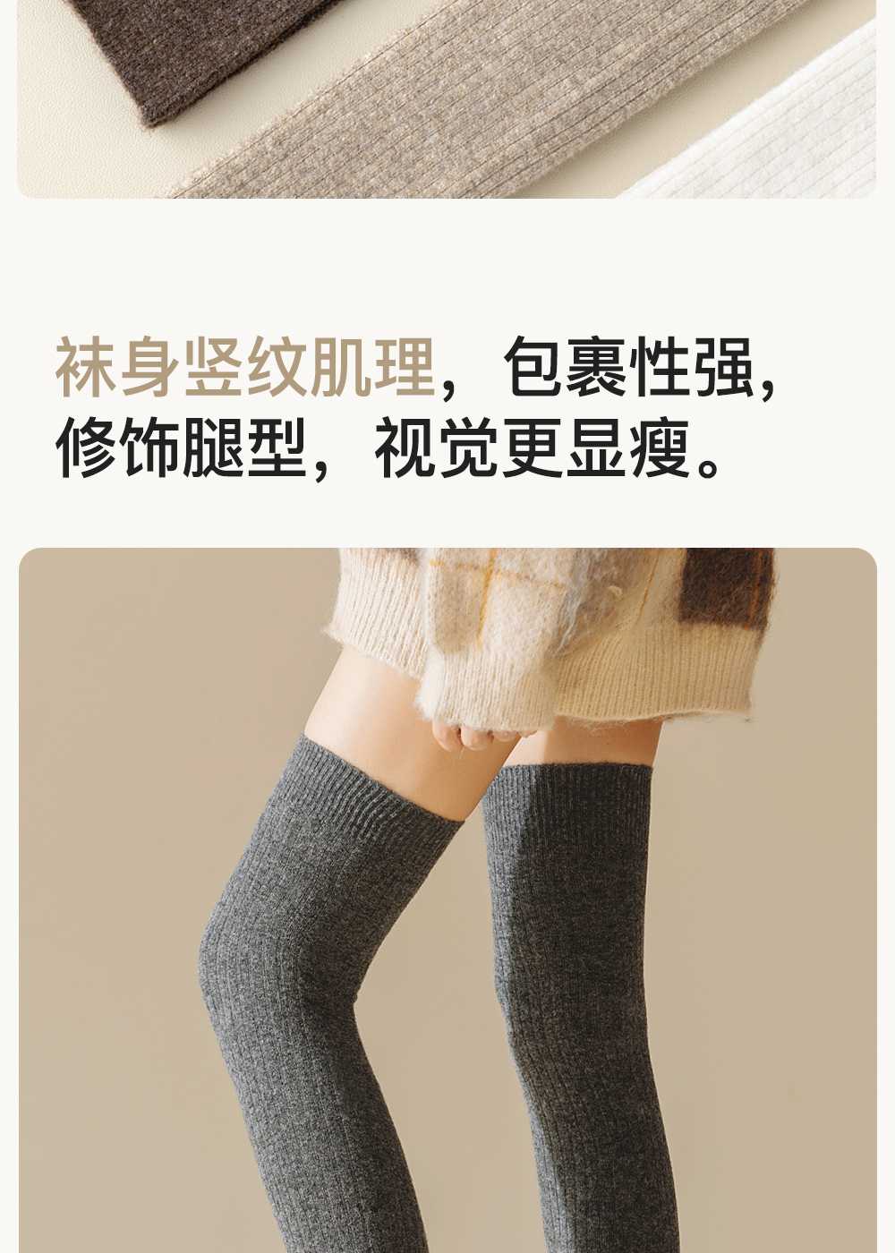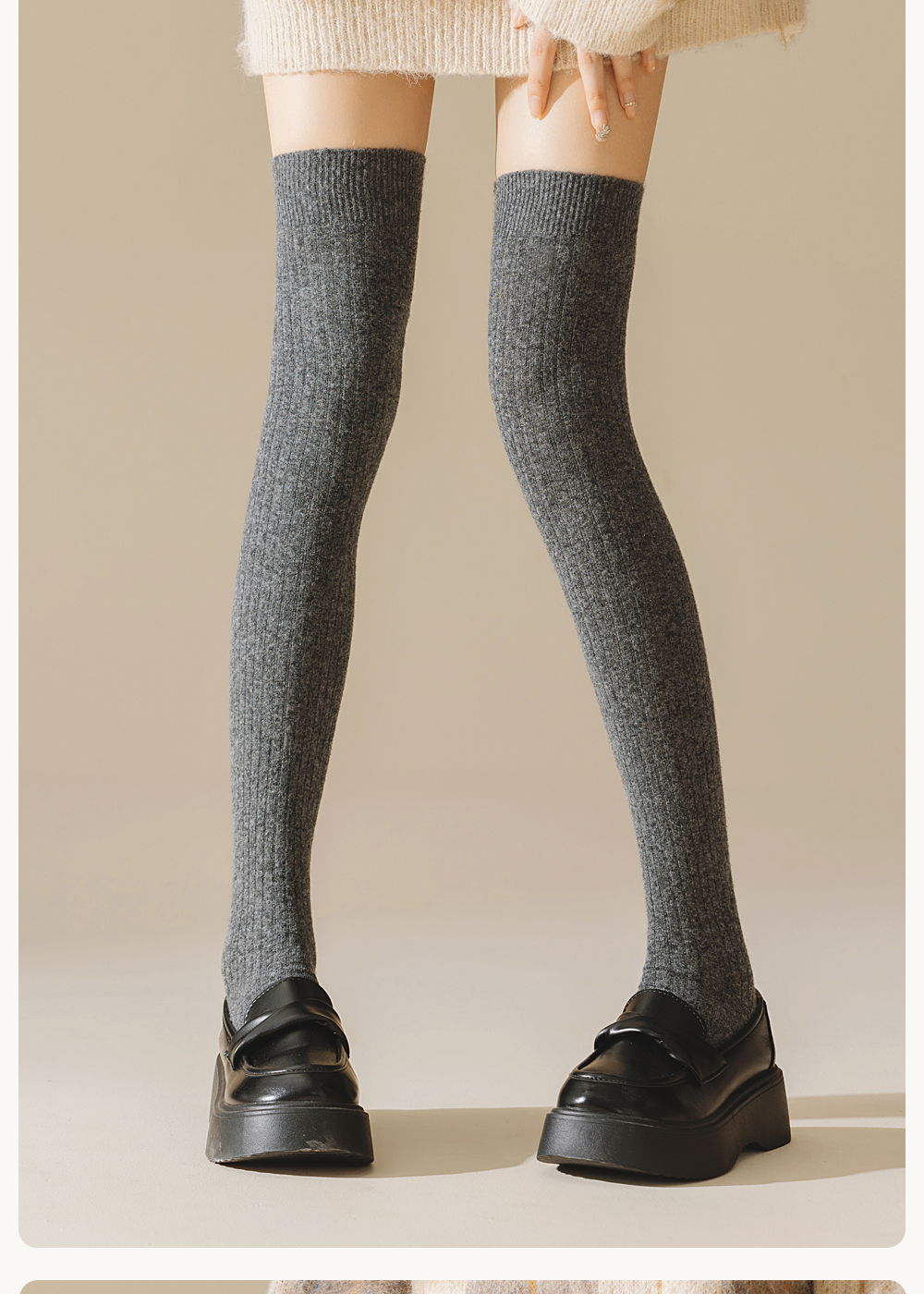 Enjoy It Thermal Over-The-Knee Socks for Women, Autumn and Winter Long Wool Warm Socks, Vertical Stripes, Slimming High Thigh Socks