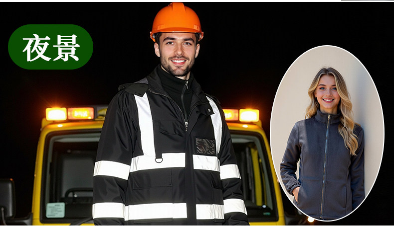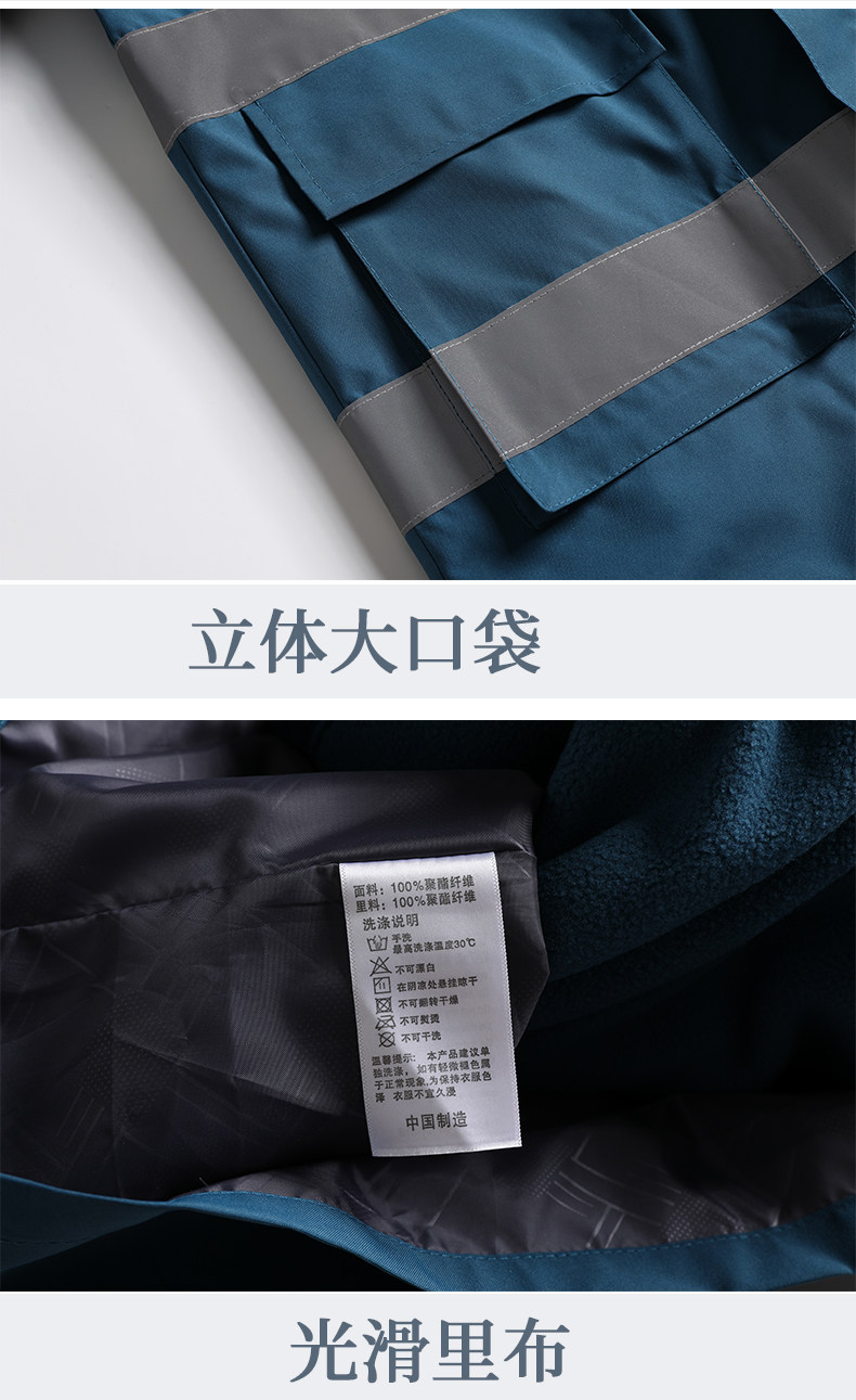 Autumn and Winter Reflective Warm and Cold-Proof Work Clothes with Removable Liner, Three-In-One Large Size Cotton Clothing # T3024