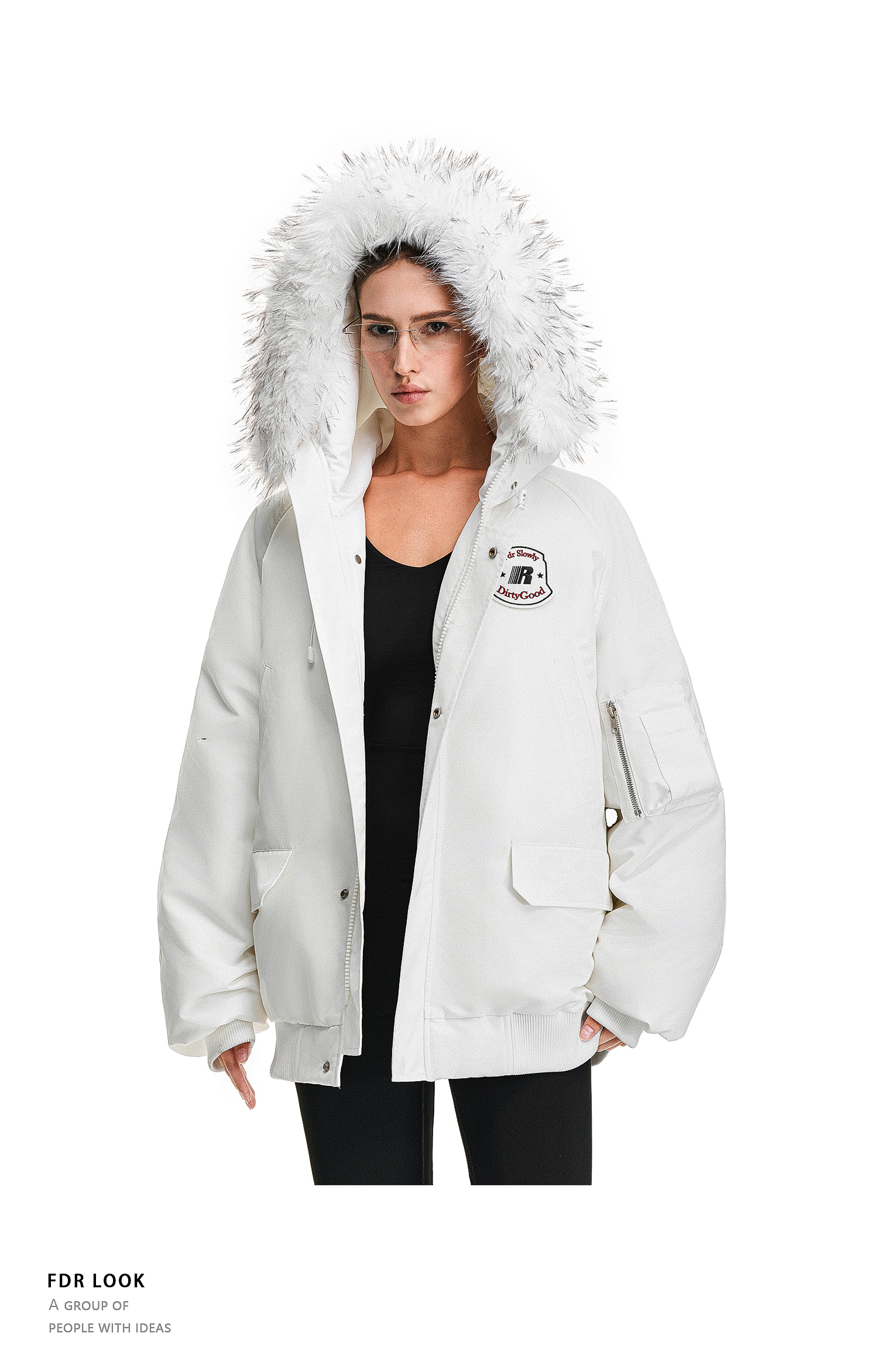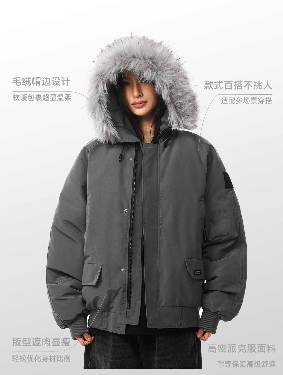 Fdr Official Store American-Style Fur Collar Cotton Coat for Men and Women, Thickened and Warm for Autumn and Winter, Couple's Jacket Parka