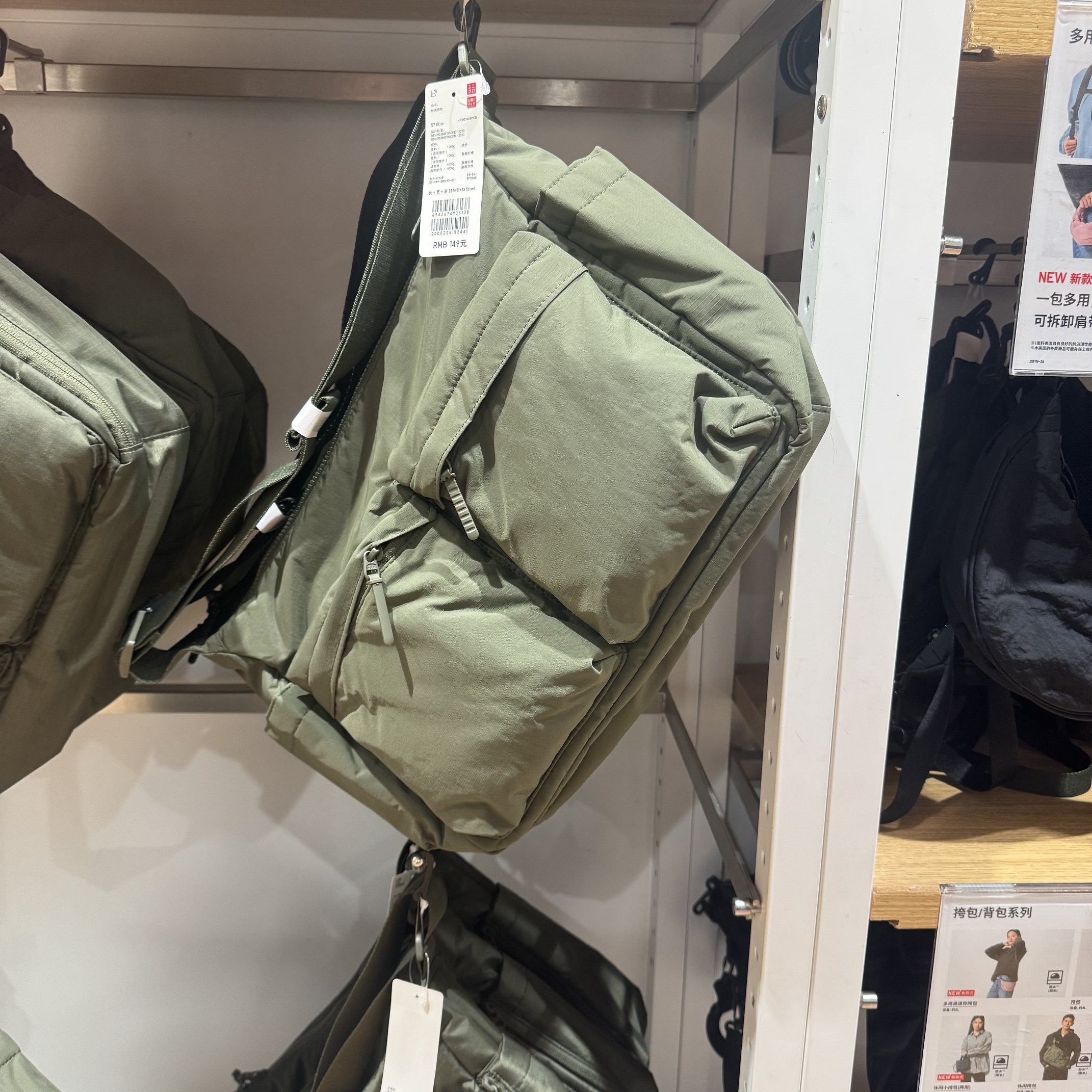 Uniqlo Men's and Women's Casual Crossbody Bag, Shoulder Bag, Water-Repellent Backpack with Adjustable Shoulder Strap, 25 New Models 479281