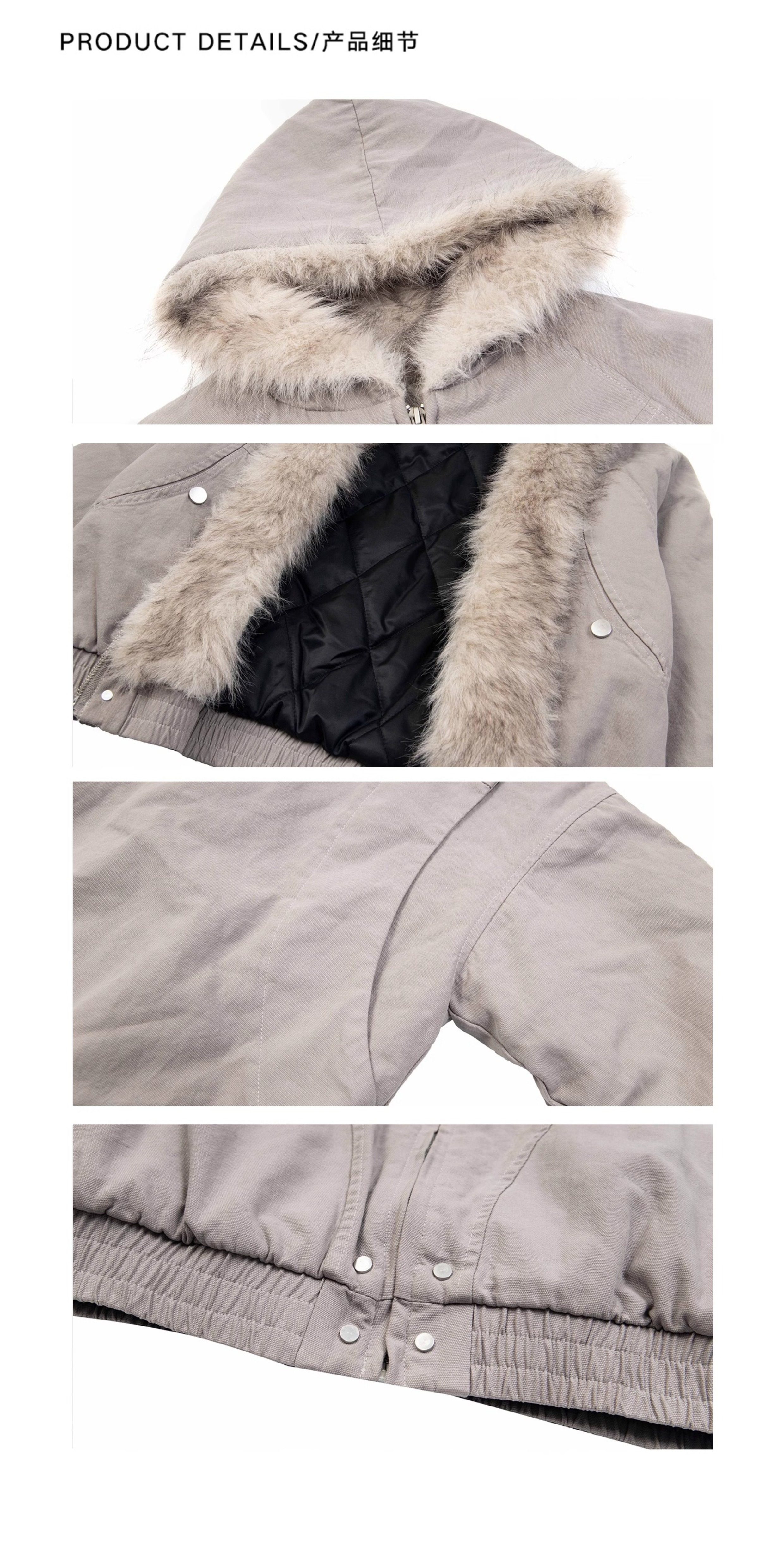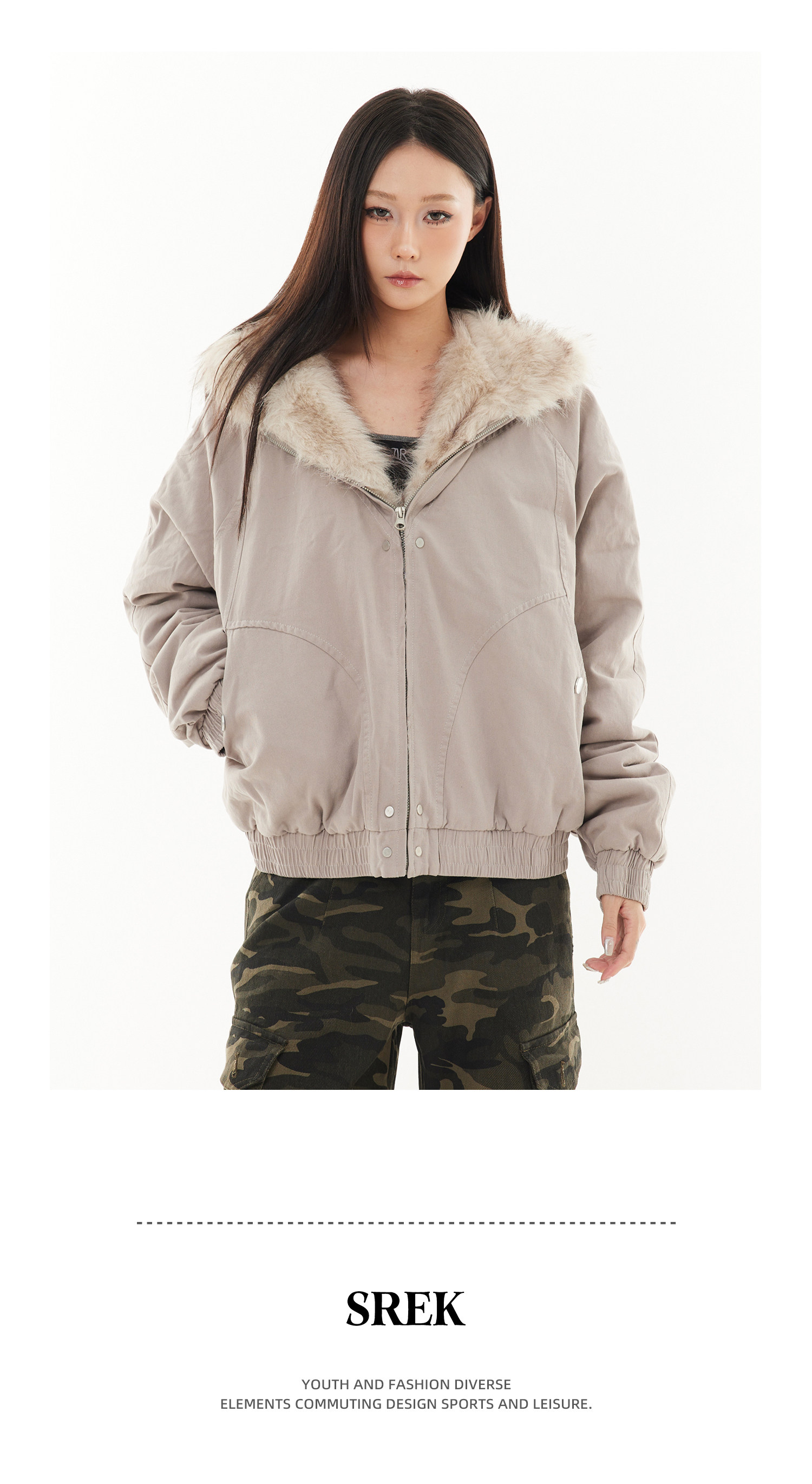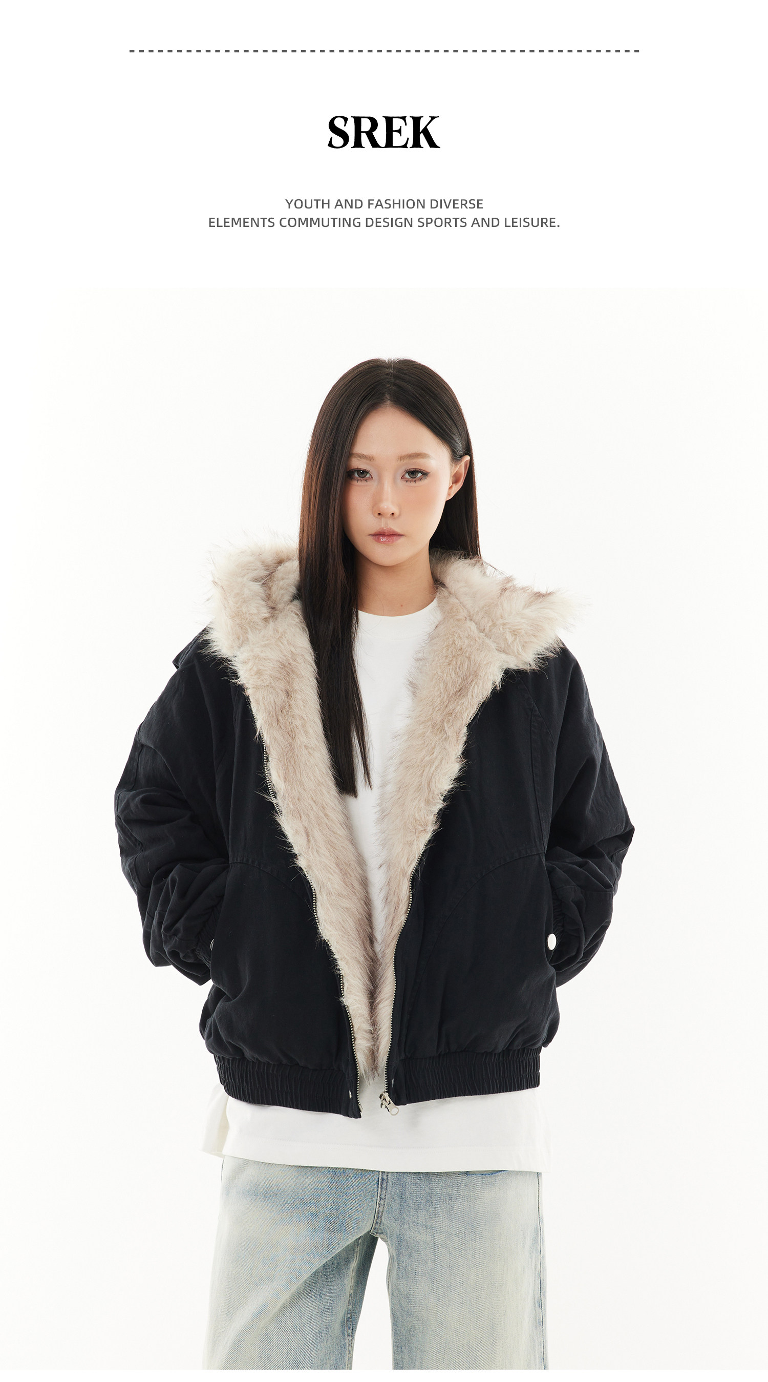 Srek Thickened Plush Collar Cotton Jacket for Women, Autumn and Winter Heavy-Duty Warm Loose-Fitting Couple's Cotton Coat