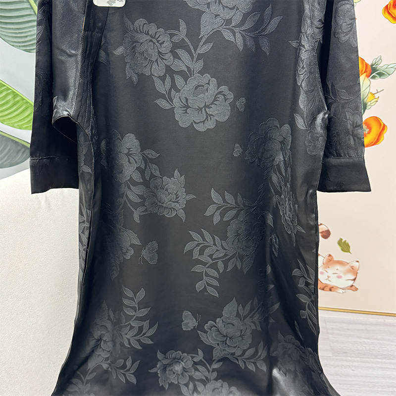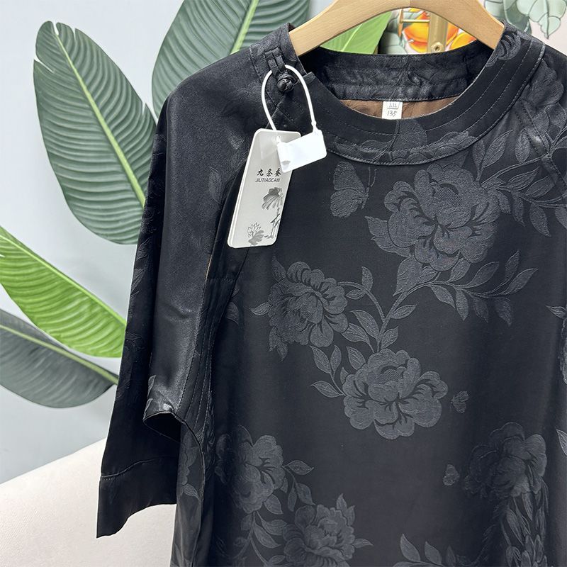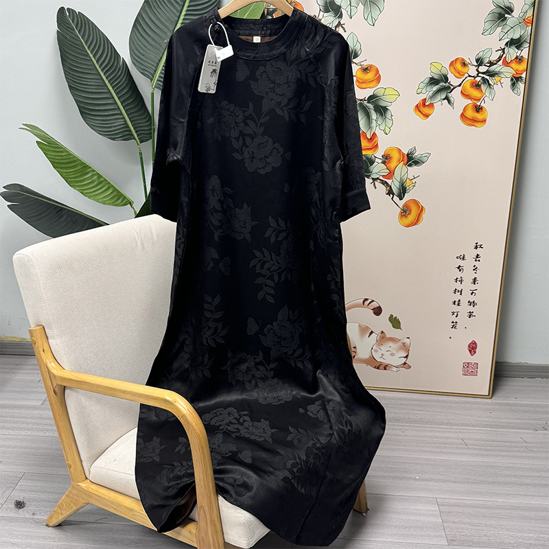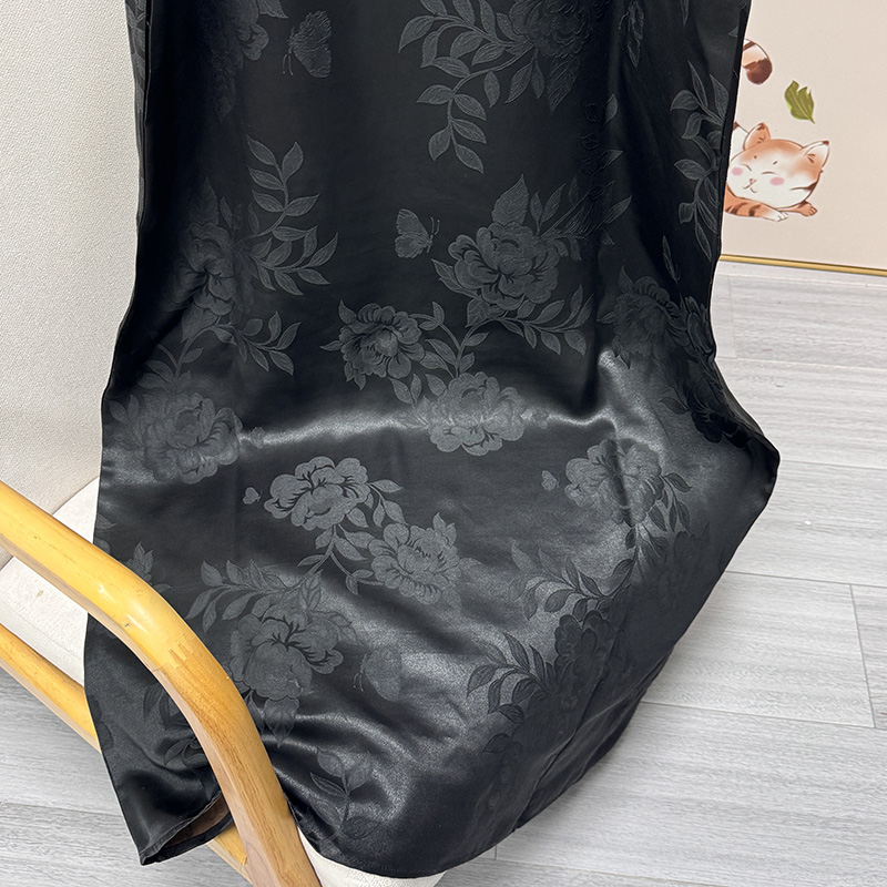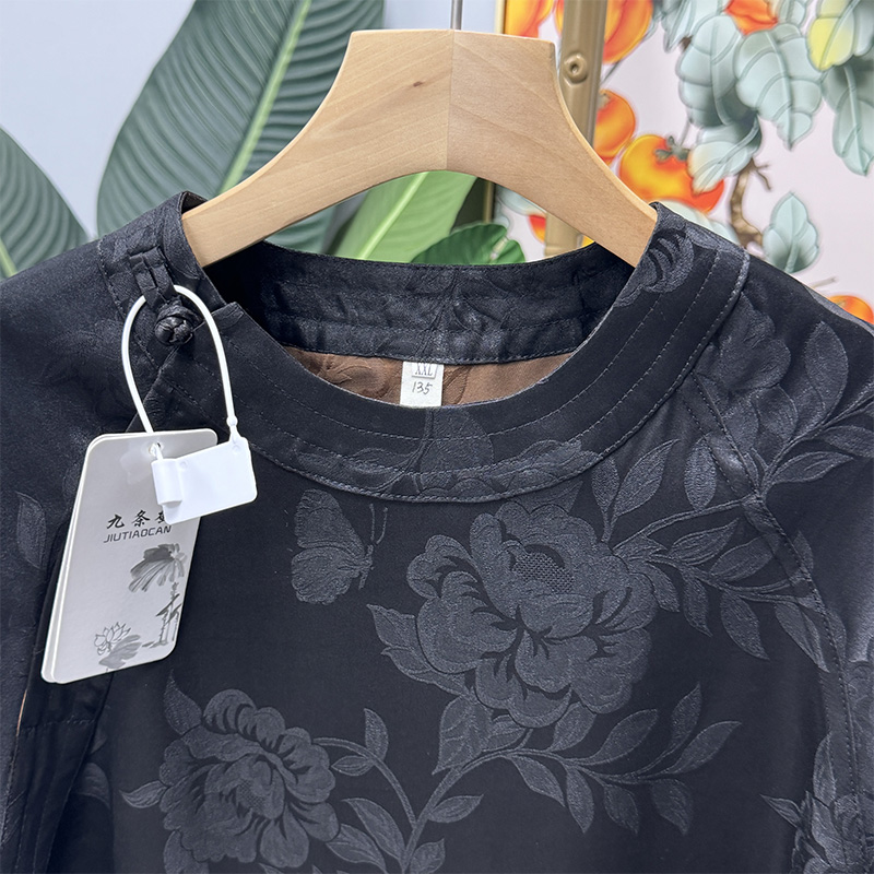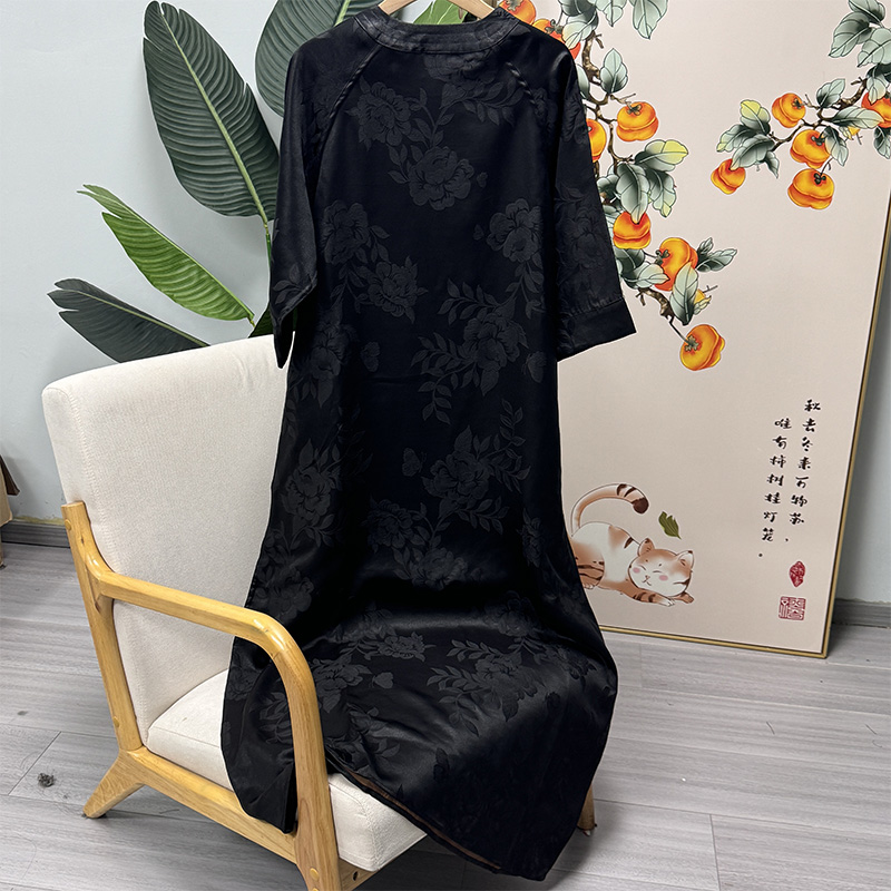 Pre-9Th Generation Silk 100% Mulberry Silk 50% Shunde Old Material Black Ancient Luo Peony Xiangyun Silk Imperial Style Robe