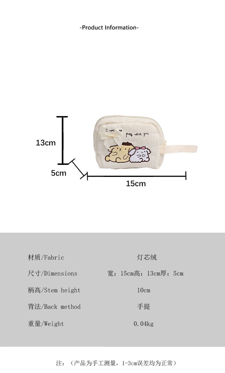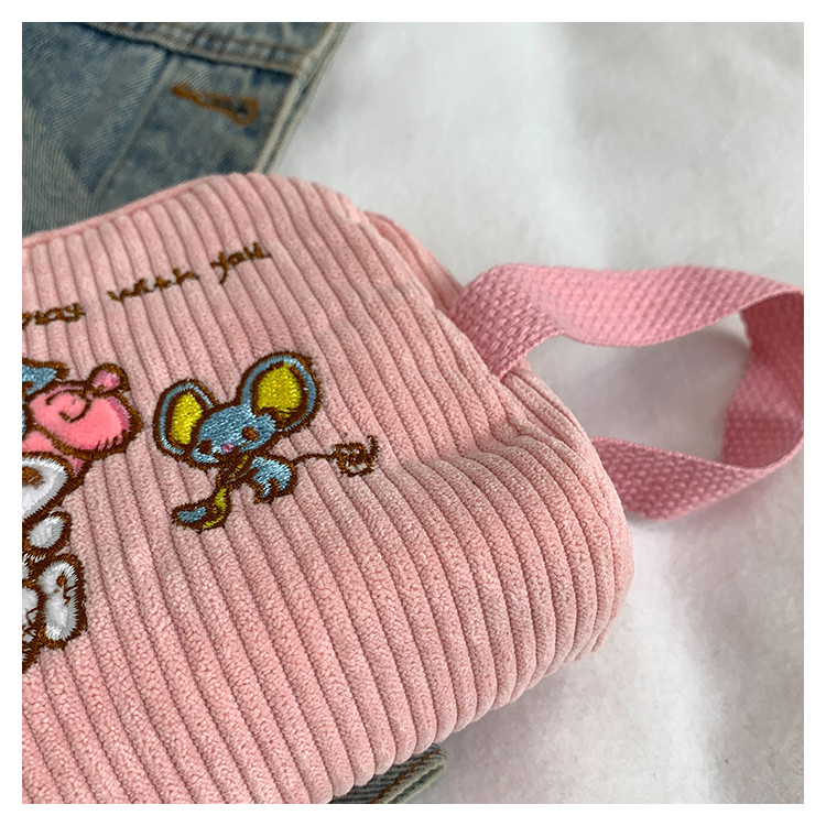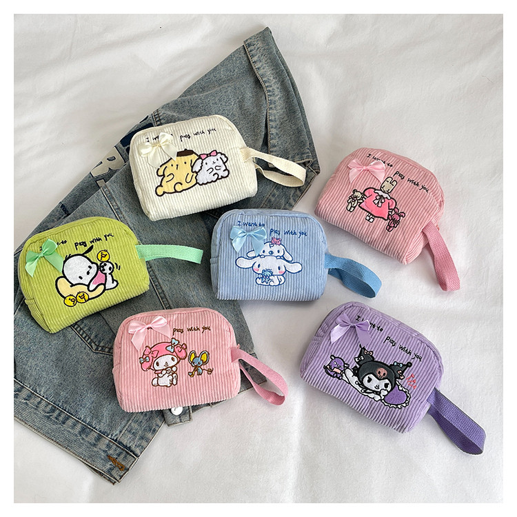 Small and Cute Coin Purse for Girls, Small Cloth Bag, Corduroy Embroidery, Work Bag, Cute Cartoon Wrist Bag