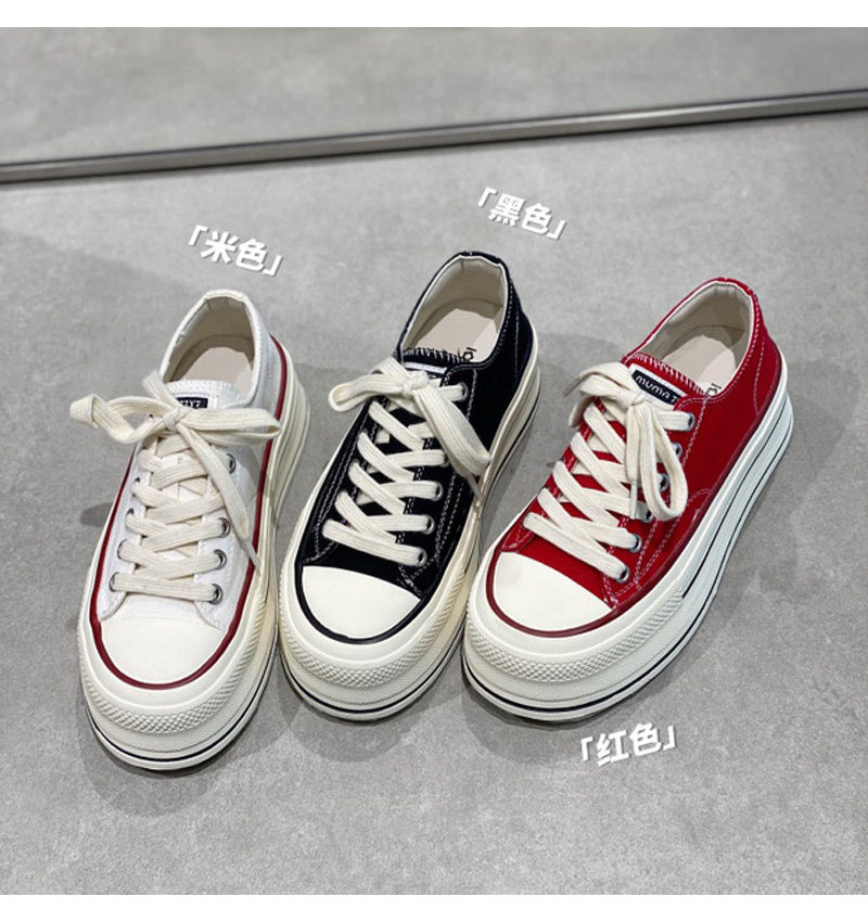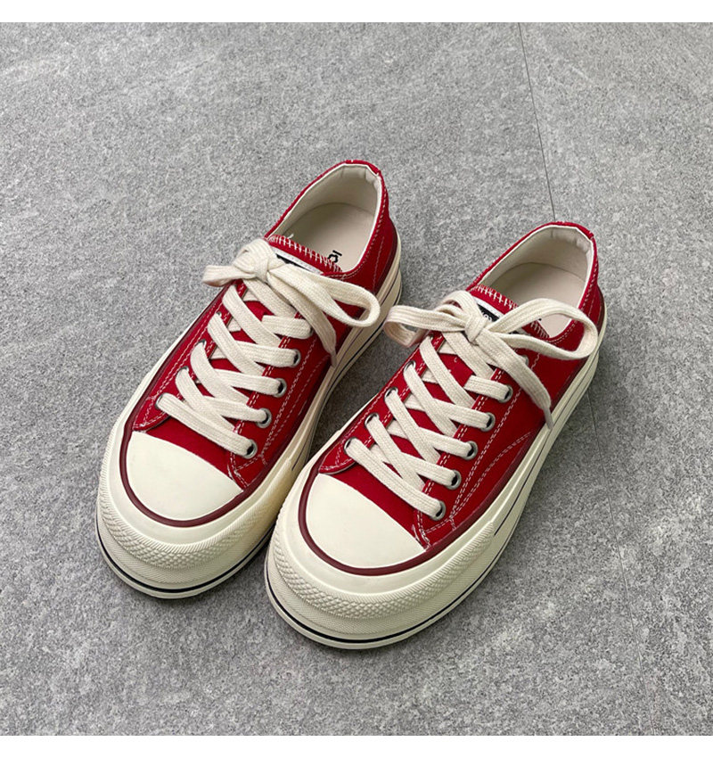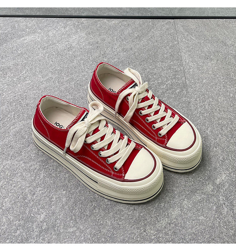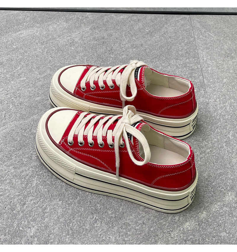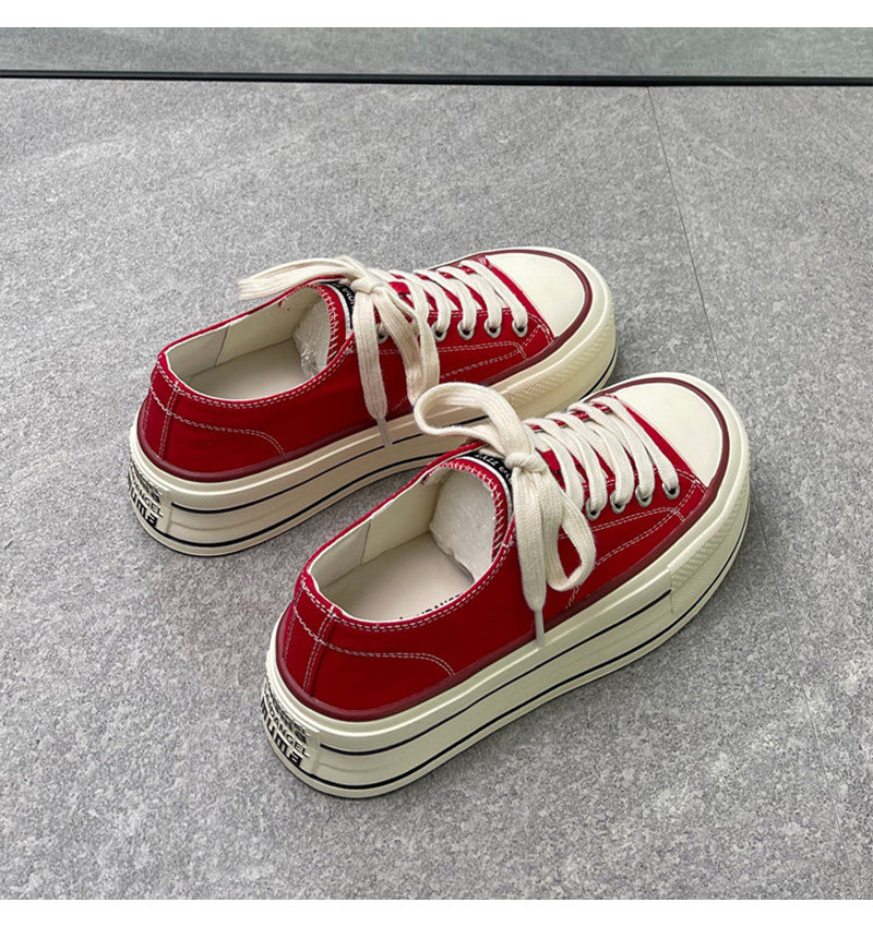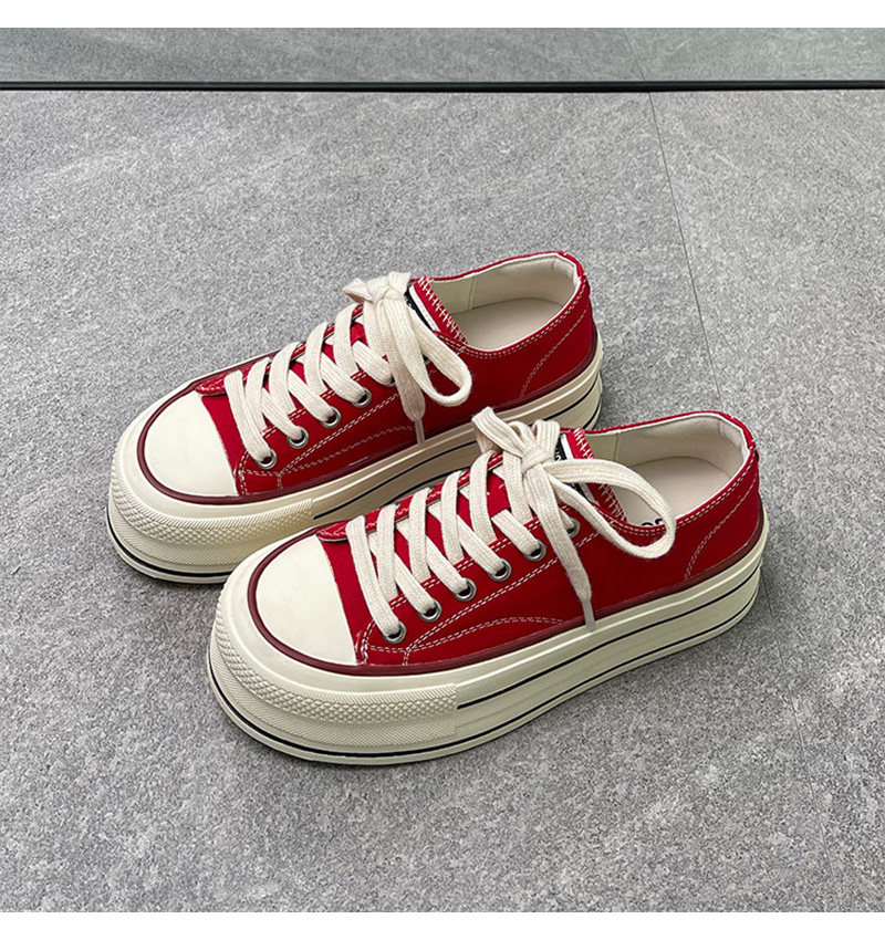 Italy Sanli~Ankora Red Thick-Soled Canvas Shoes for Women, New Breathable Versatile Comfortable Height-Increasing Casual Sneakers