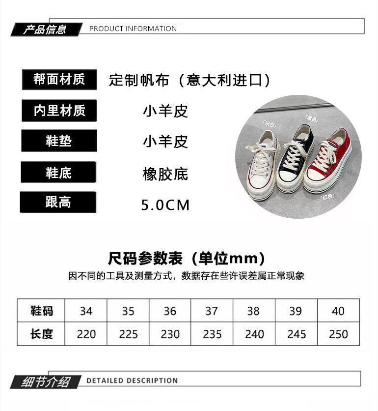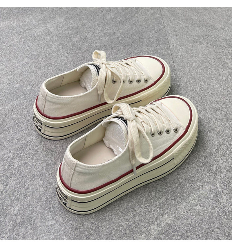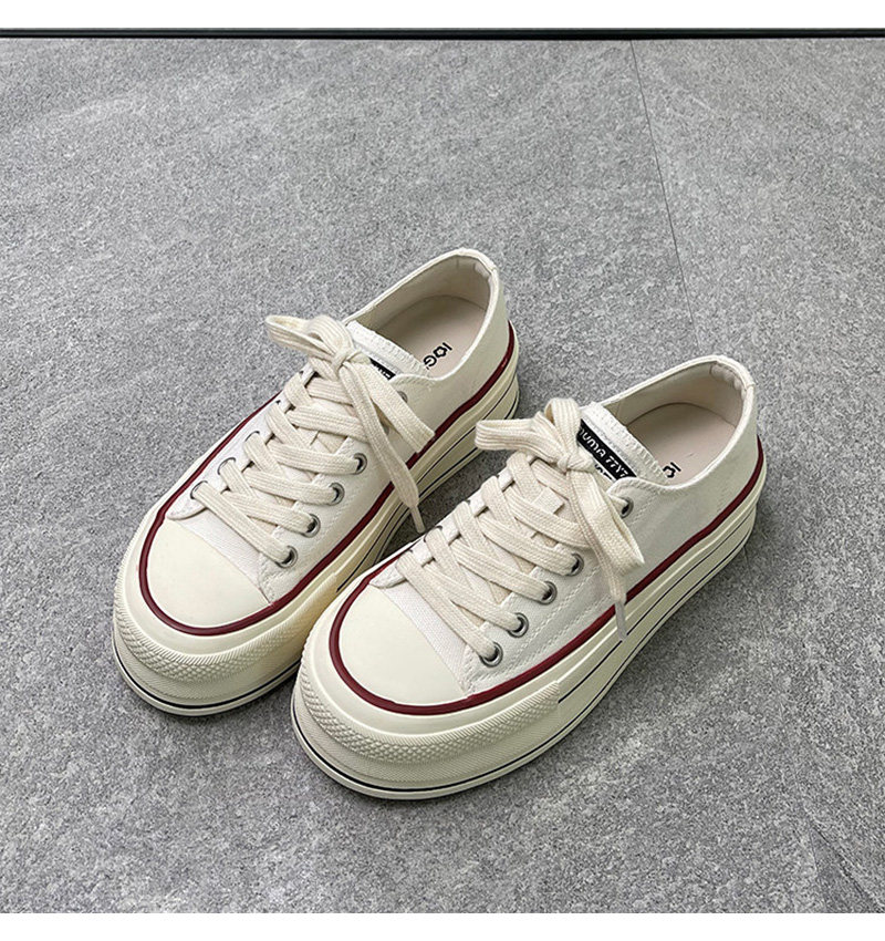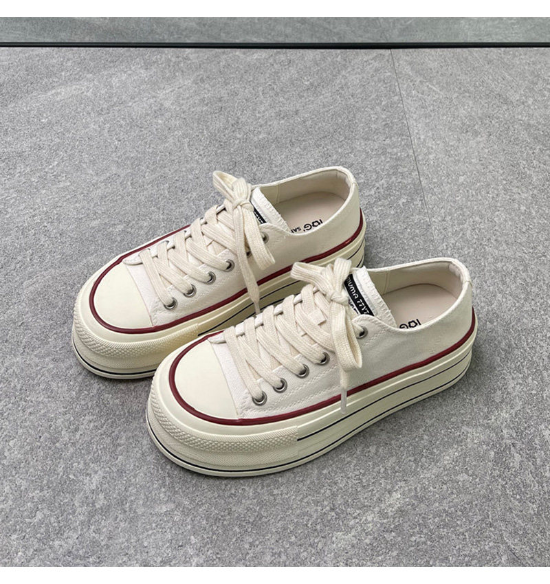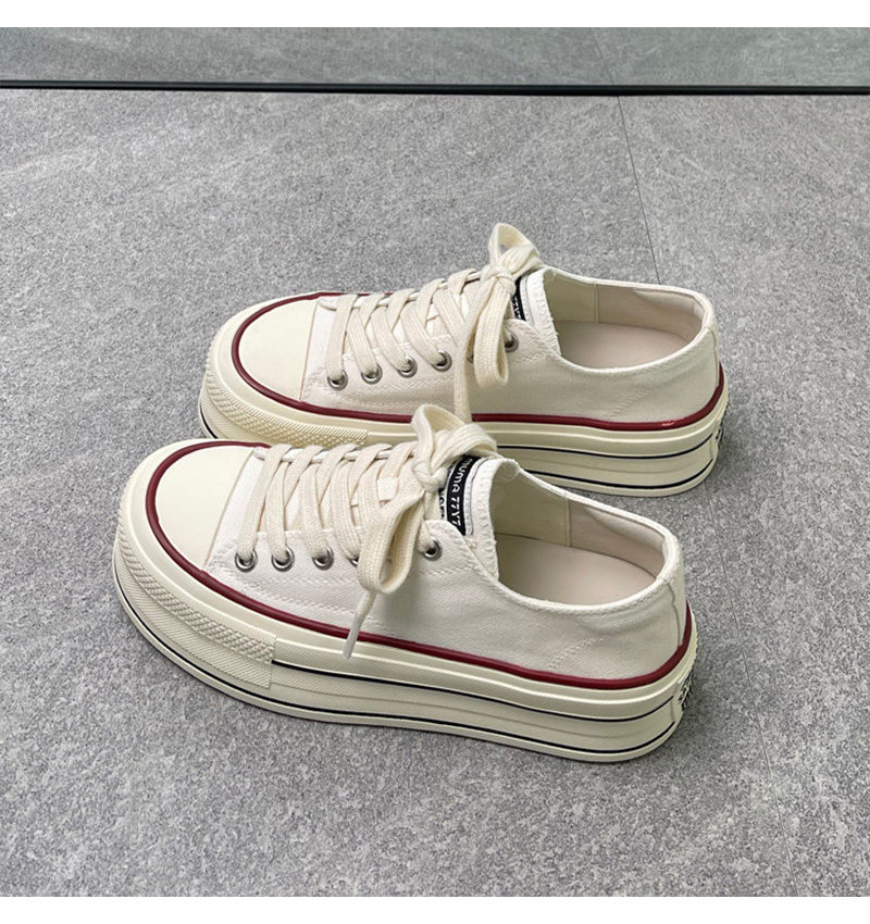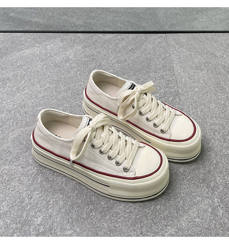 Italy Sanli~Ankora Red Thick-Soled Canvas Shoes for Women, New Breathable Versatile Comfortable Height-Increasing Casual Sneakers
