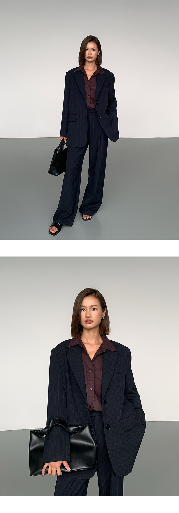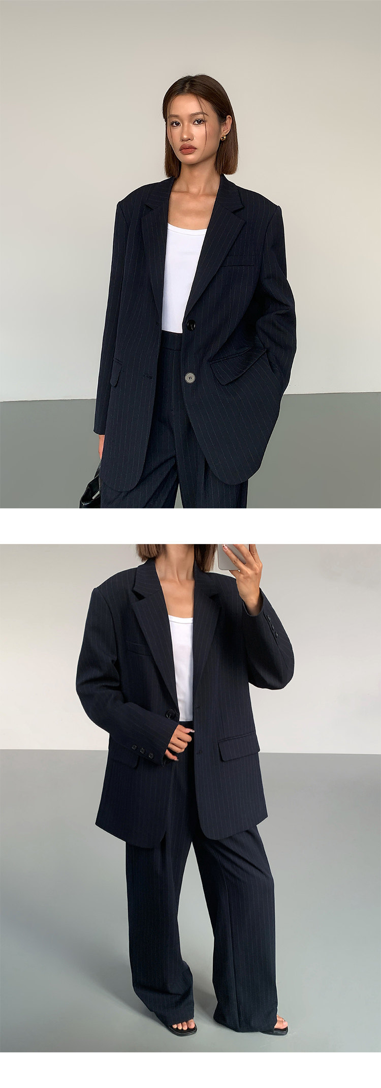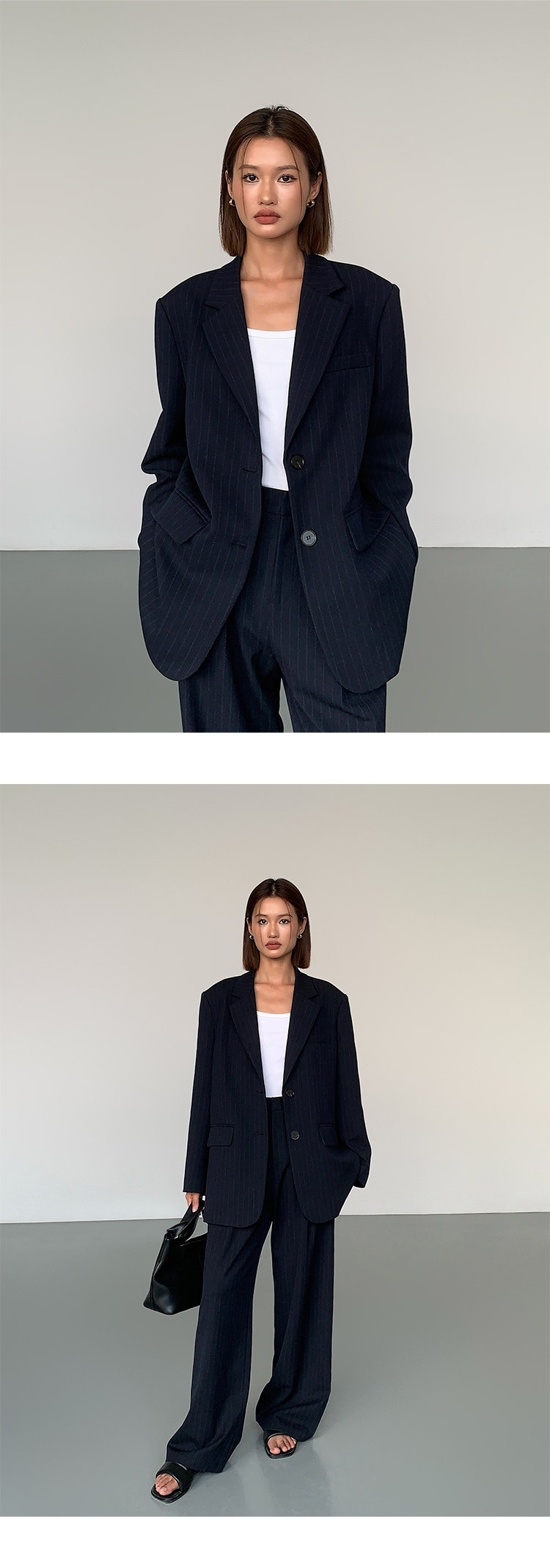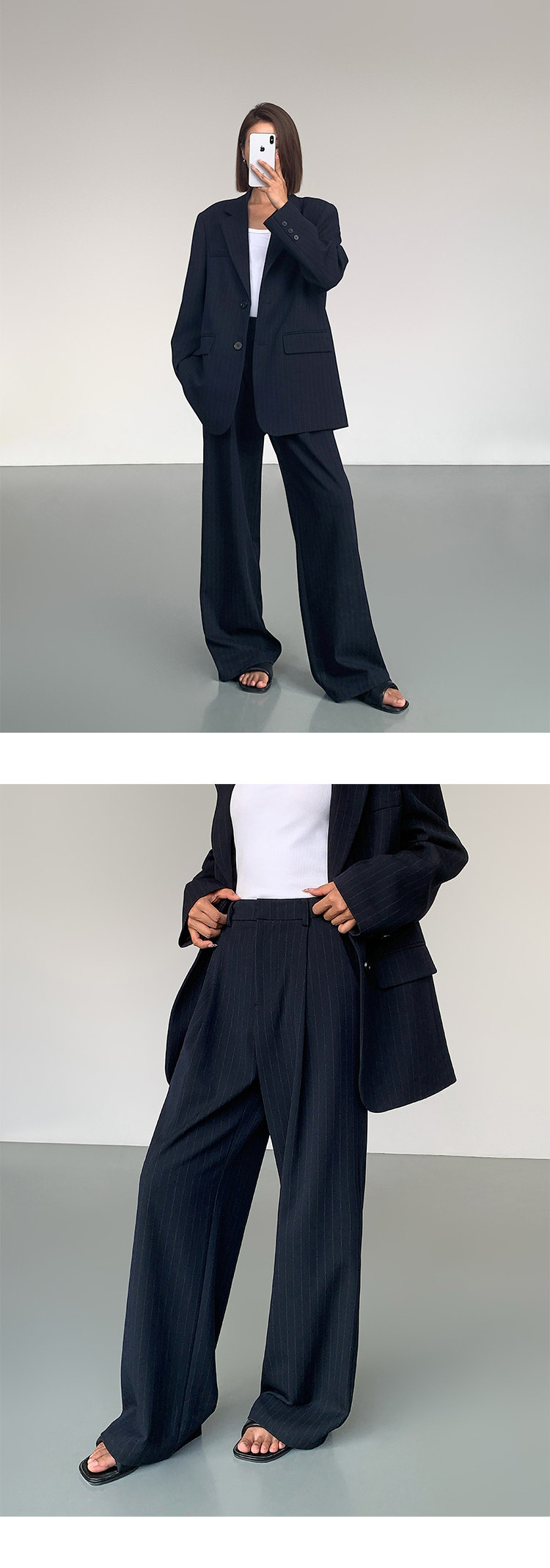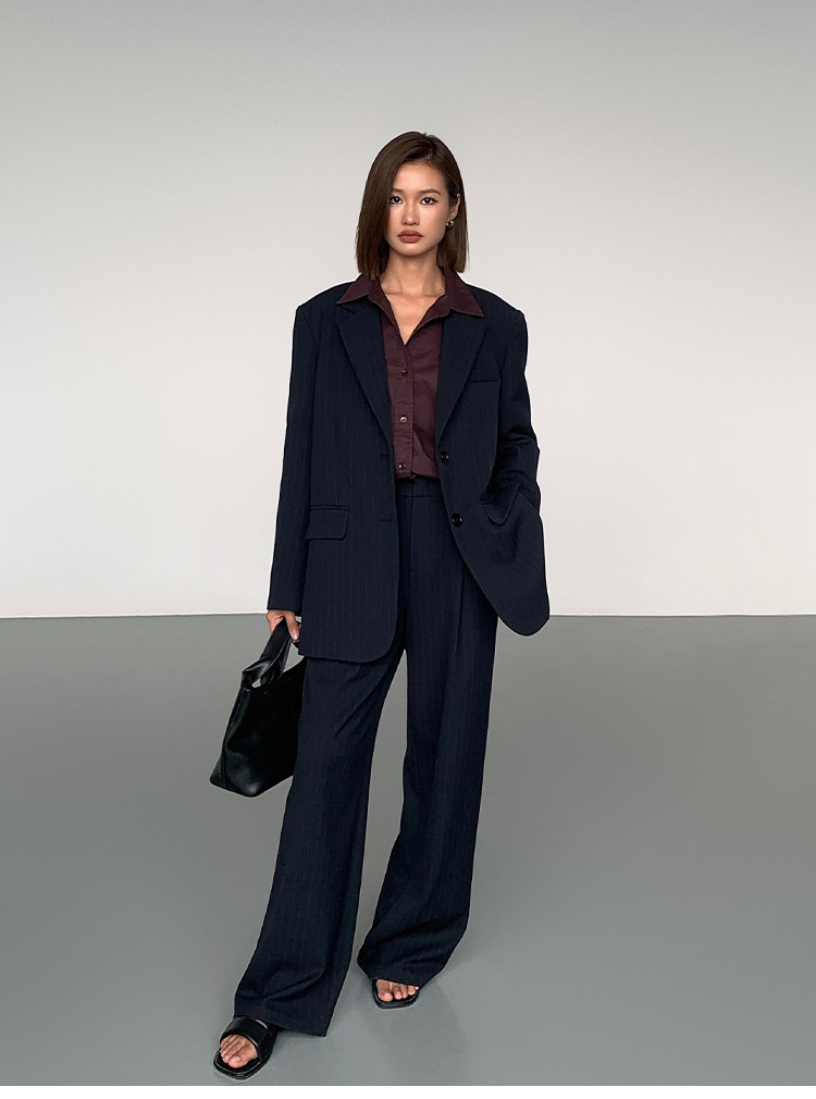 Ousph【In Stock 50% off 】Black Straight-Leg Casual Trousers for Women, High-End Design, Loose Wide-Leg High-Waisted Long Pants