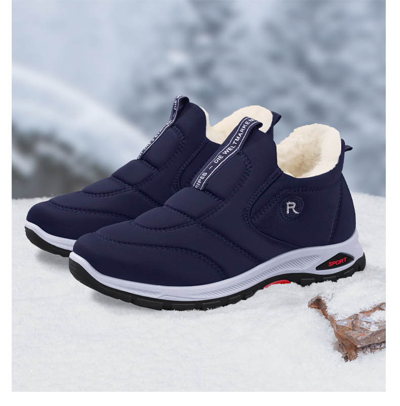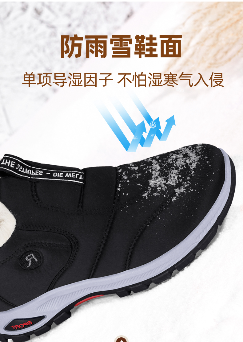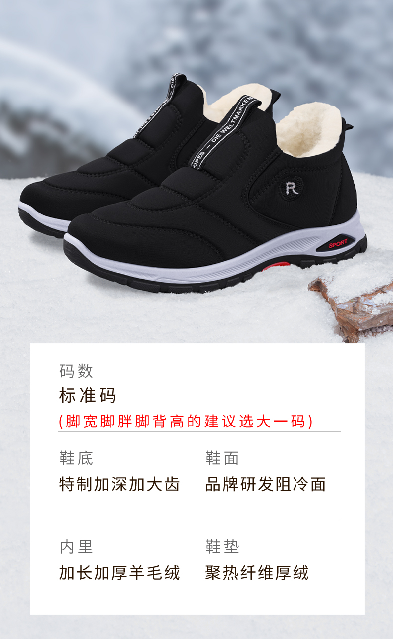 Winter Old Beijing Cloth Shoes for Men, Fleece-Lined and Thickened, Wool Snow Boots for Middle-Aged and Elderly People, Non-Slip Soft-Soled Cotton Shoes for the Elderly