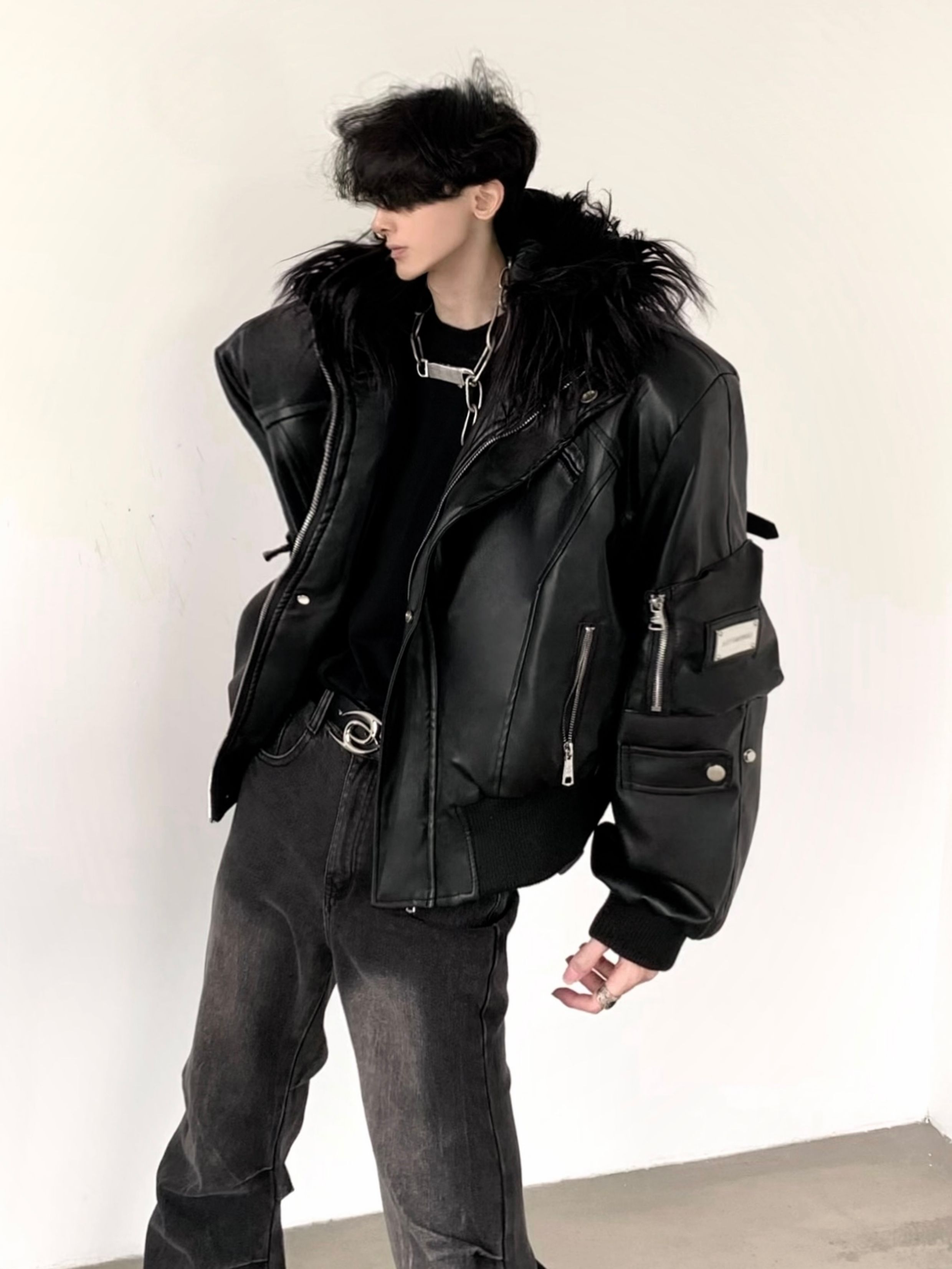 Autumn Mountain Style/Punk Mountain Carving Large Fur Collar Jacket Men's High-End Design Winter Hooded Parka Cotton Coat