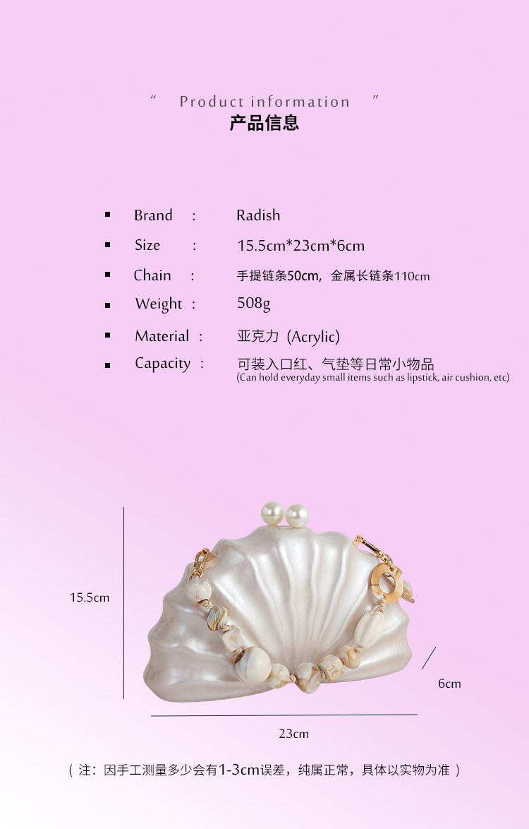New Acrylic Fan-Shaped Shell-Shaped Beaded Shell Hand Chain Bag Women's Clutch Bag Single Shoulder Crossbody Bag