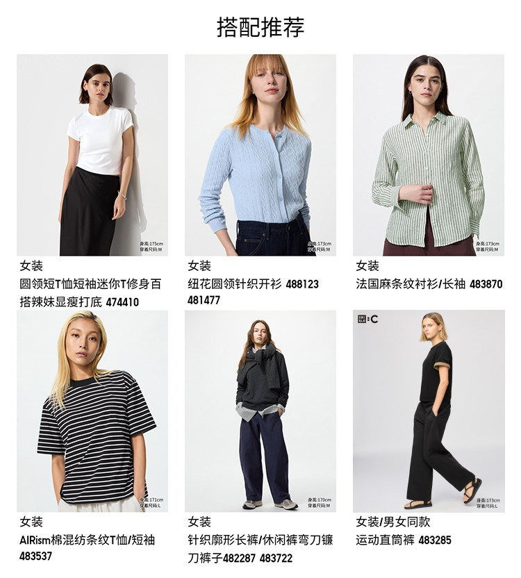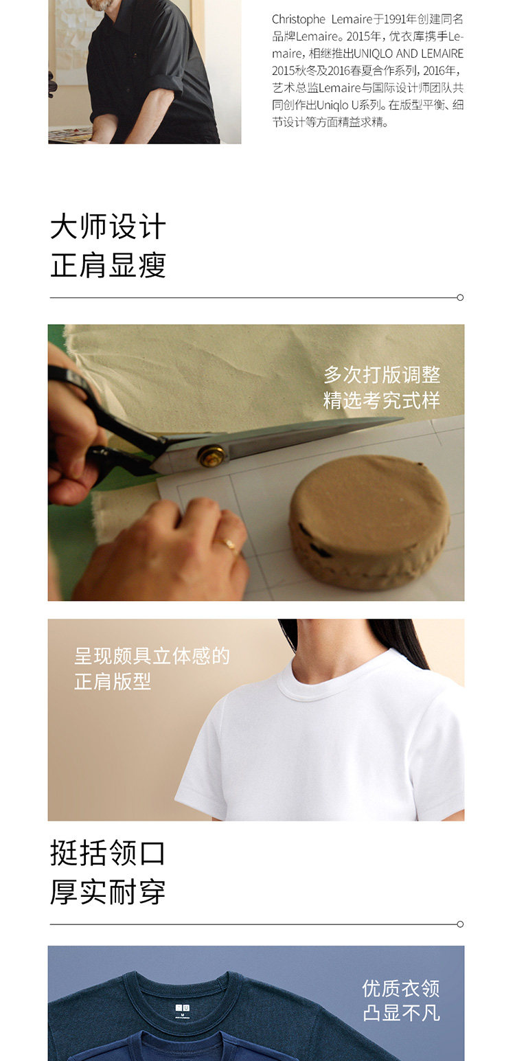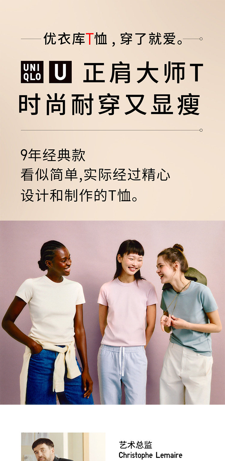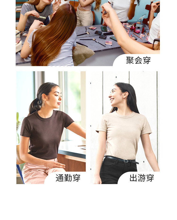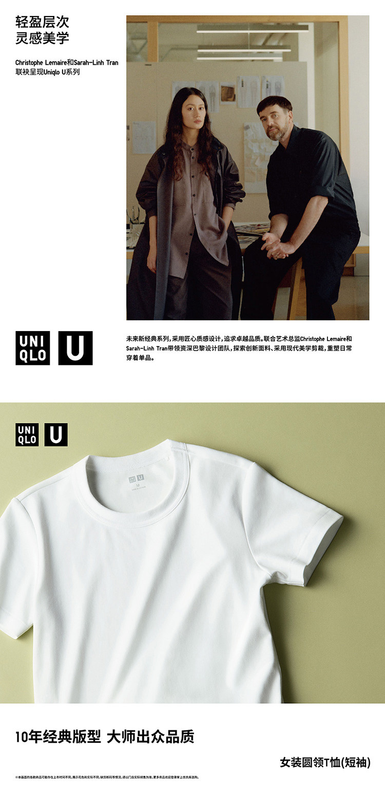 Uniqlo Collaboration Model/Women's Round Neck T-Shirt/Short-Sleeved Regular Shoulder Master t Plain Color 474404