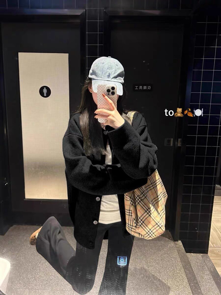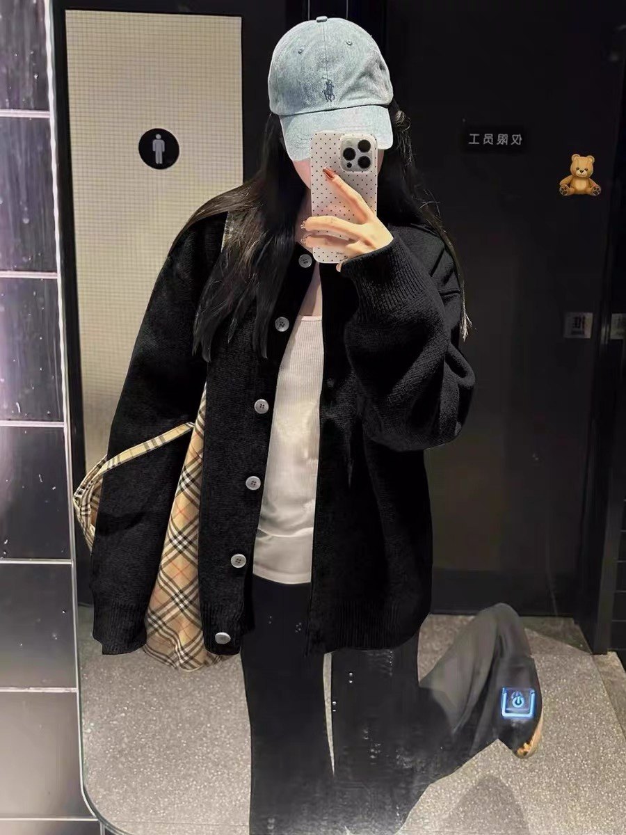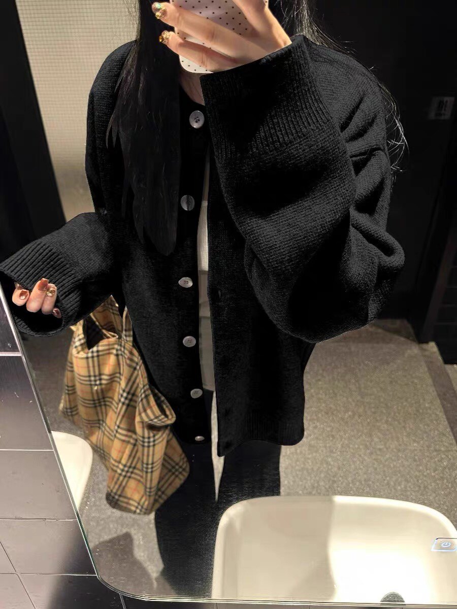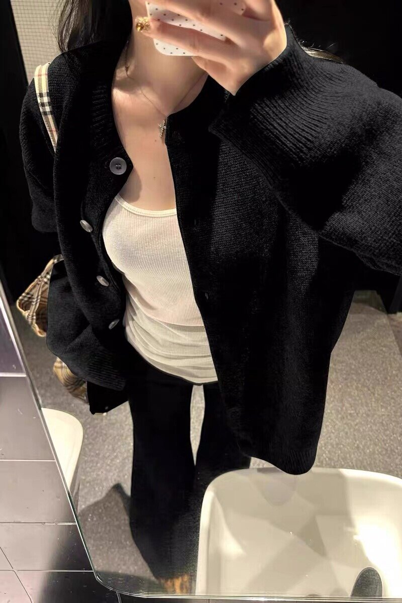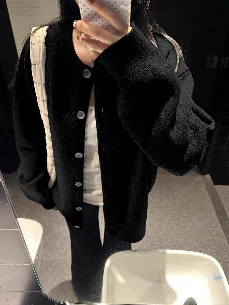 Black Lazy-Style Slimming Button-Down Sweater Cardigan for Women, 2025 Winter Loose Oversized Beautiful and Unique Top