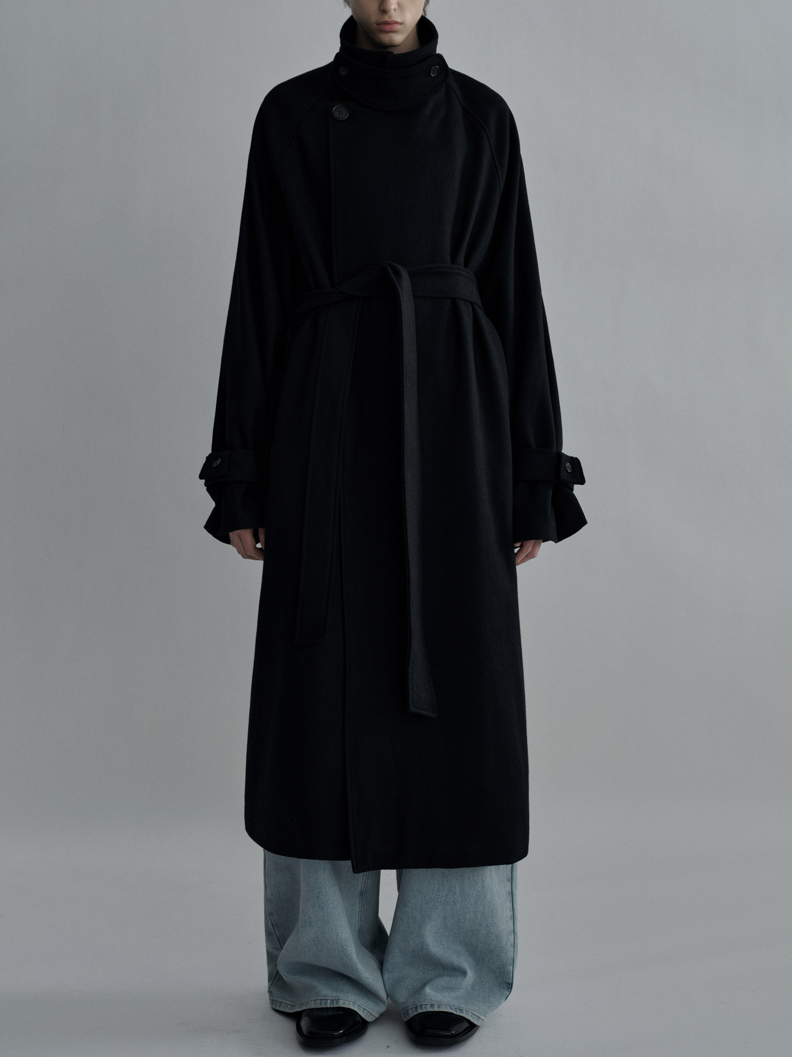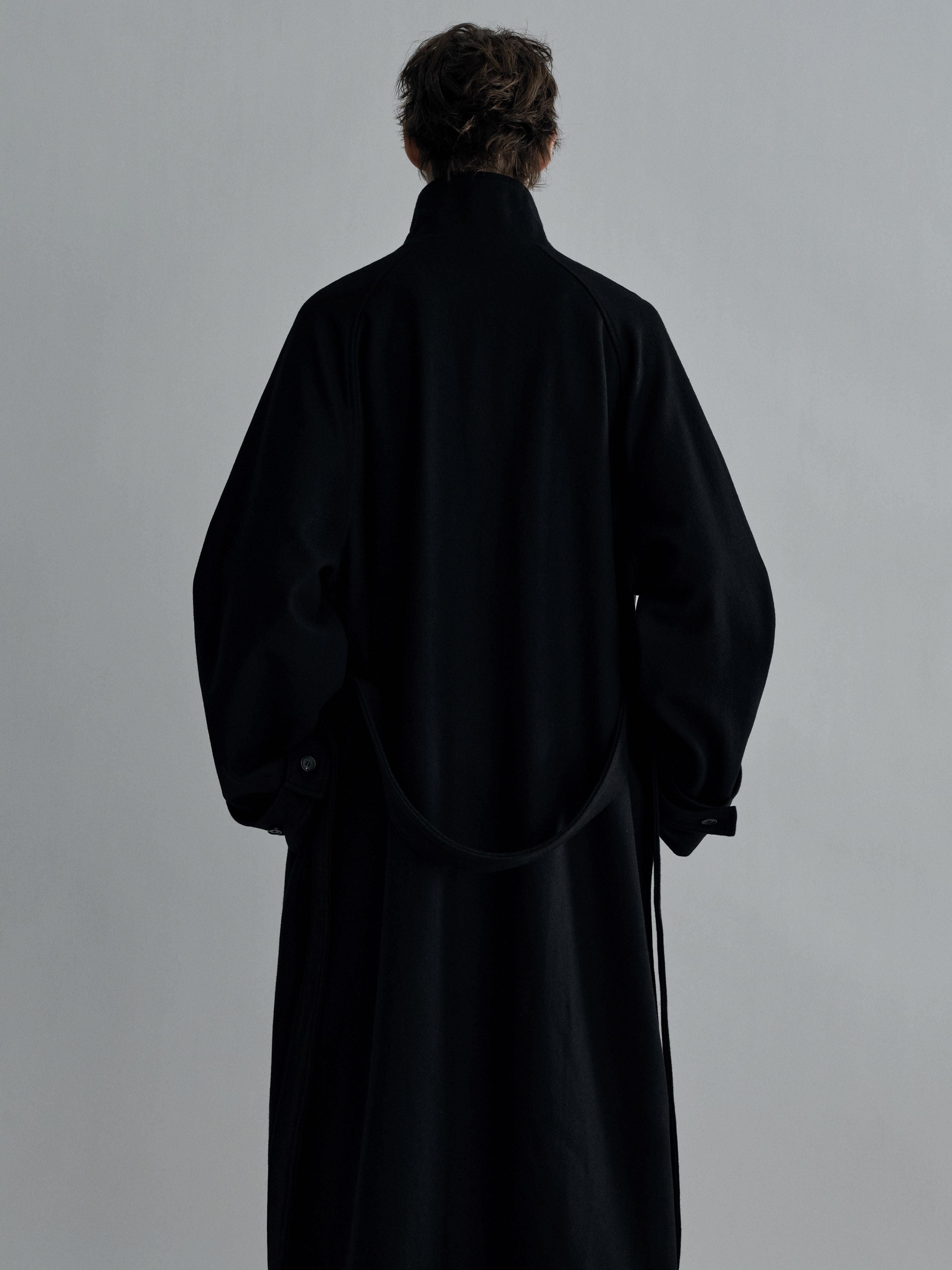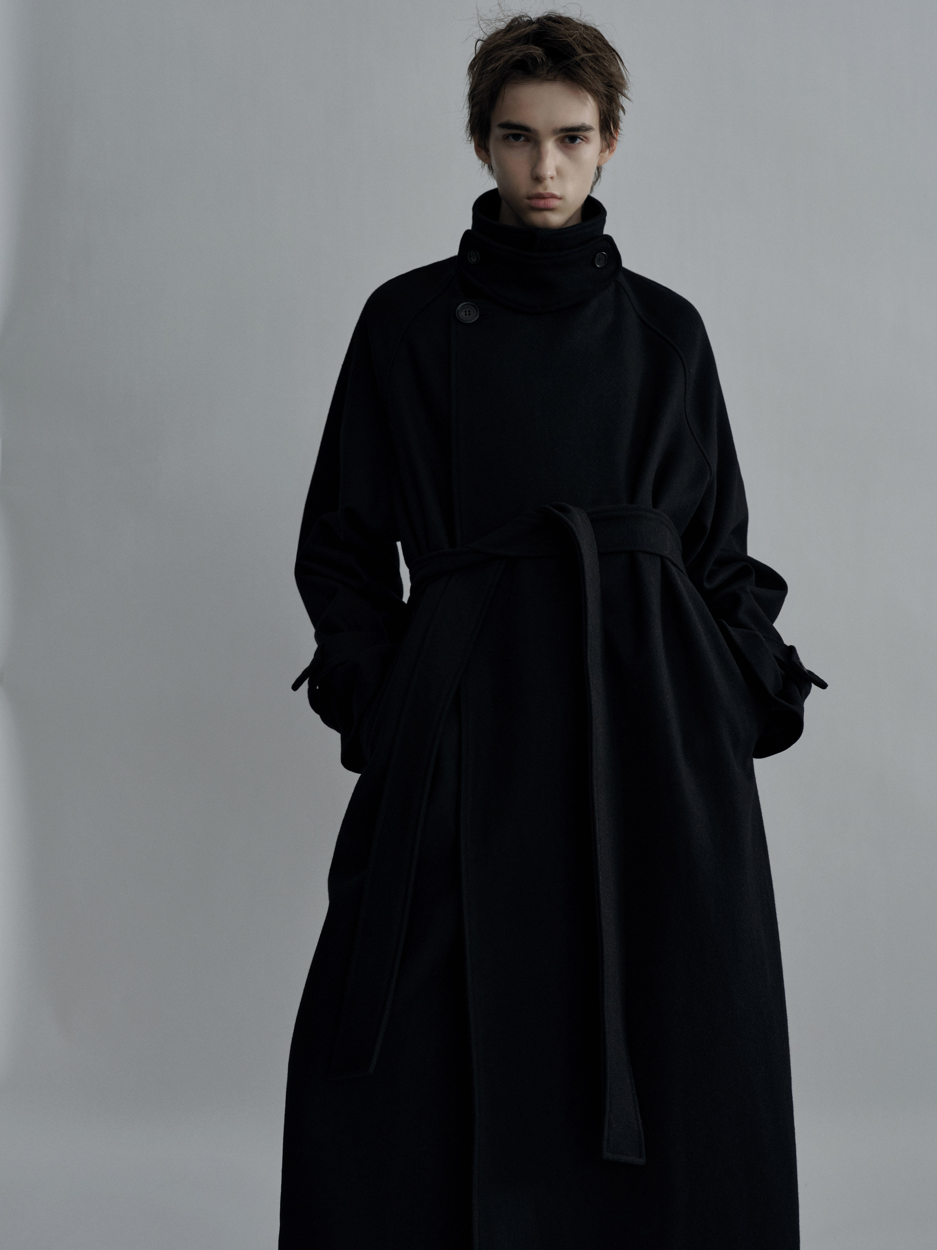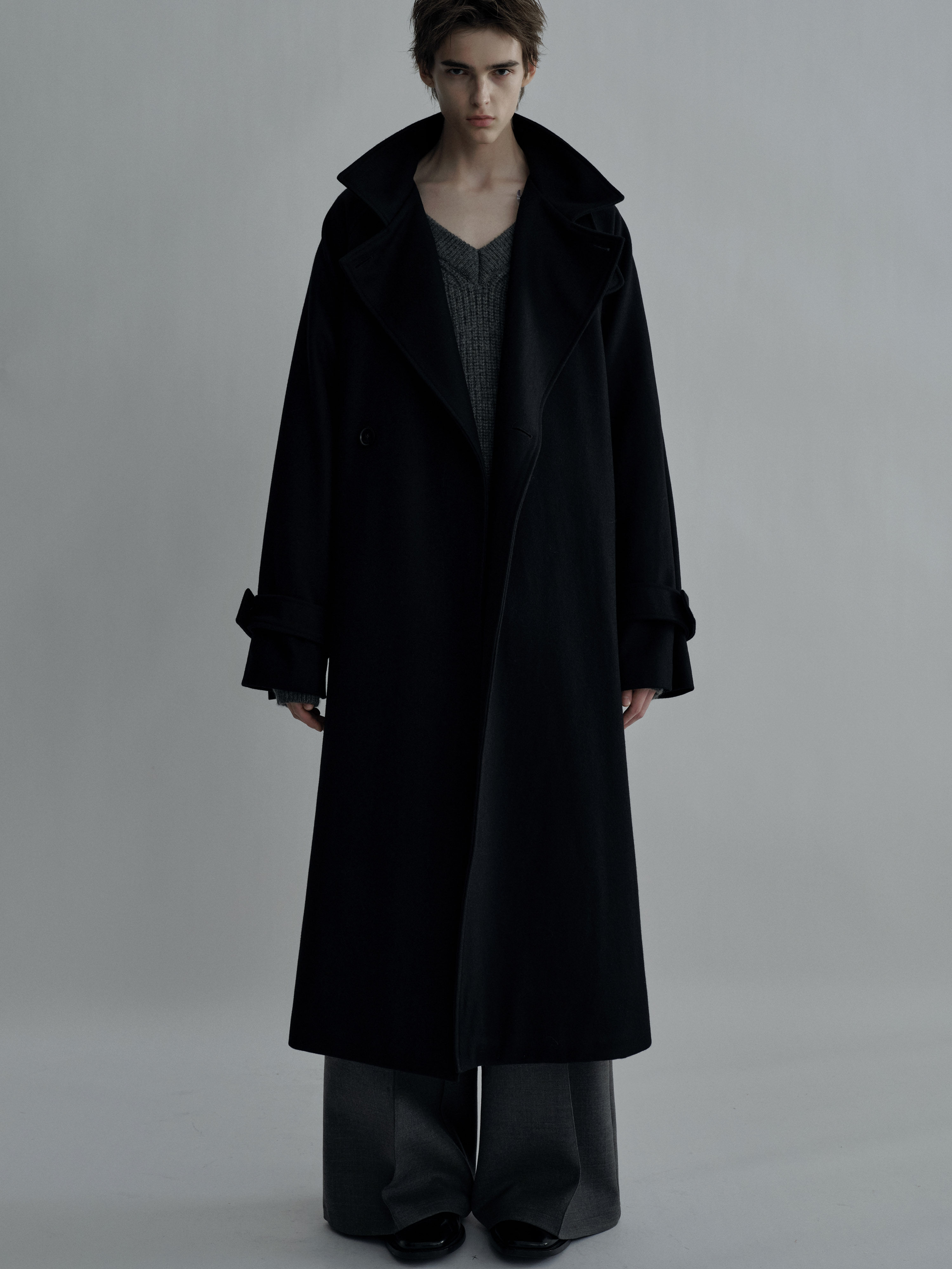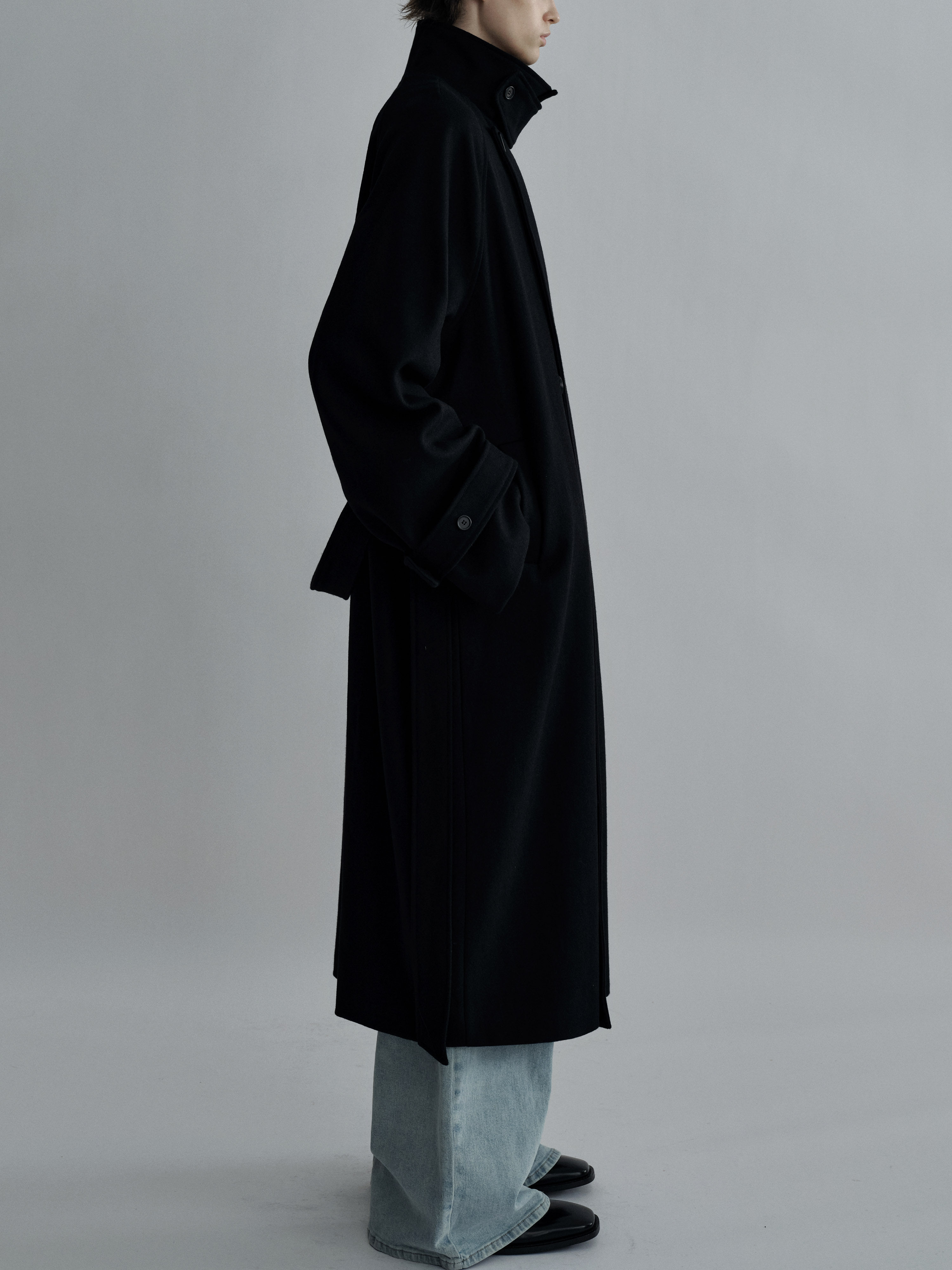 Sehenblau Designer Men's Silhouette Black Wool Long Lace-Up Outwear