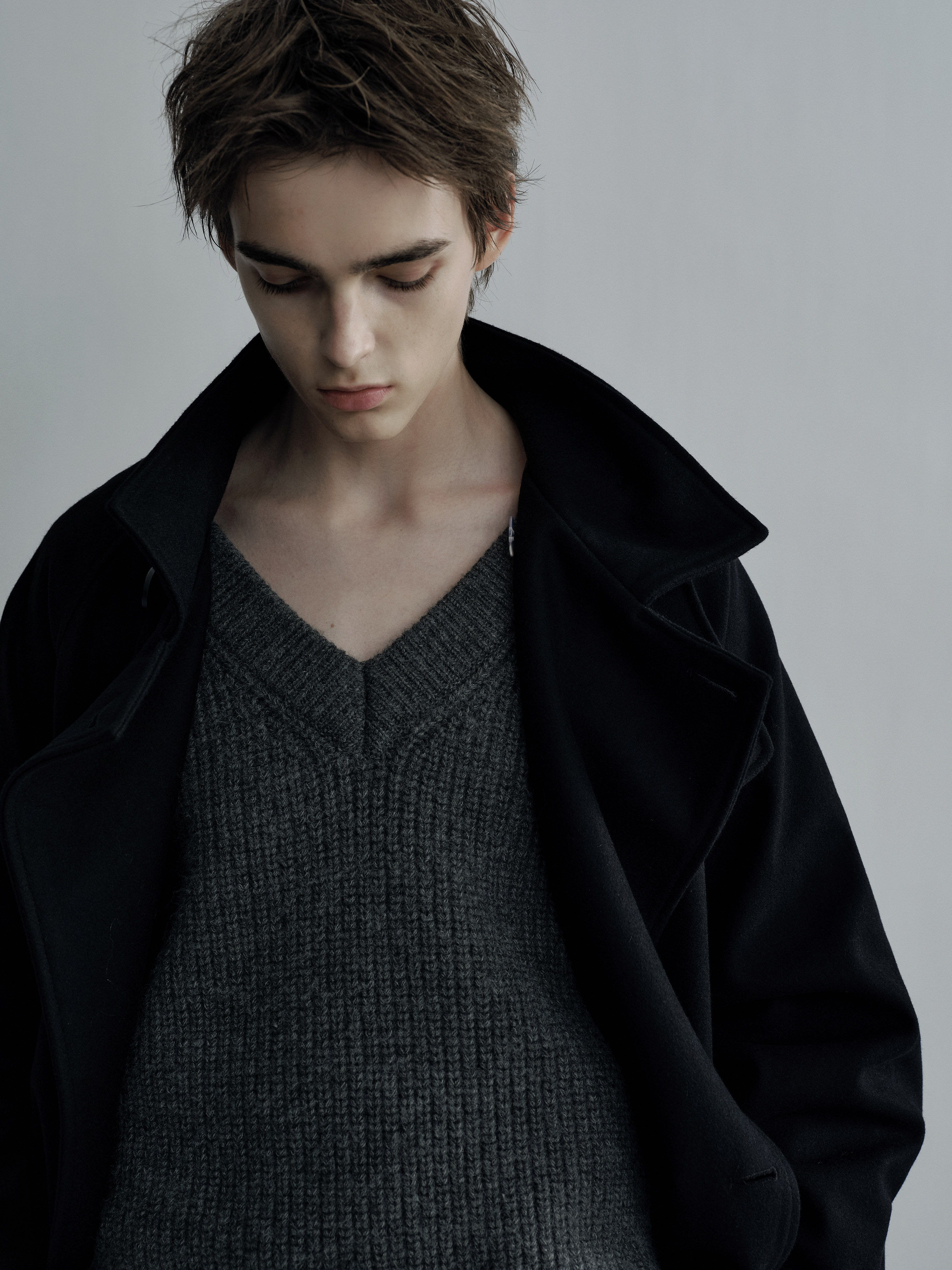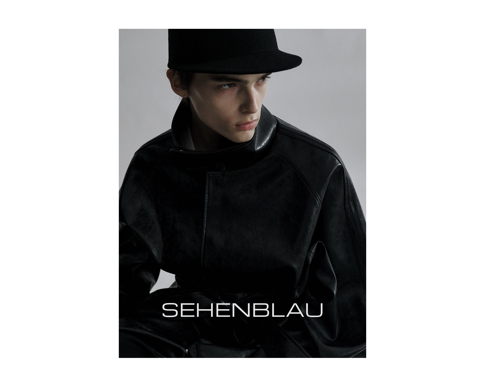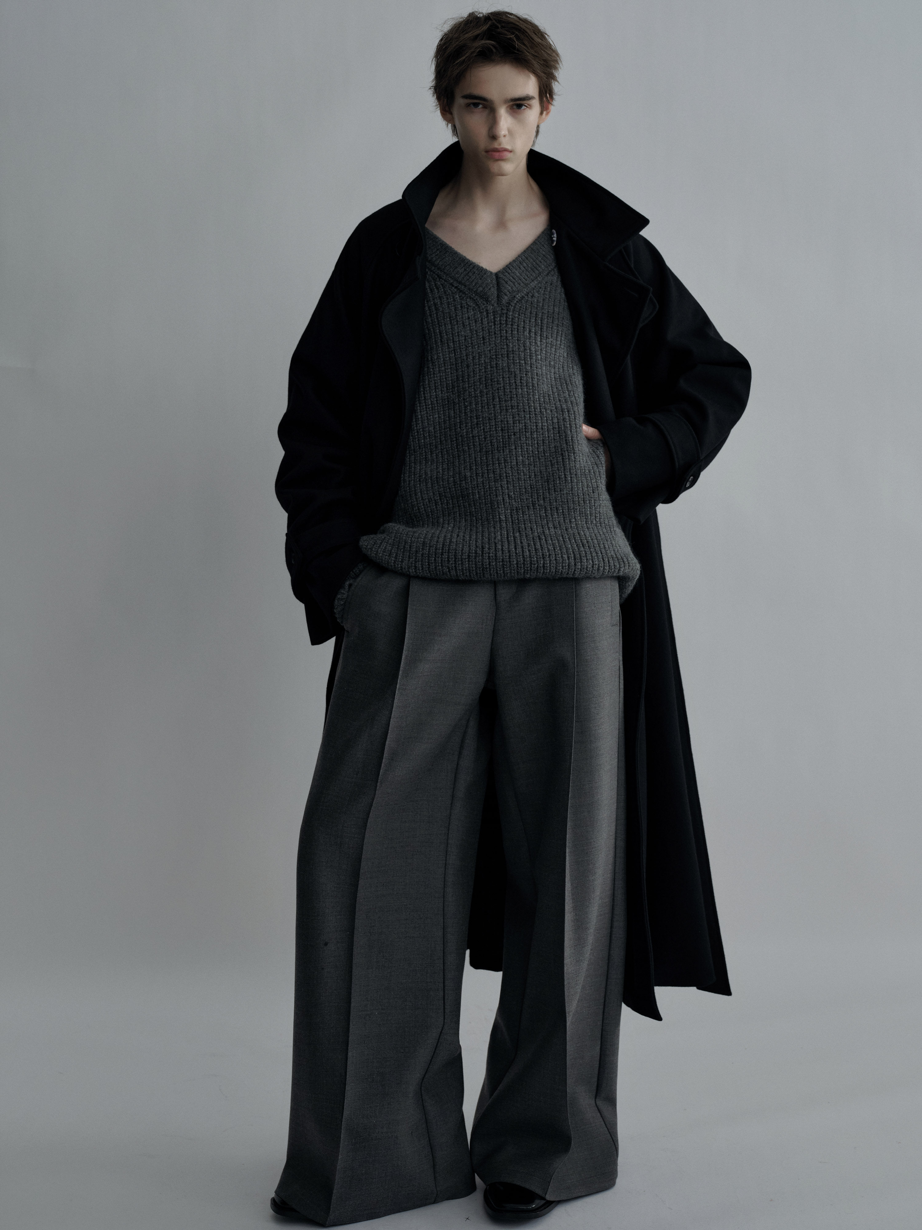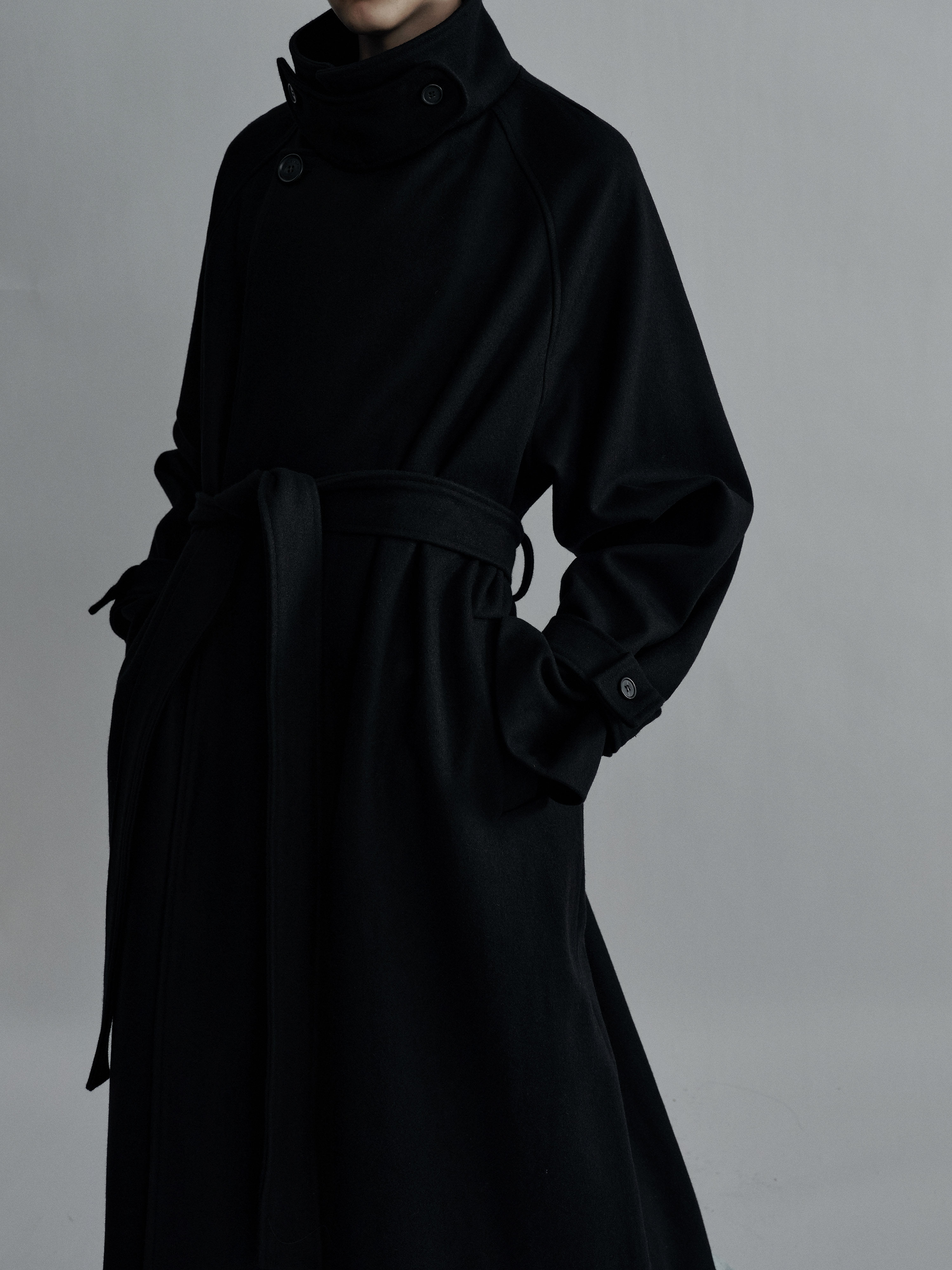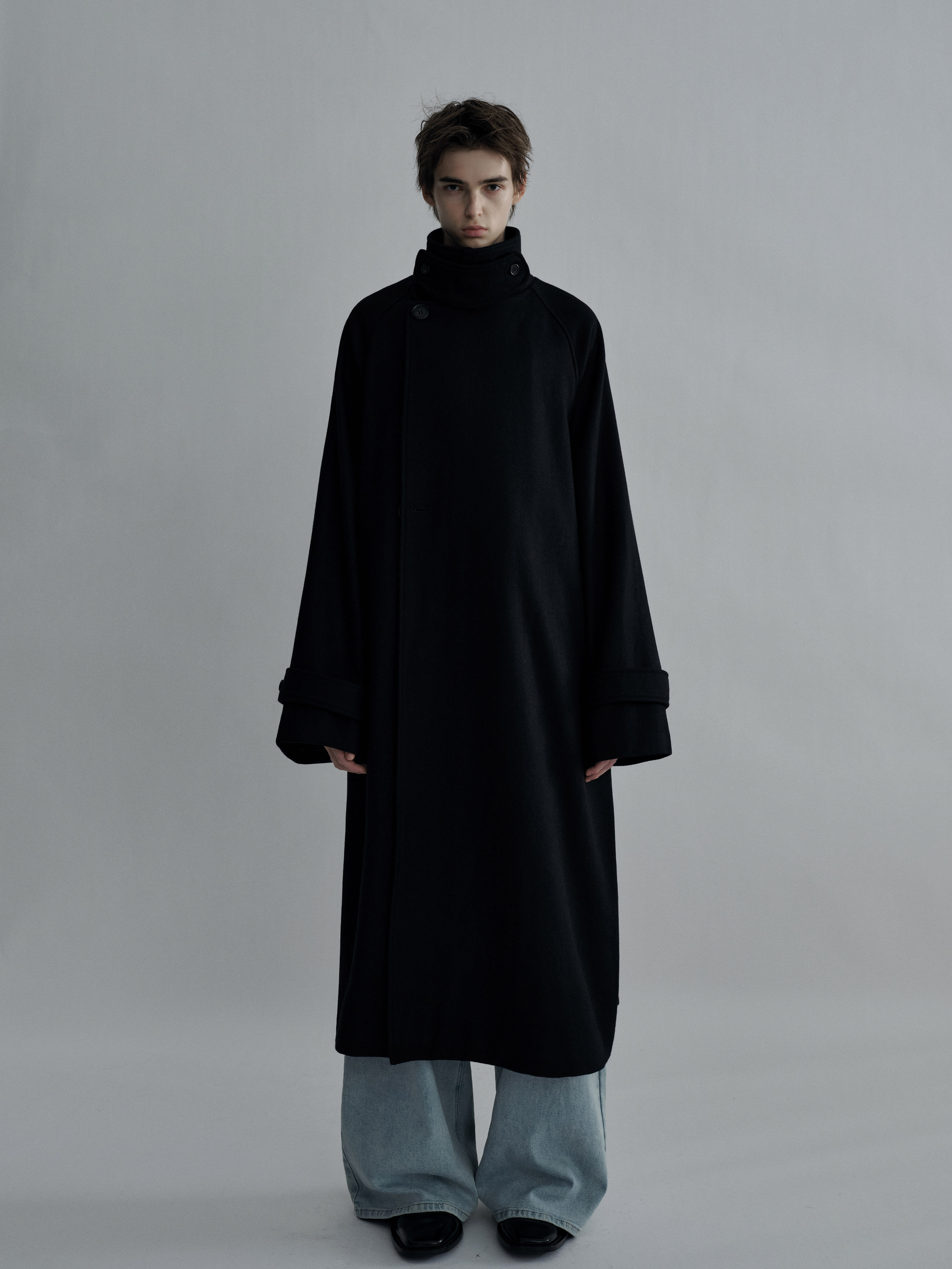 Sehenblau Designer Men's Silhouette Black Wool Long Lace-Up Outwear