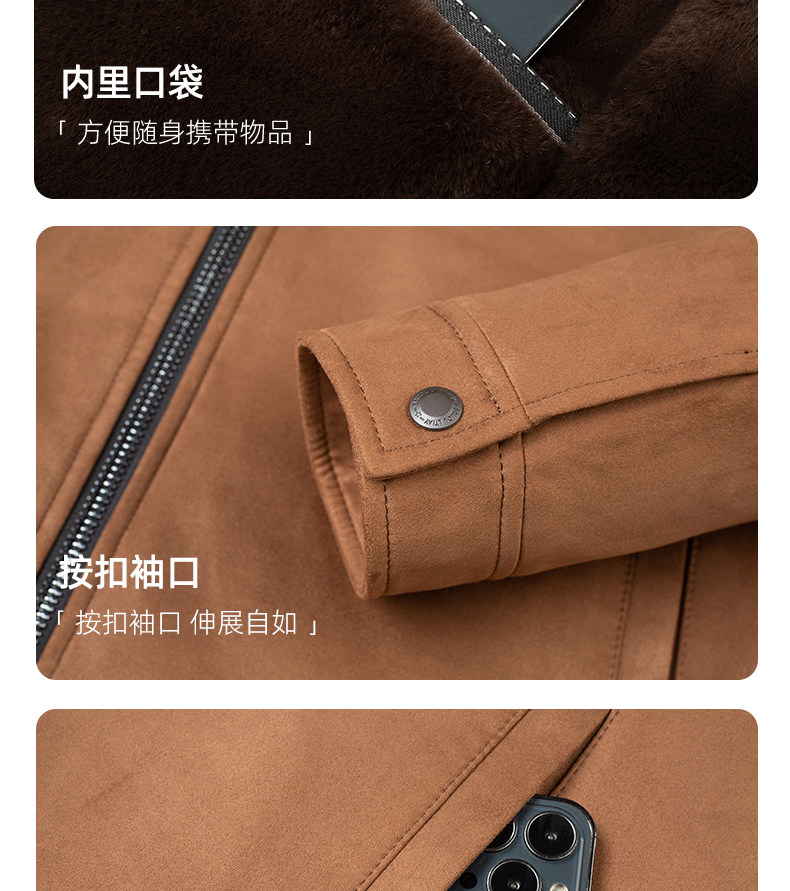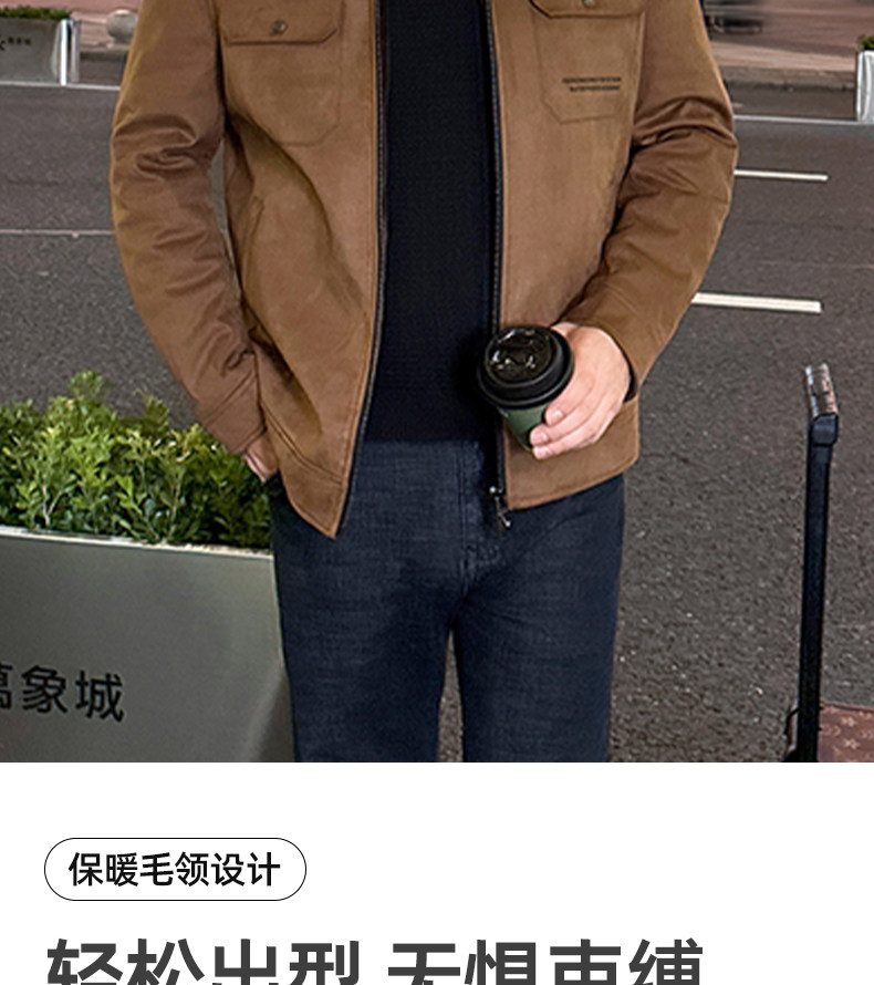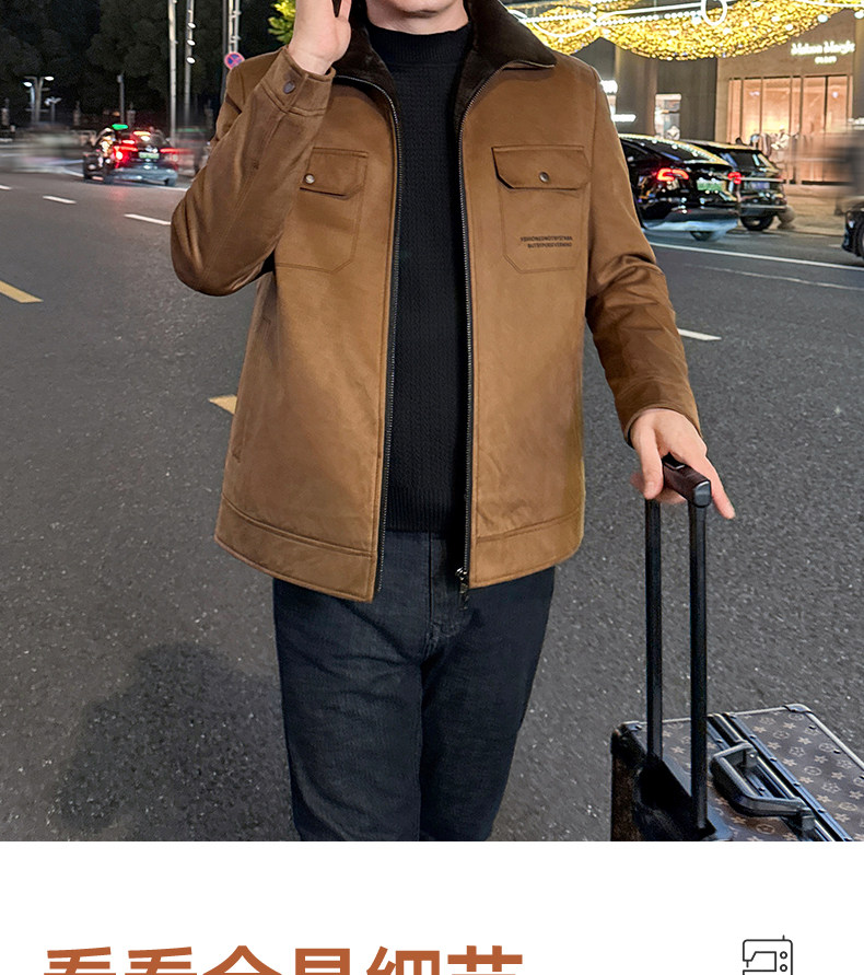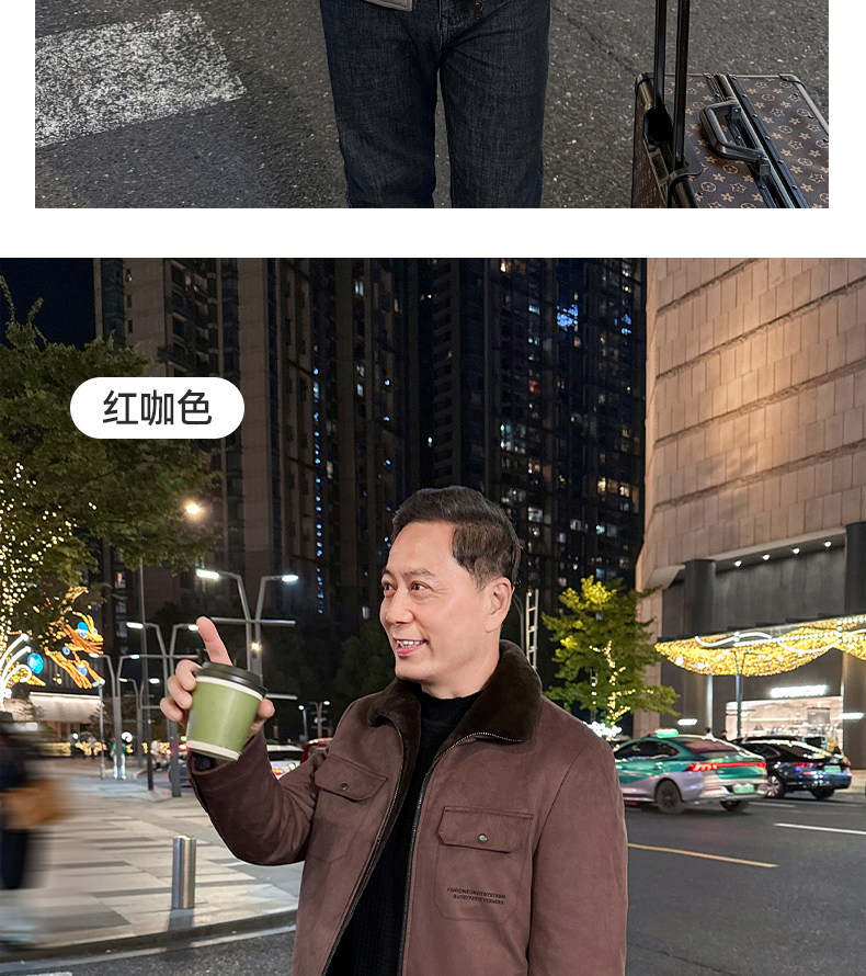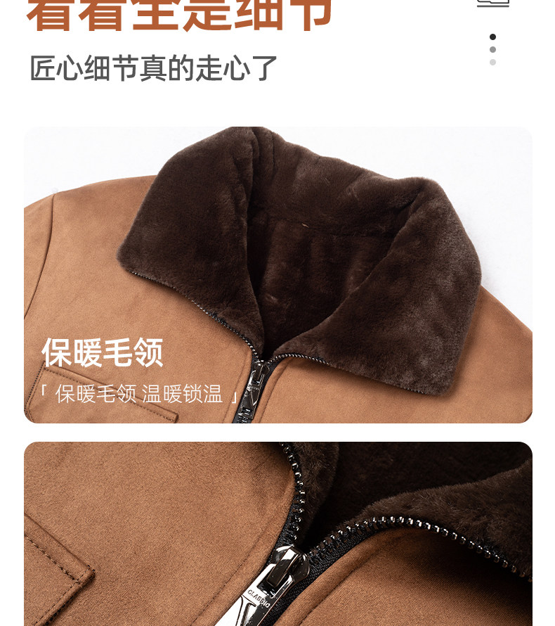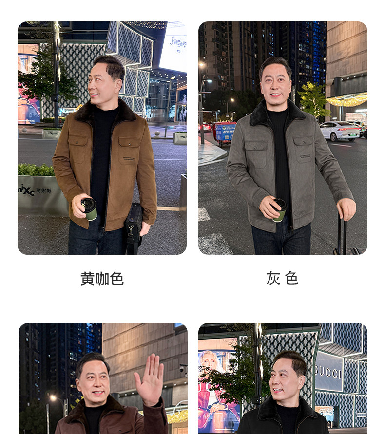 Dad's Winter Leather and Fur Integrated Jacket, Fleece-Lined, Thickened, Warm, Faux Suede Top, Middle-Aged Coat