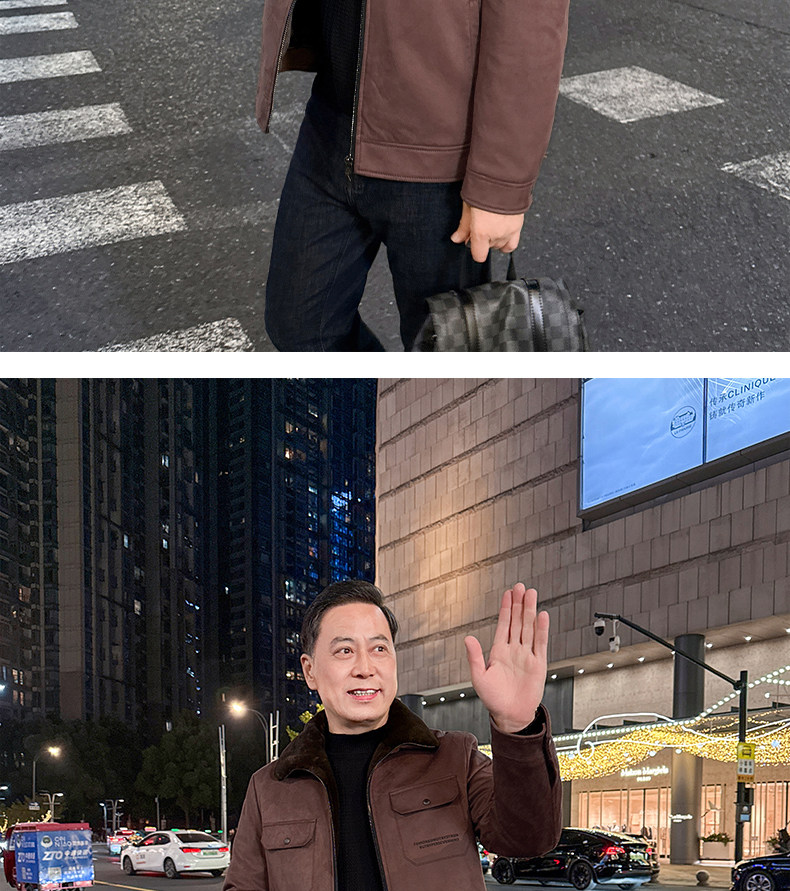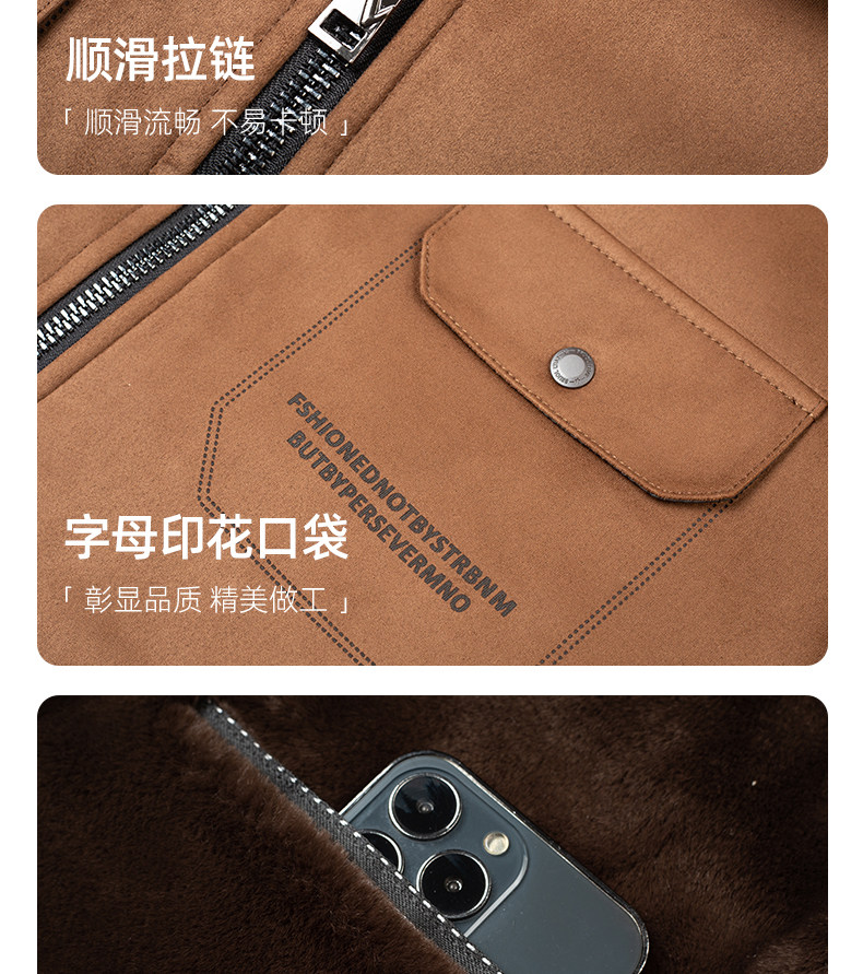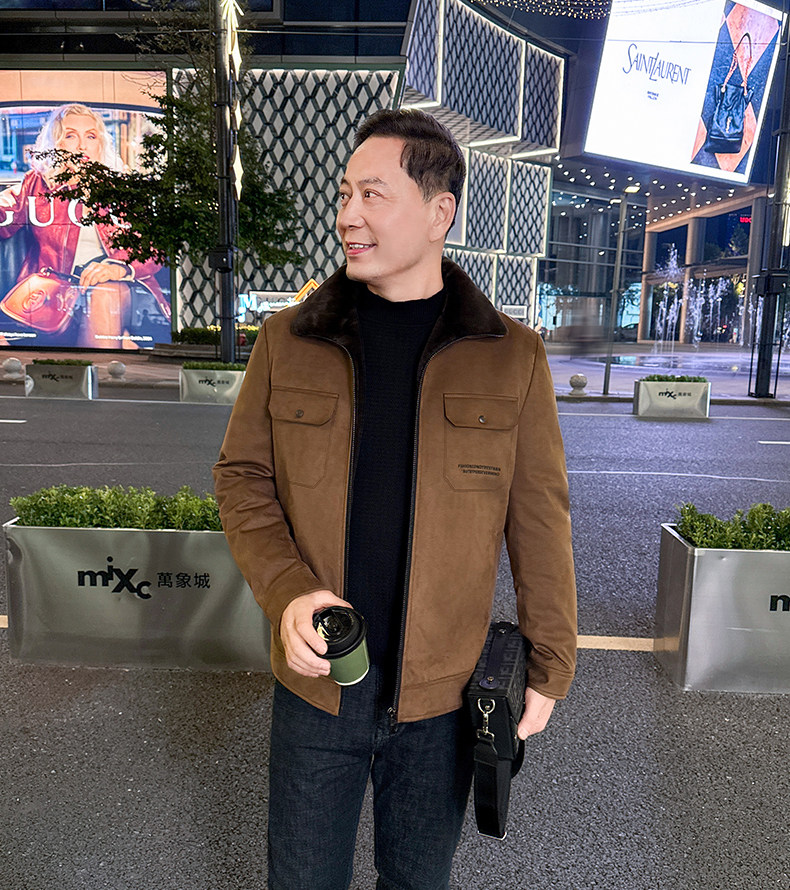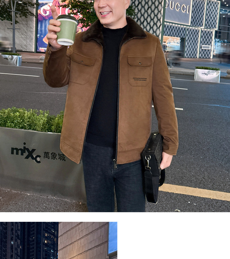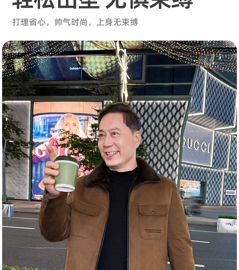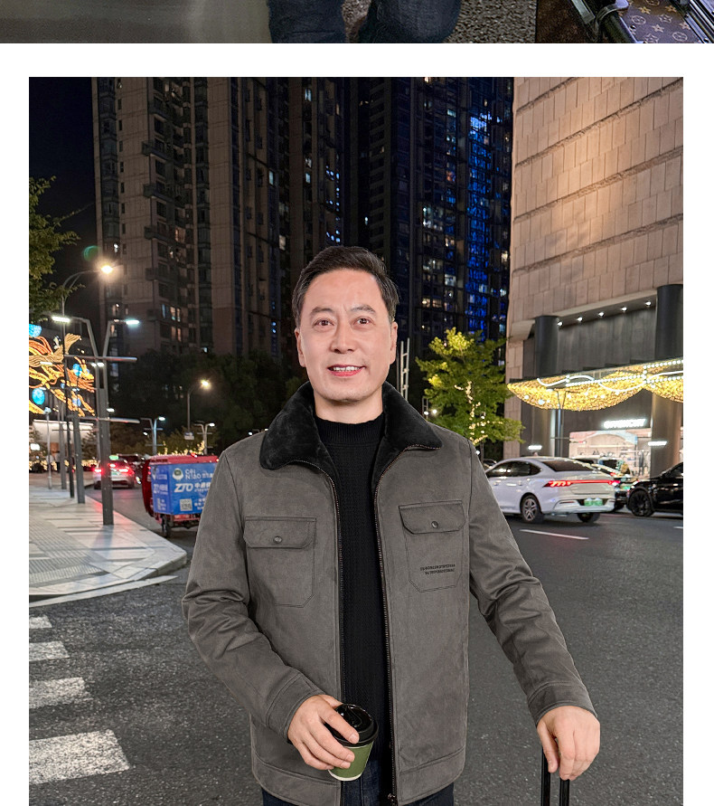 Dad's Winter Leather and Fur Integrated Jacket, Fleece-Lined, Thickened, Warm, Faux Suede Top, Middle-Aged Coat
