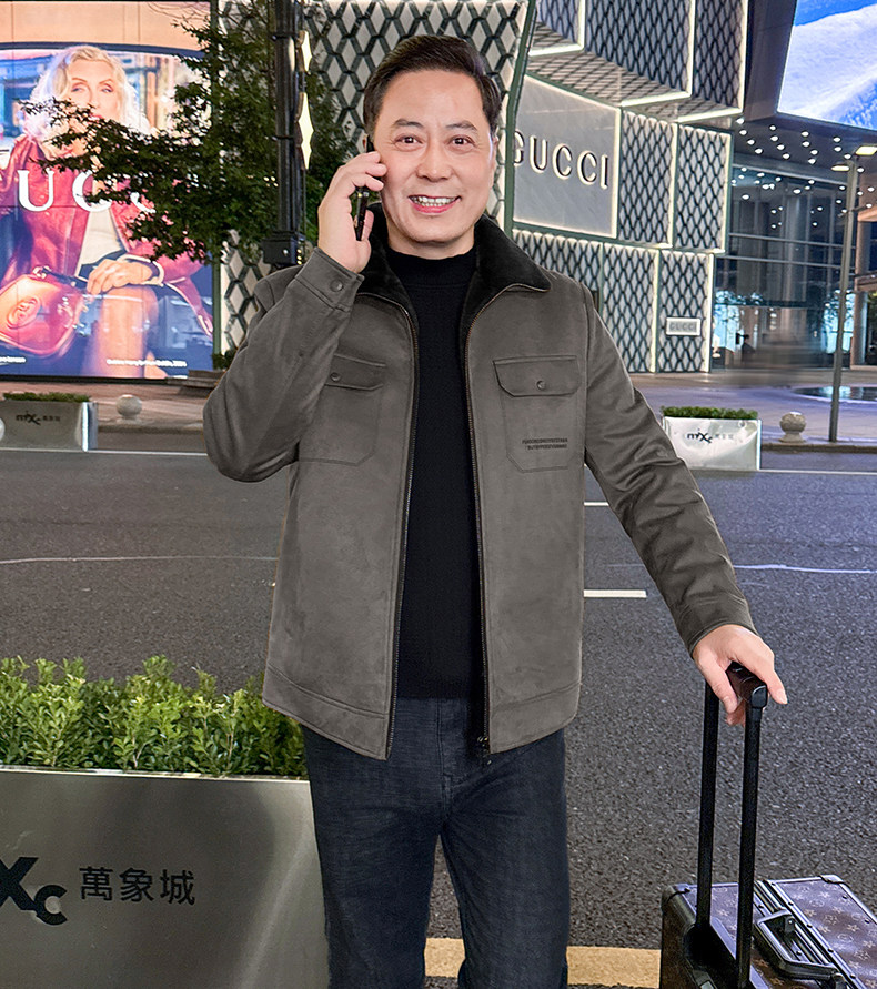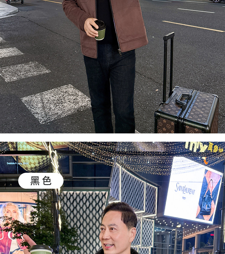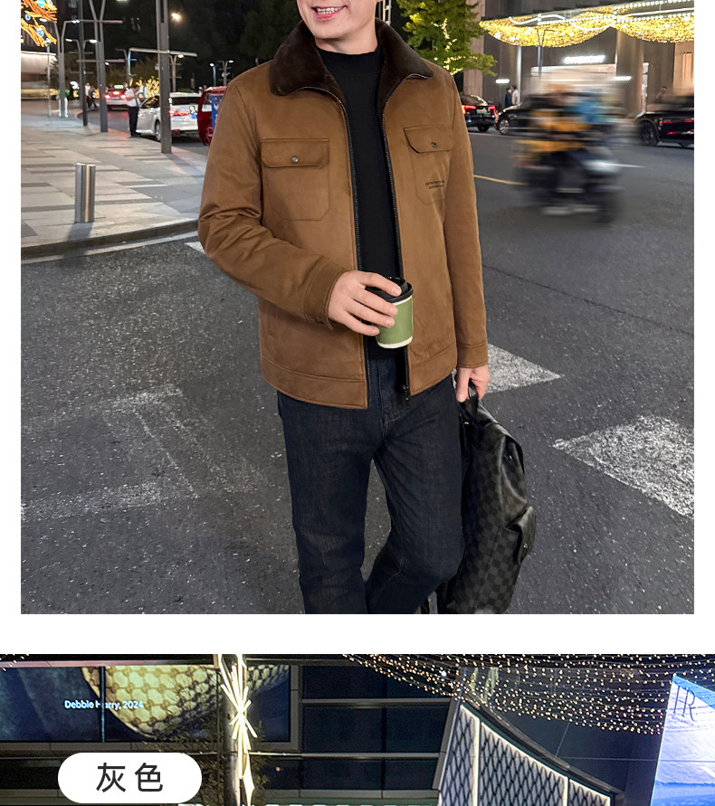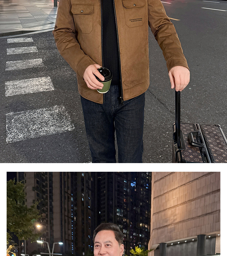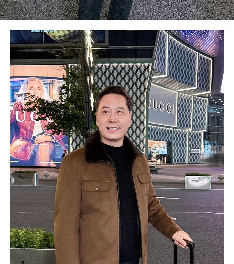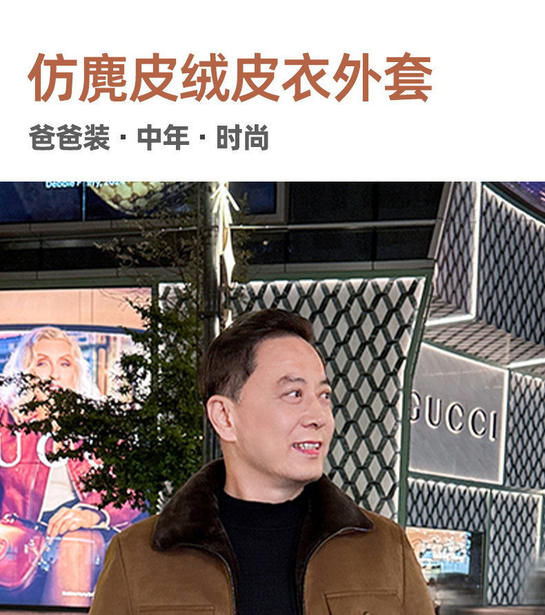 Dad's Winter Leather and Fur Integrated Jacket, Fleece-Lined, Thickened, Warm, Faux Suede Top, Middle-Aged Coat