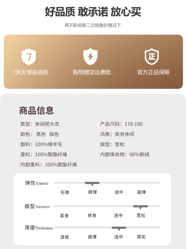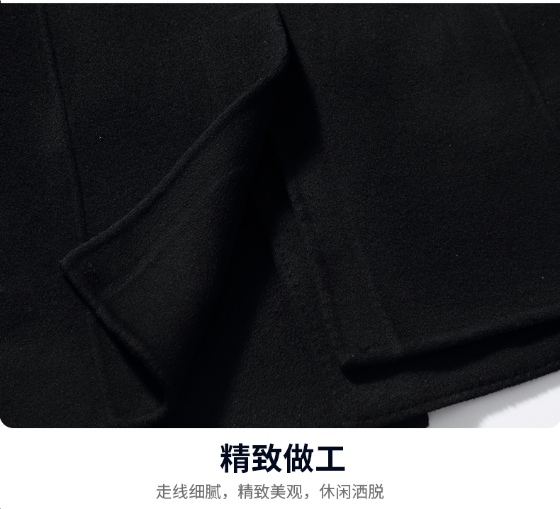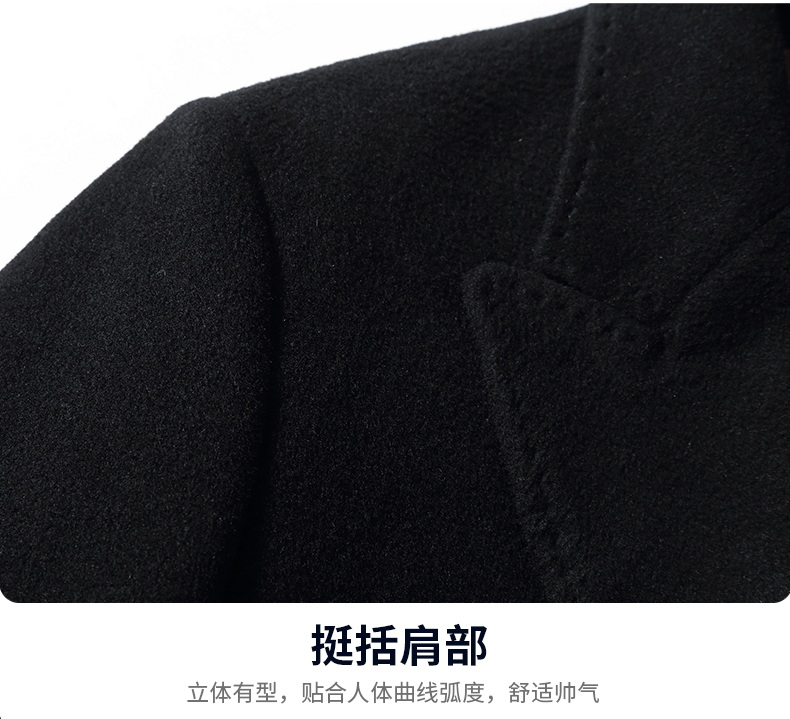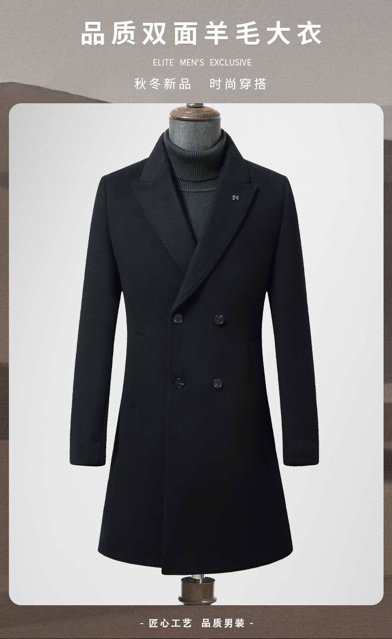 High-End Goose down Lining Thickened Pure Wool Coat for Men, Long Over-The-Knee Double-Breasted Peaked Lapel Woolen Trench Coat