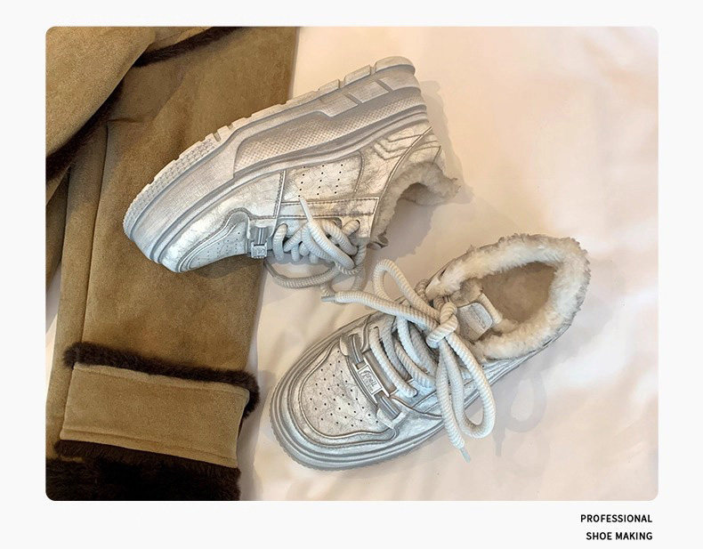 Hong Kong Thick-Soled Height-Increasing Distressed White Sneakers for Women 2026 Spring New Retro Lace-Up Casual Sneakers Genuine Leather