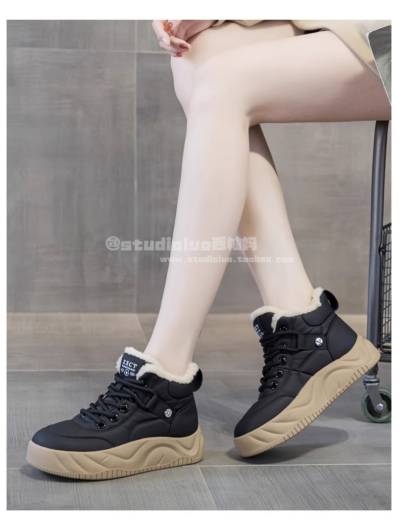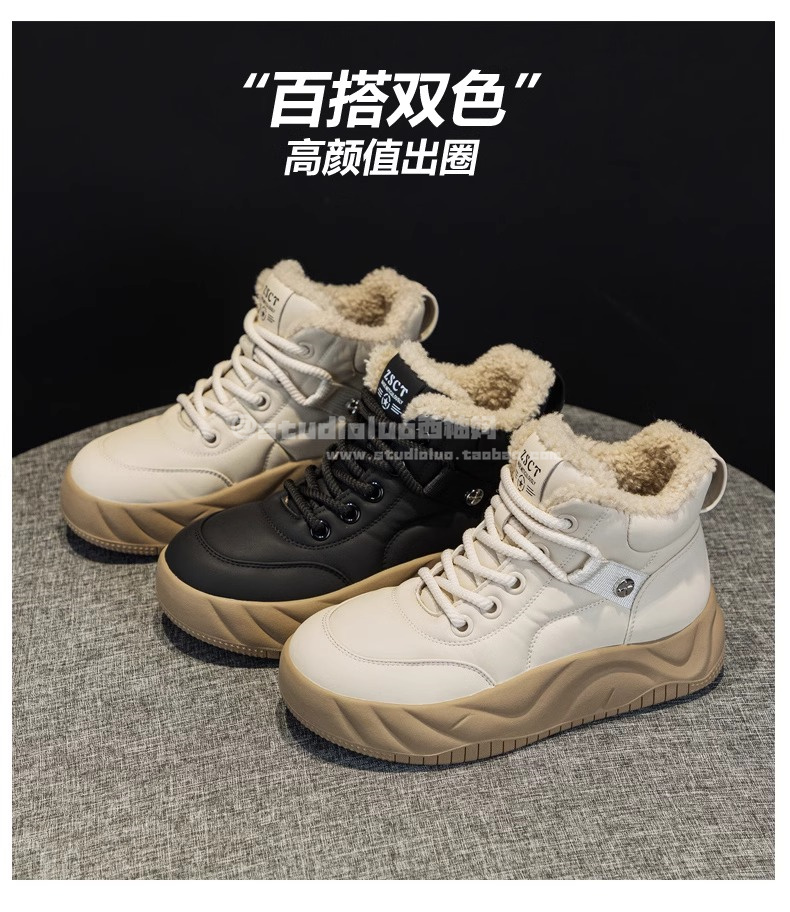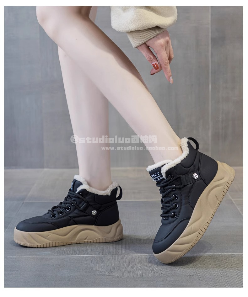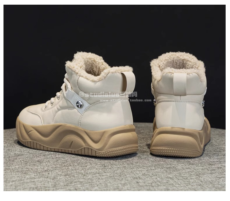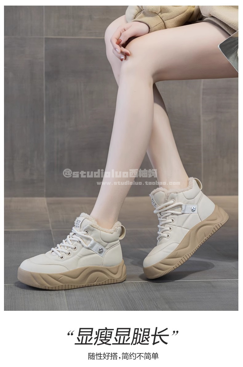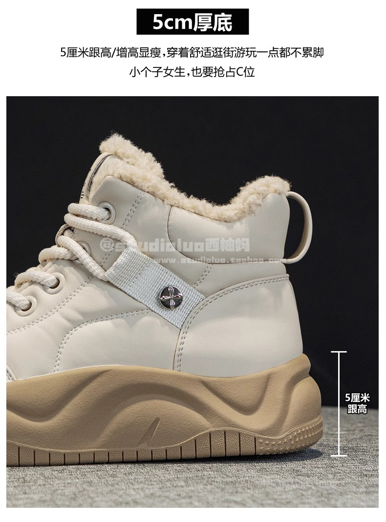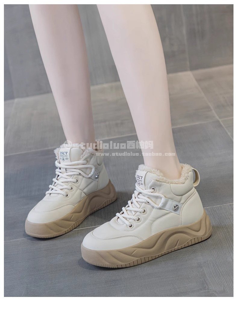 Hong Kong Thick-Soled White Sneakers for Women 2025 Winter New Versatile Casual High-Top Sneakers with Fleece Lining and Thickened for Warmth