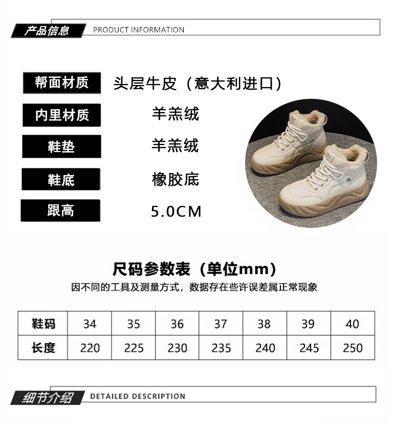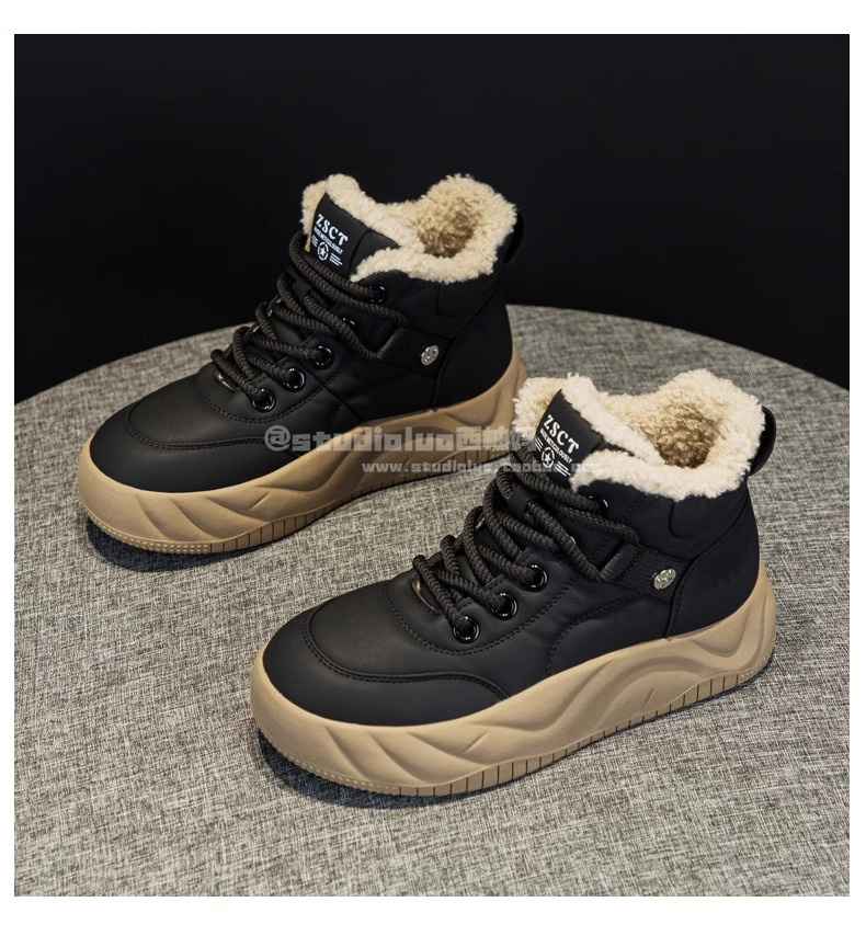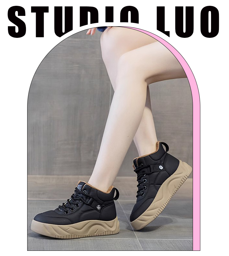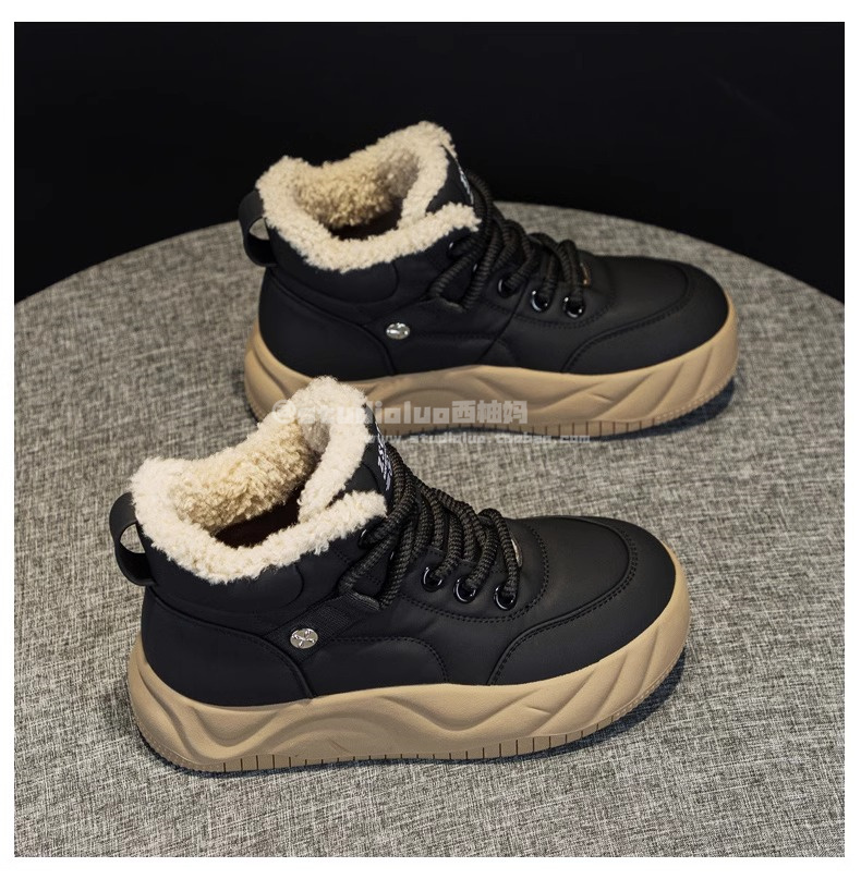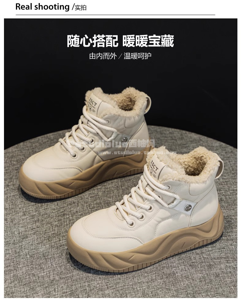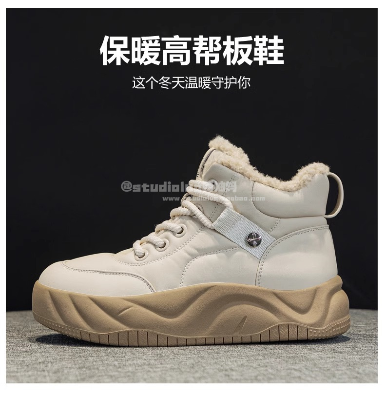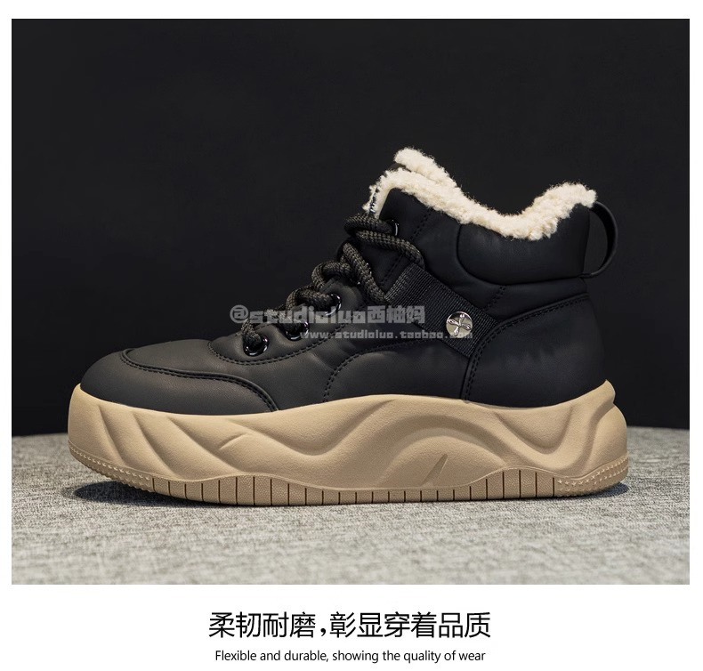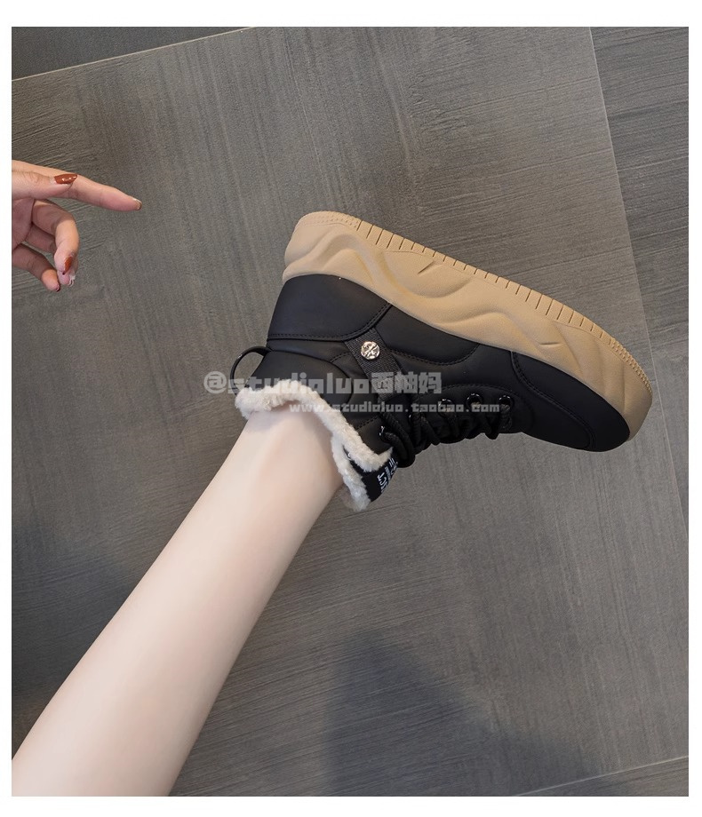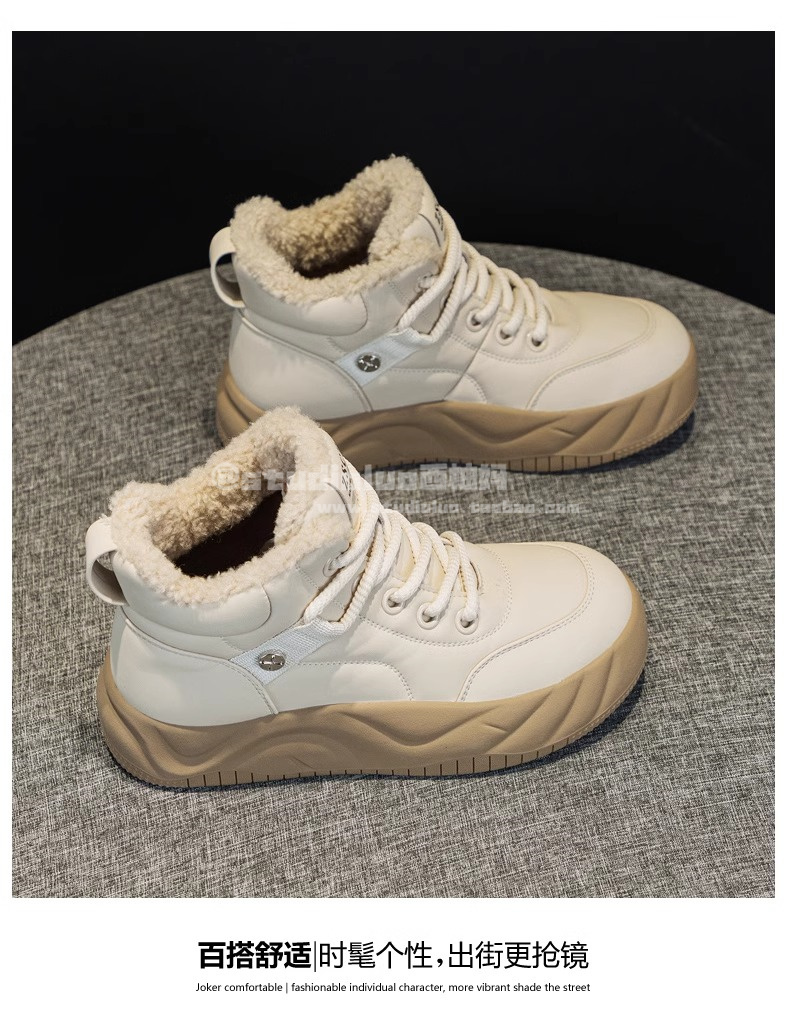 Hong Kong Thick-Soled White Sneakers for Women 2025 Winter New Versatile Casual High-Top Sneakers with Fleece Lining and Thickened for Warmth