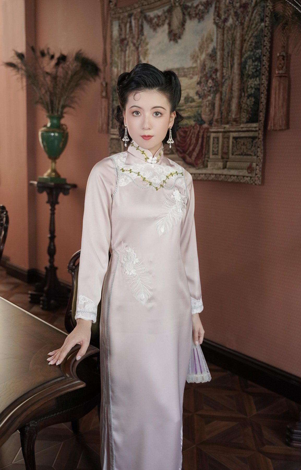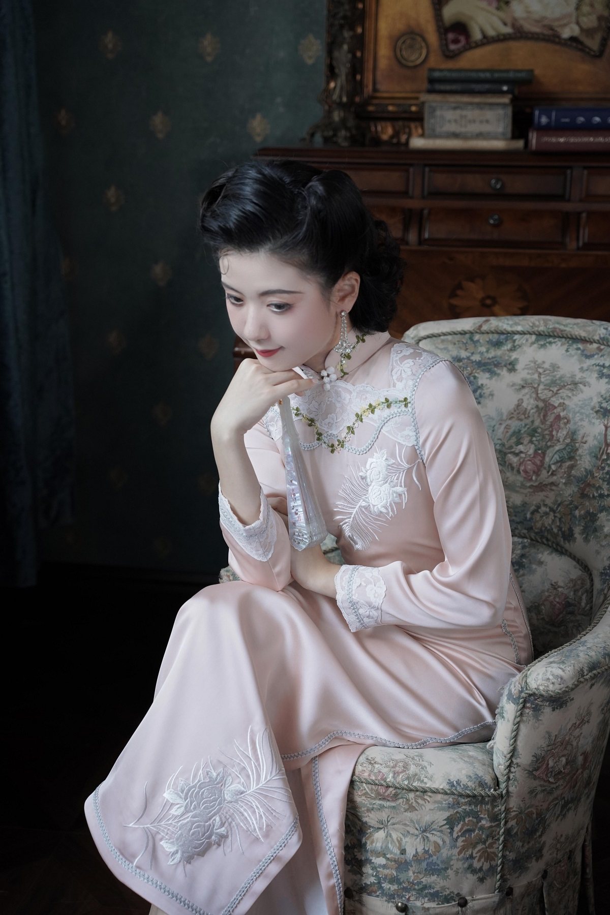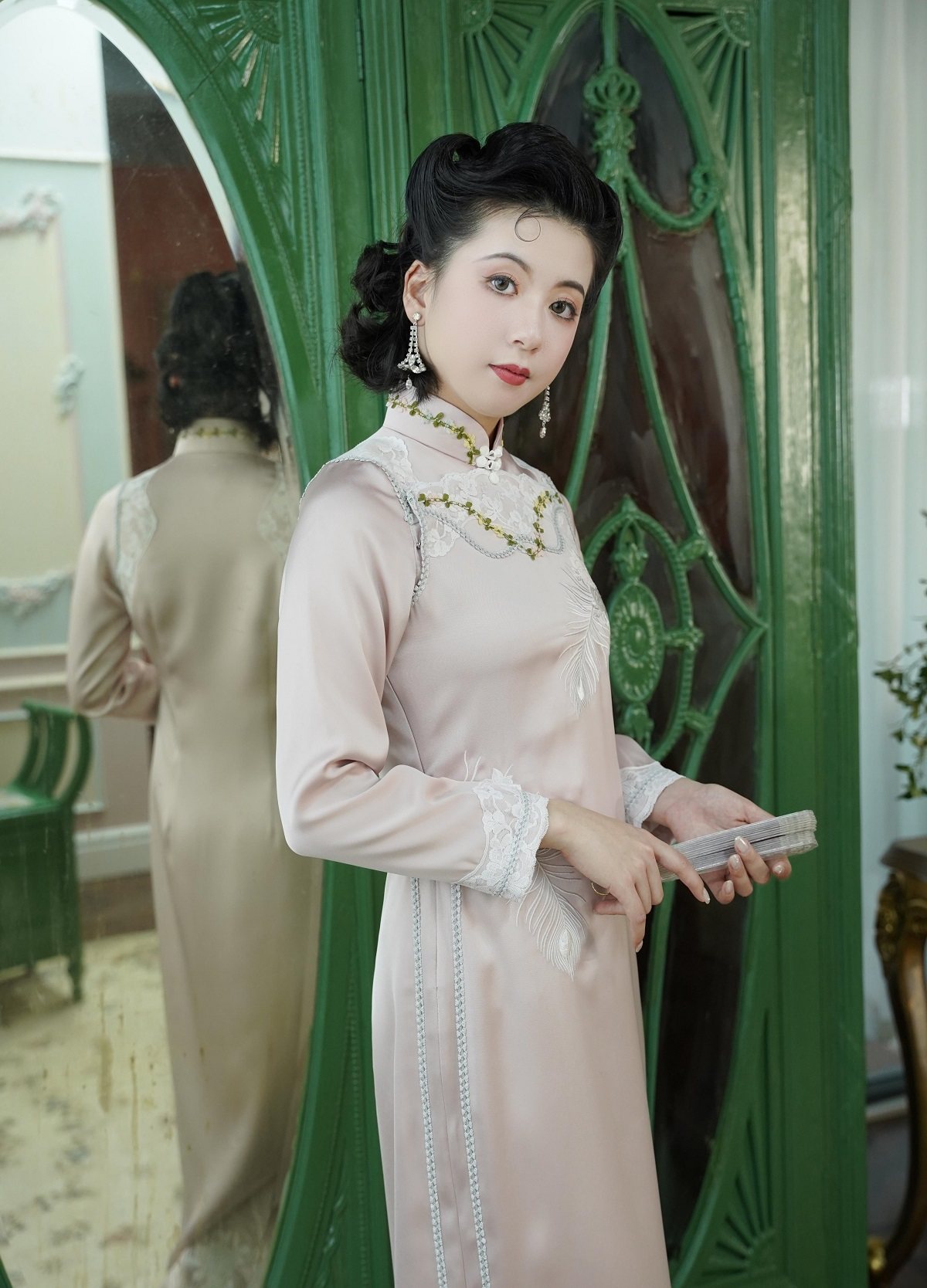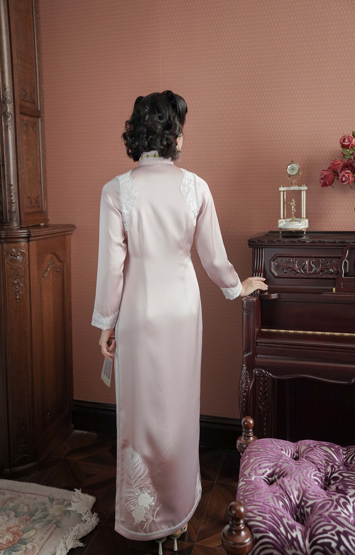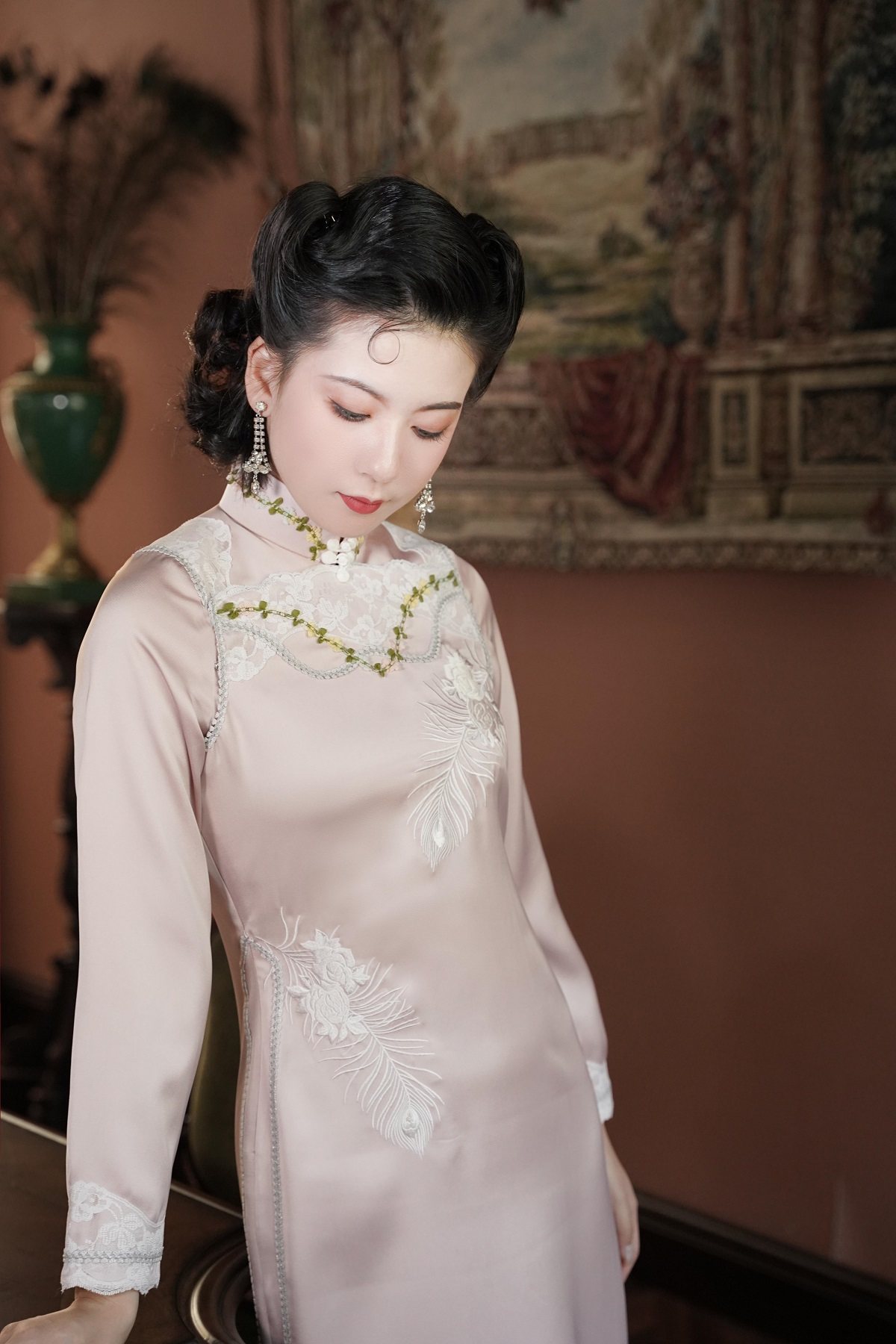 Green Phoenix Feather | Playful | 2024 New Autumn Long-Sleeved Embroidered Cheongsam in a Retro Chinese Style Suitable for Everyday Wear
